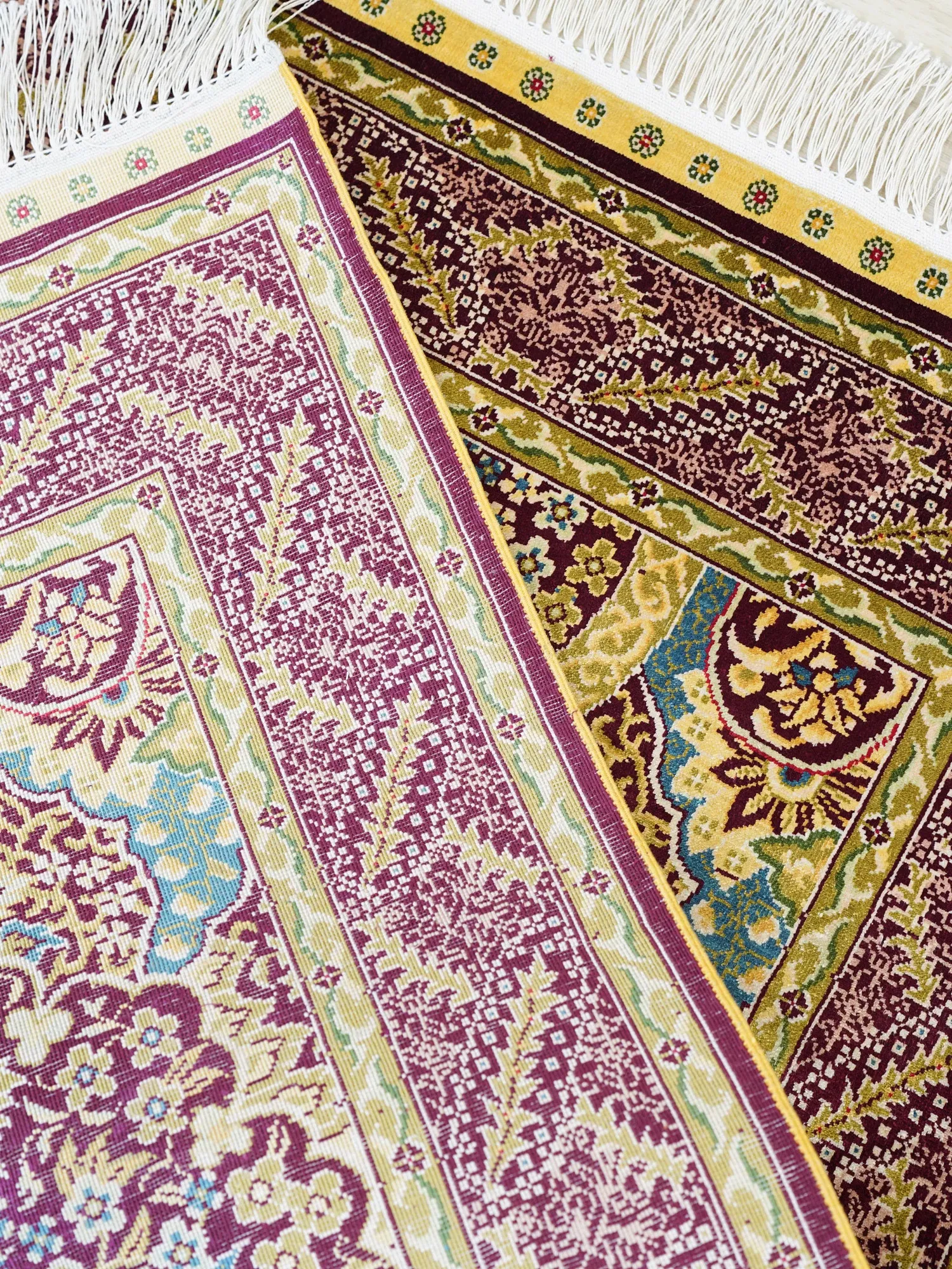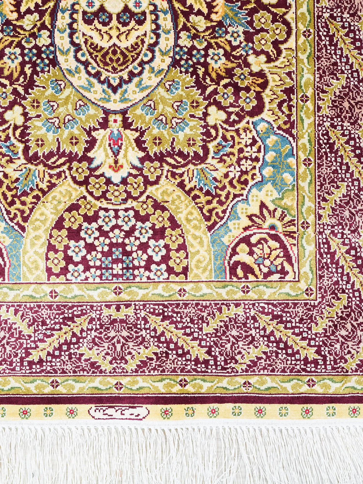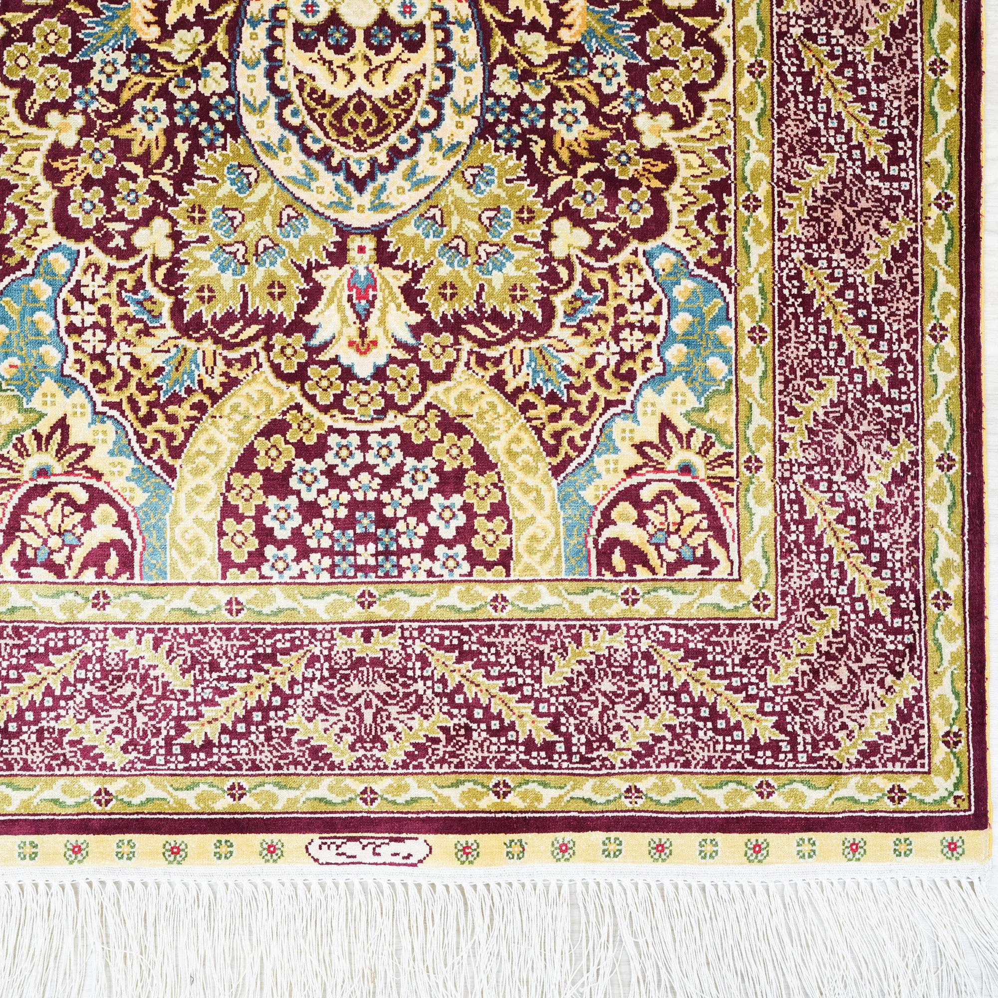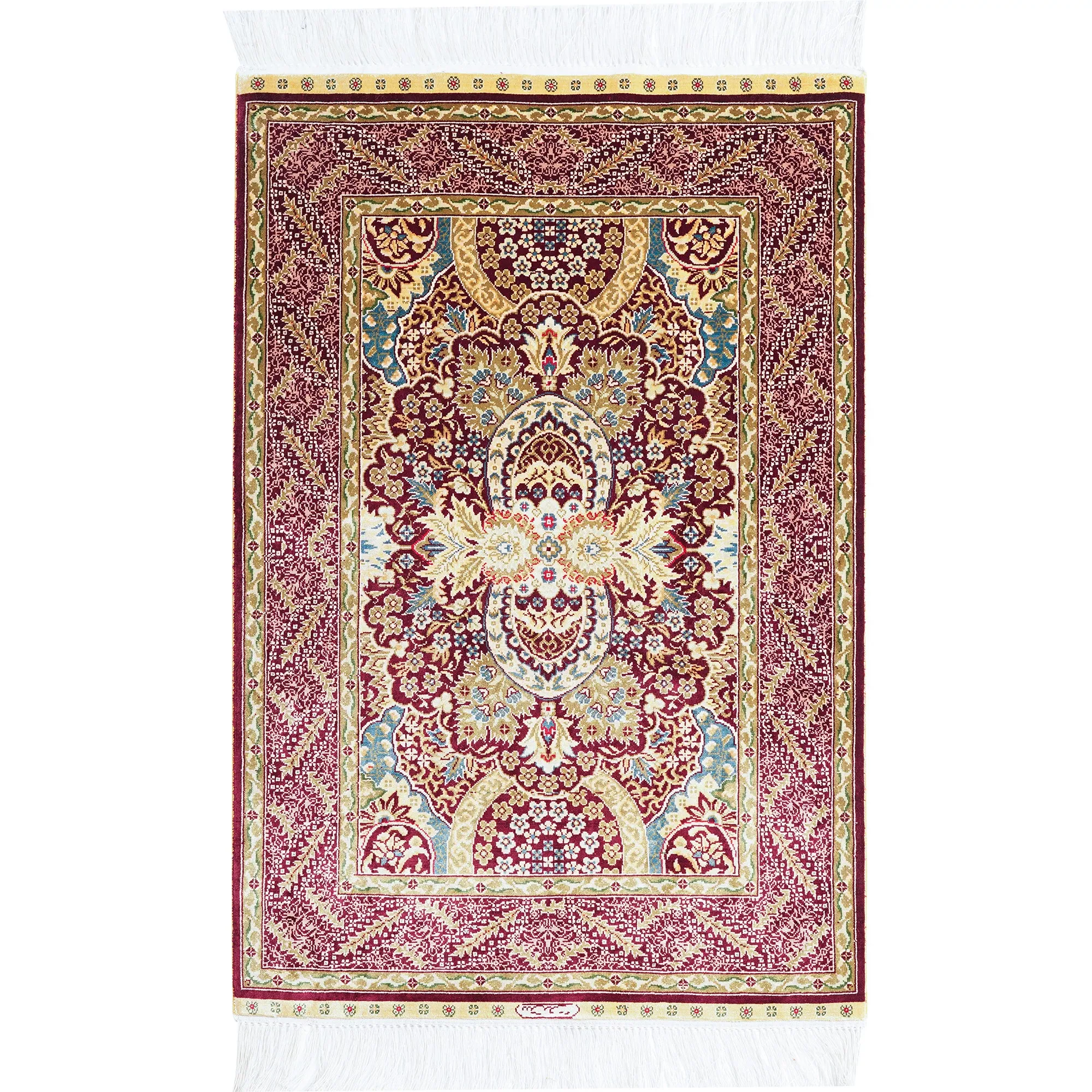 天匠手作のペルシャ絹織りラグ - 高級感溢れる手織りタペストリー、居心地の良い空間を演出する60x90cmのサイズ!