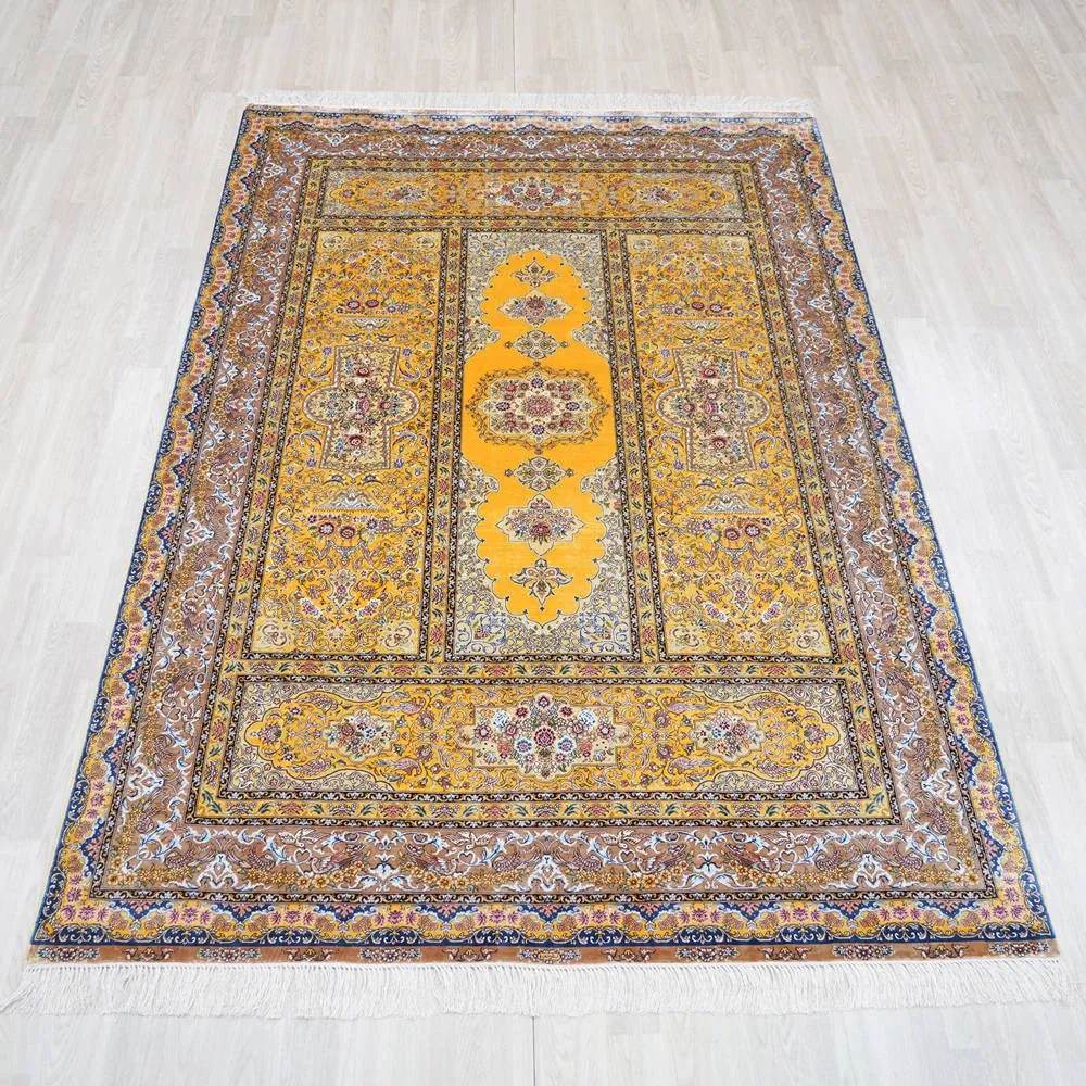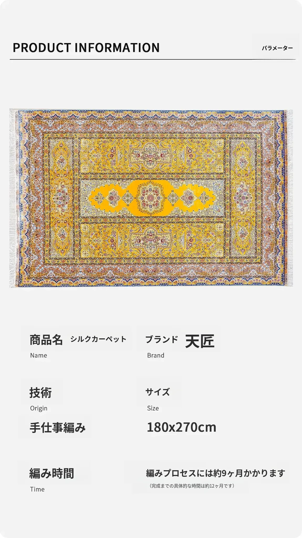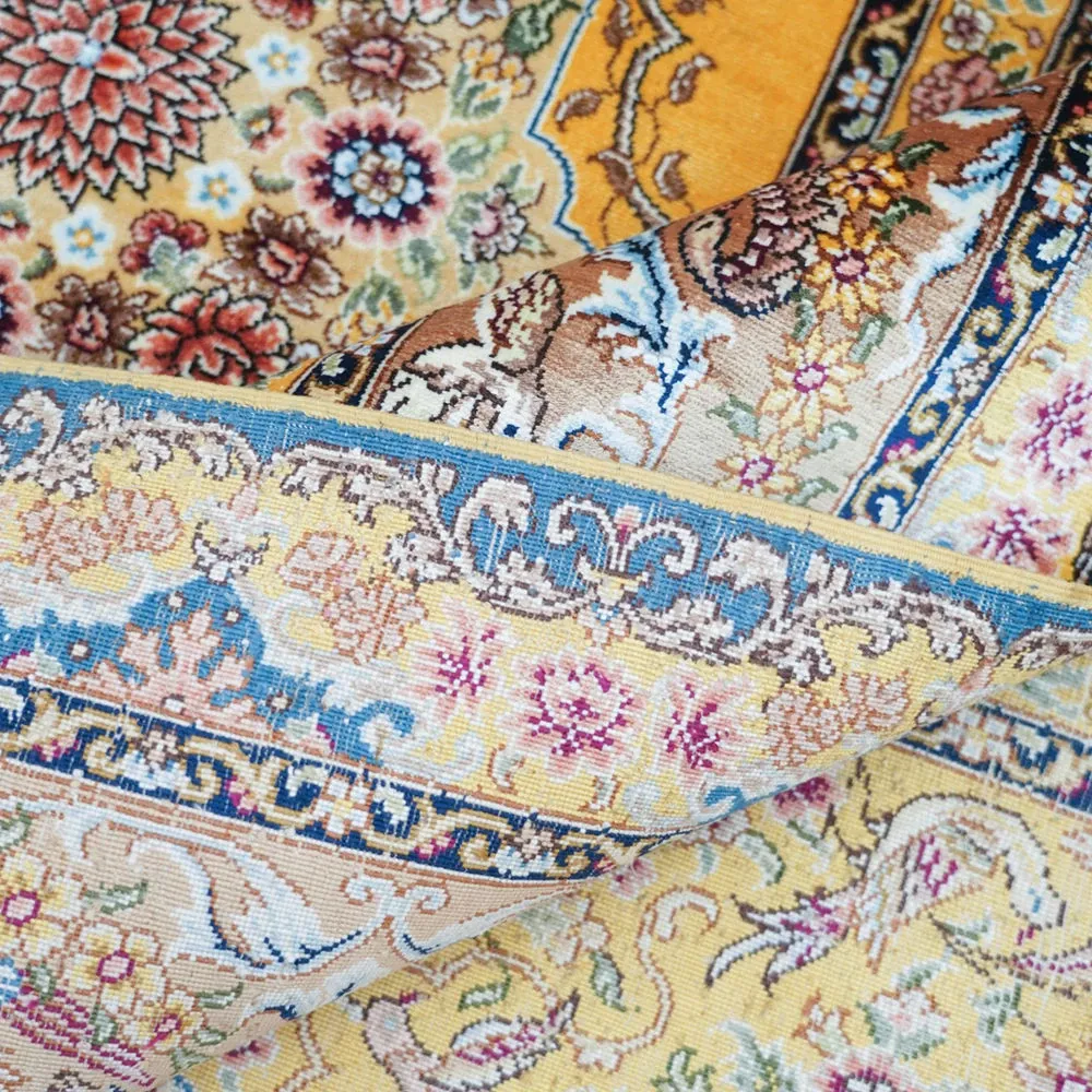 匠心手作の本真絲イエローペルシャカーペット - 高級感溢れる180x270cm、寝室や書斎に最適なインテリアアイテム。上質な素材で、優雅な空間を演出します。