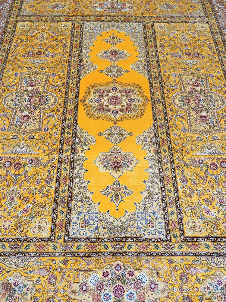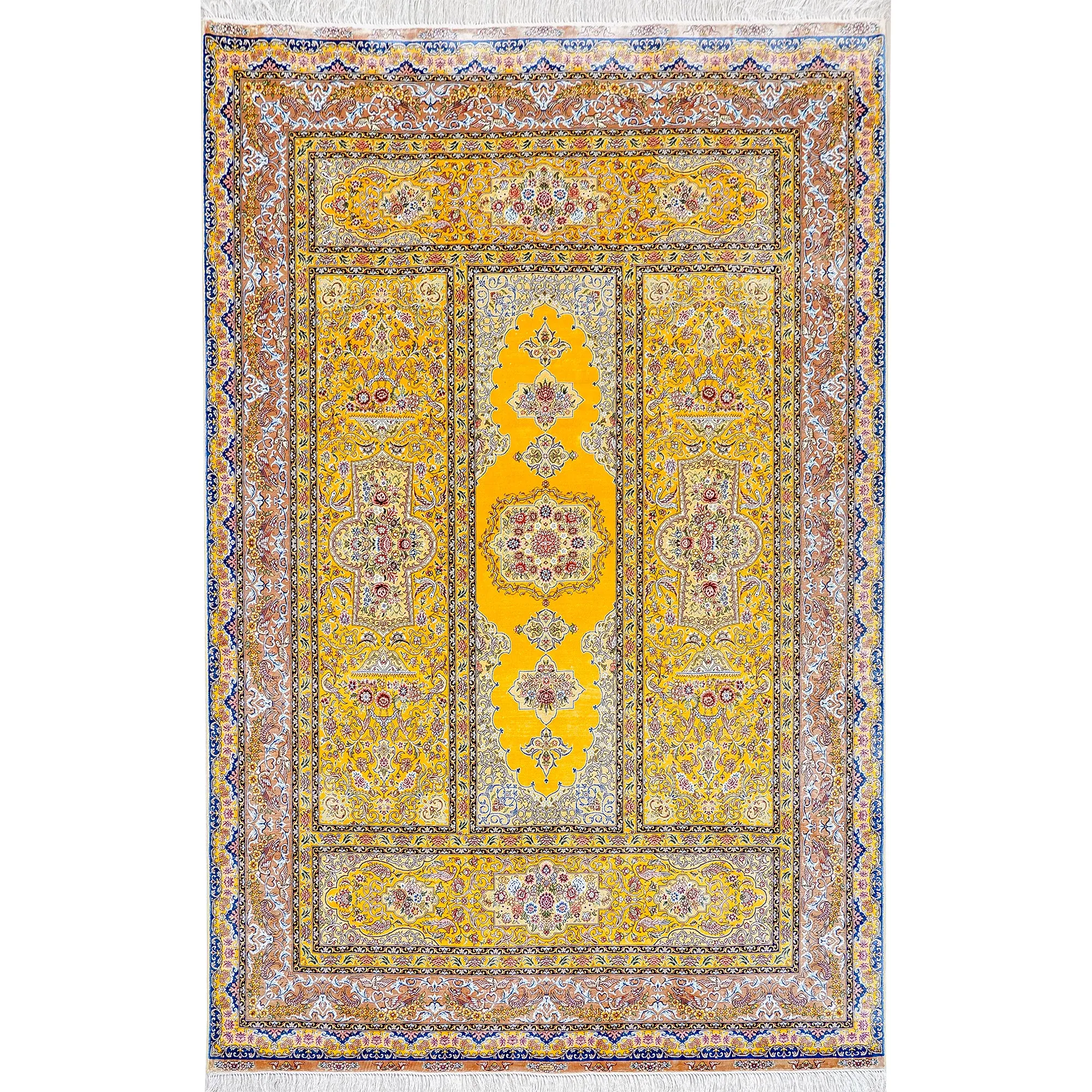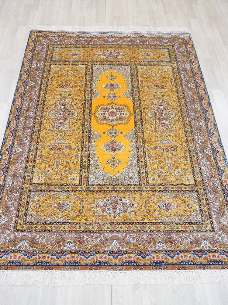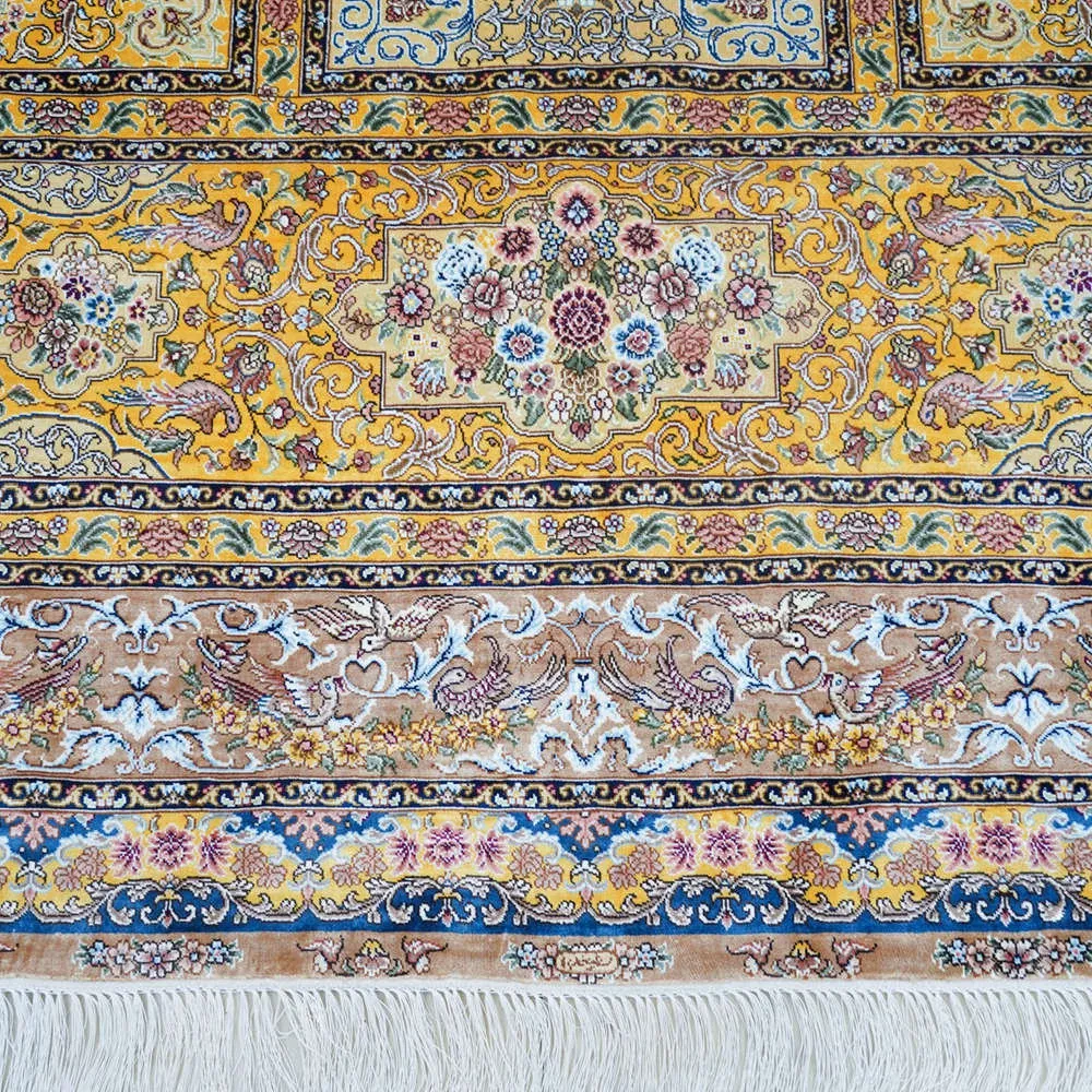 匠心手作の本真絲イエローペルシャカーペット - 高級感溢れる180x270cm、寝室や書斎に最適なインテリアアイテム。上質な素材で、優雅な空間を演出します。