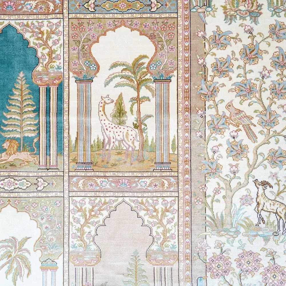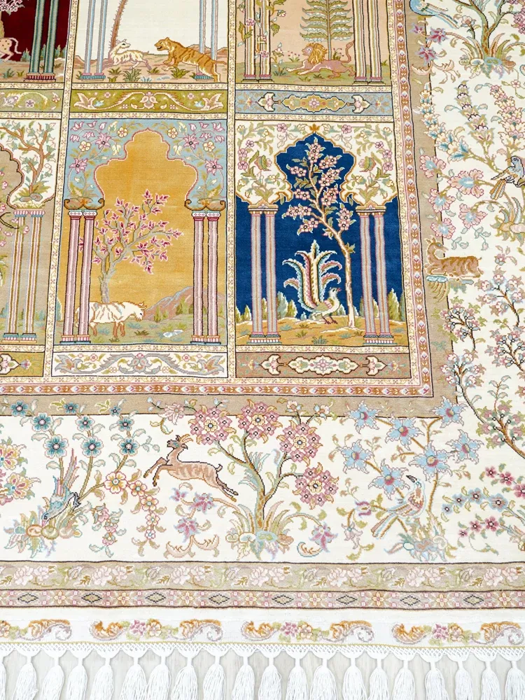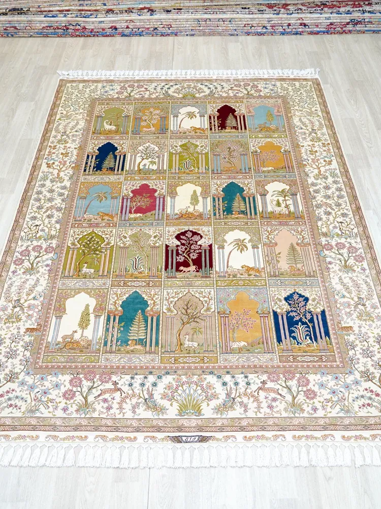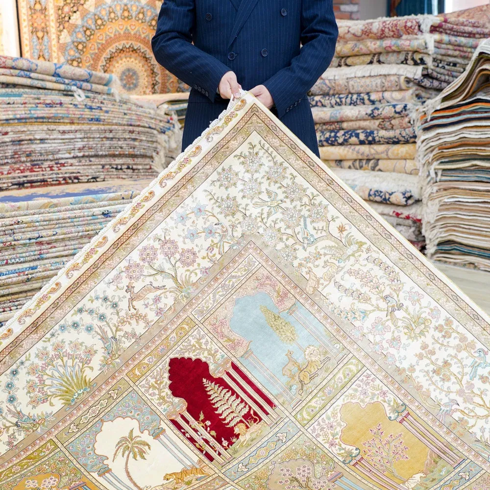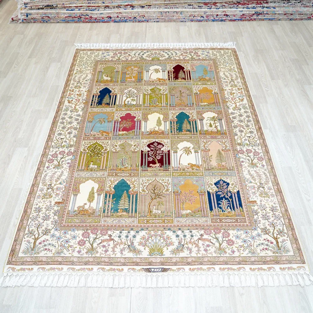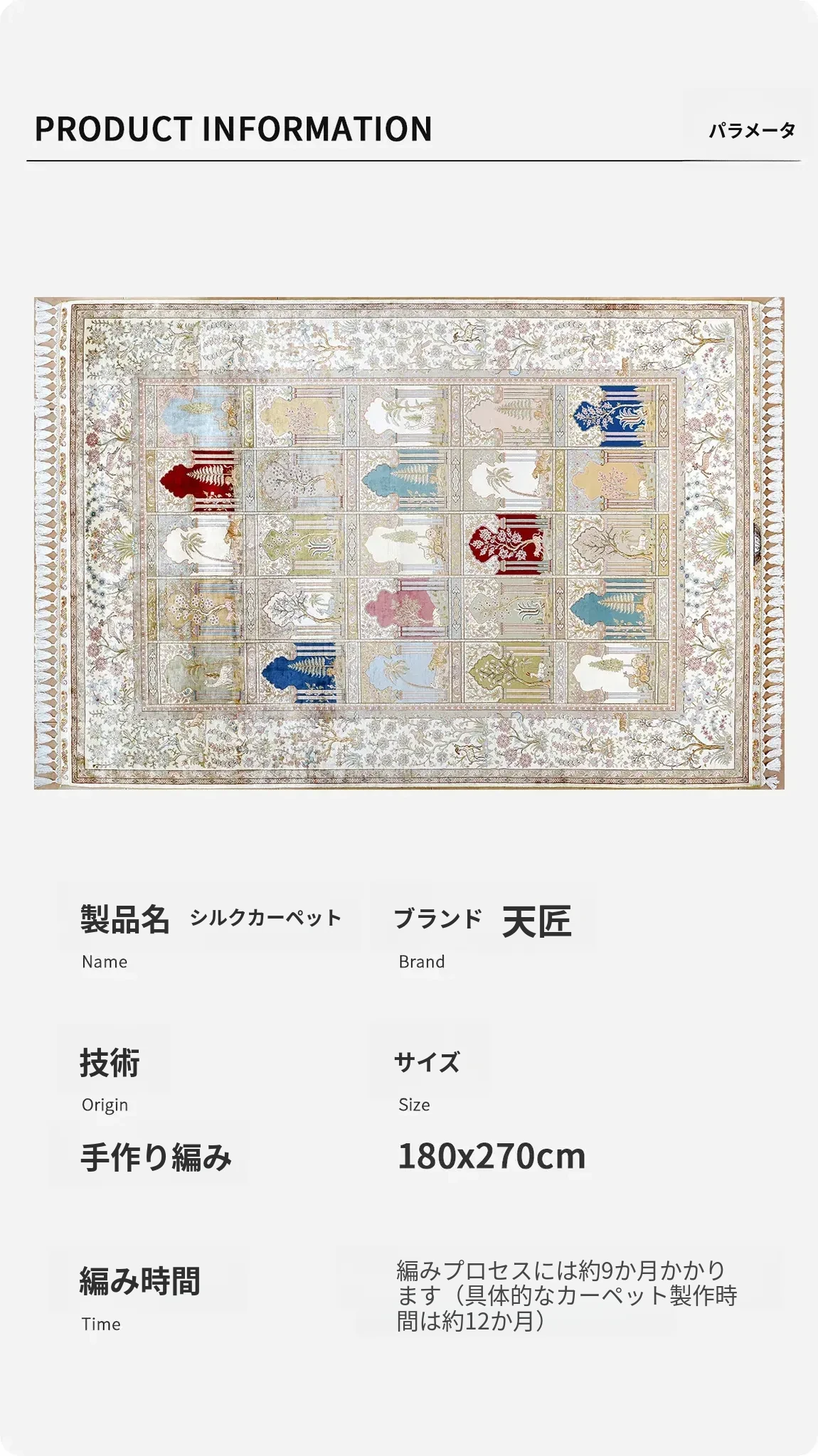 天匠手作の高級シルクカーペット - トルコ製ペルシャカーペット、180x270cmの寝室用ラグで、贅沢な空間を演出!