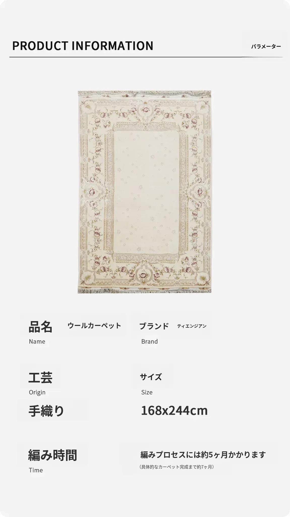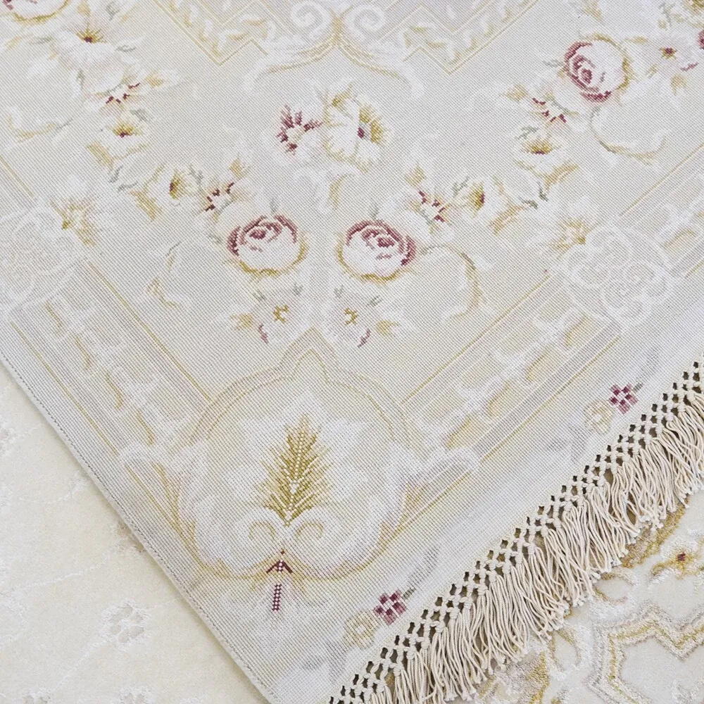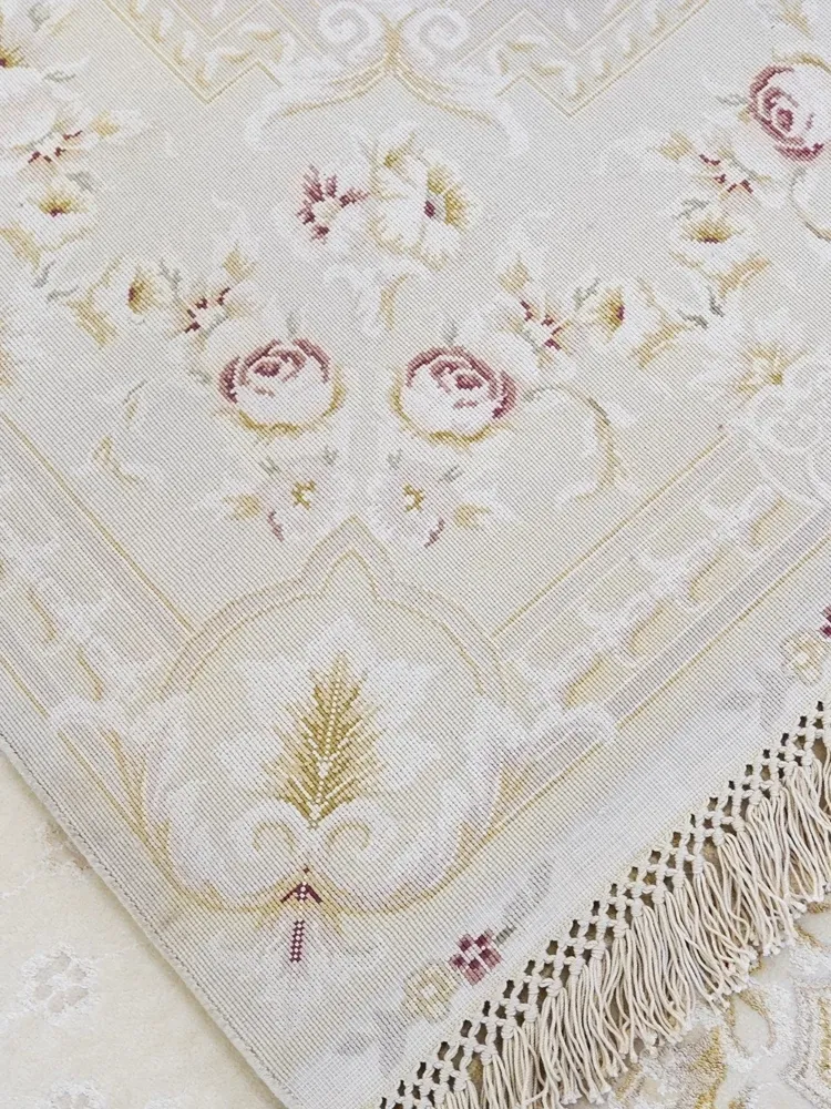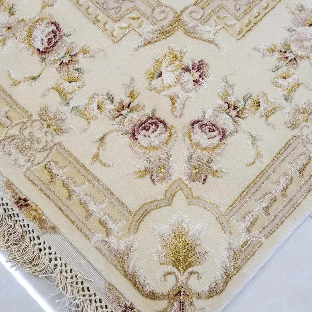 高級手作ウールカーペット - シンプルでエレガントな欧風デザイン、寝室や書斎にぴったり!豪華な別荘にも映える168x244cmサイズ。