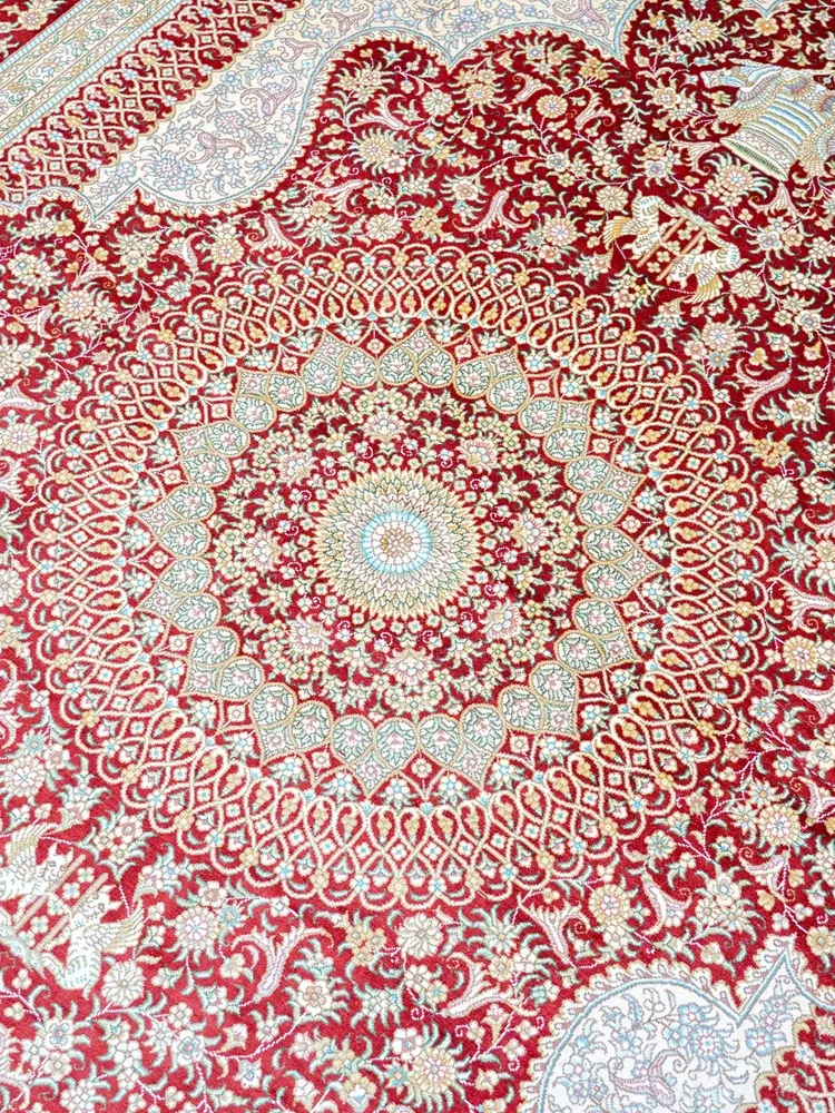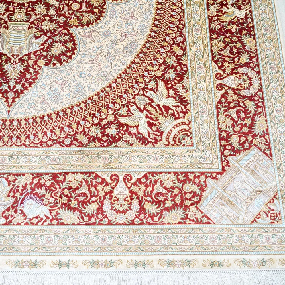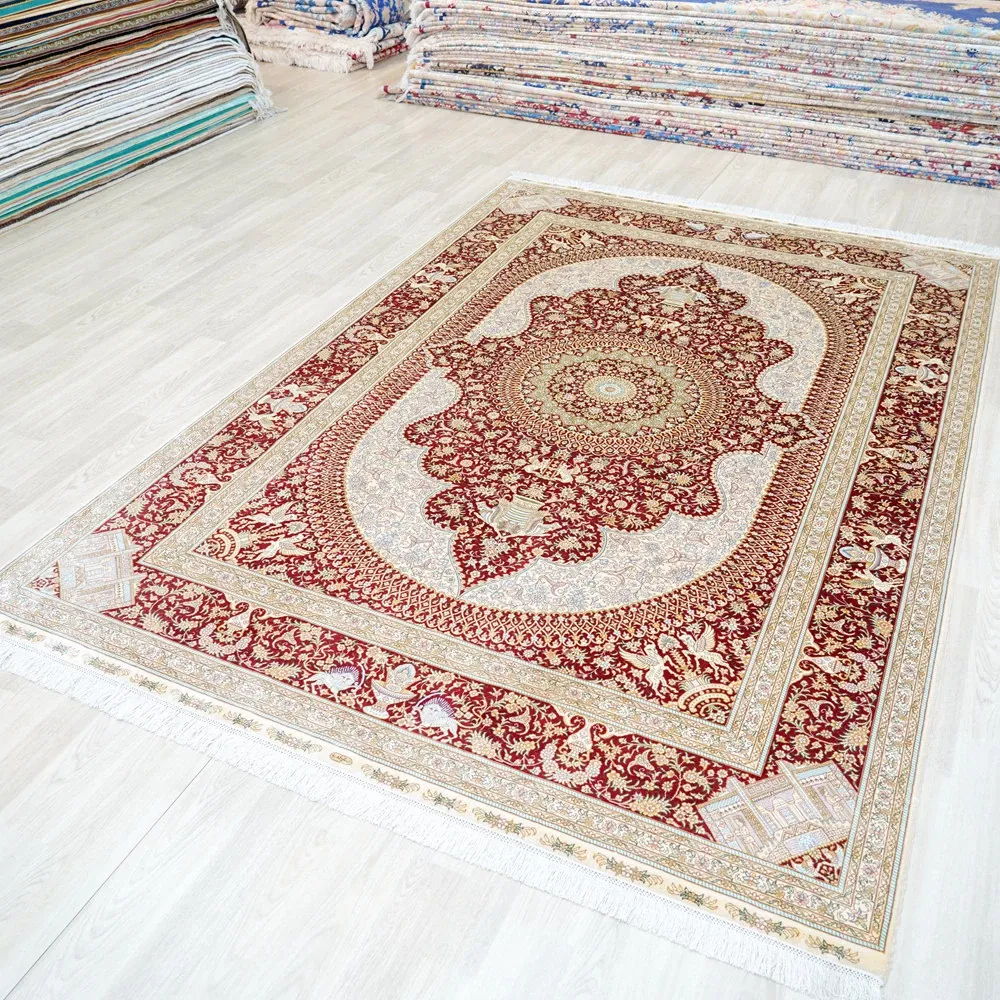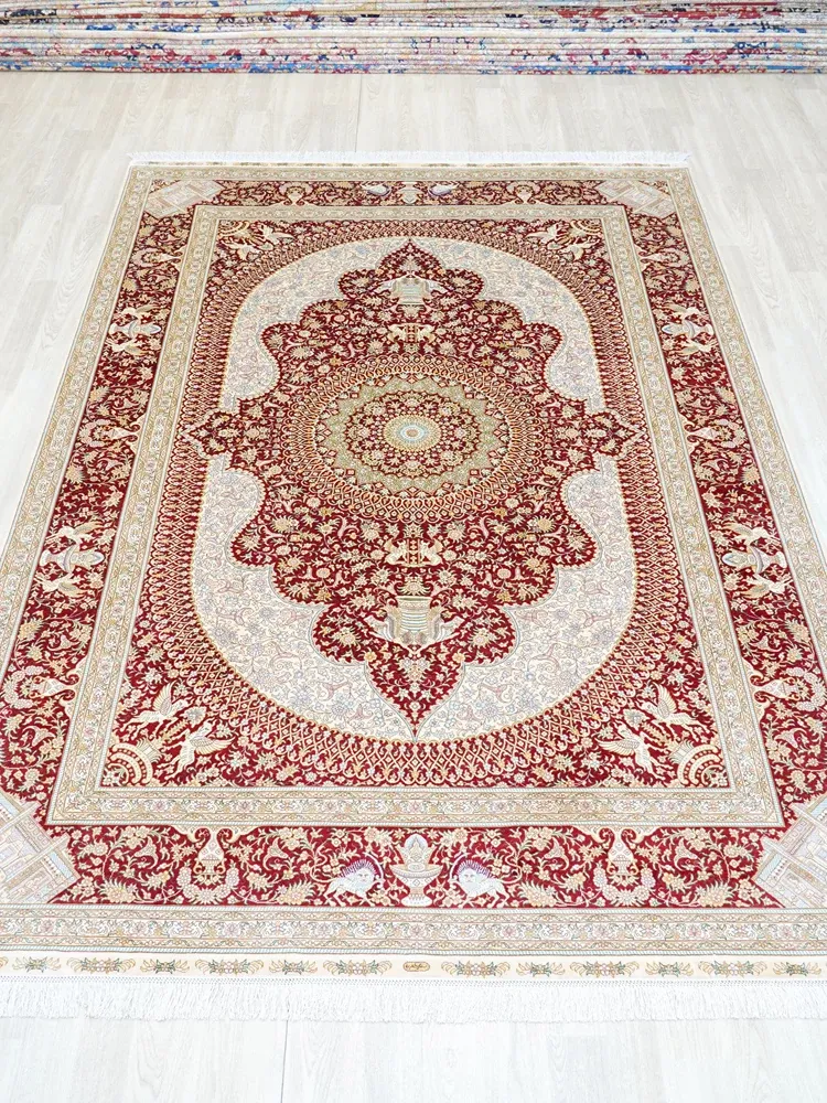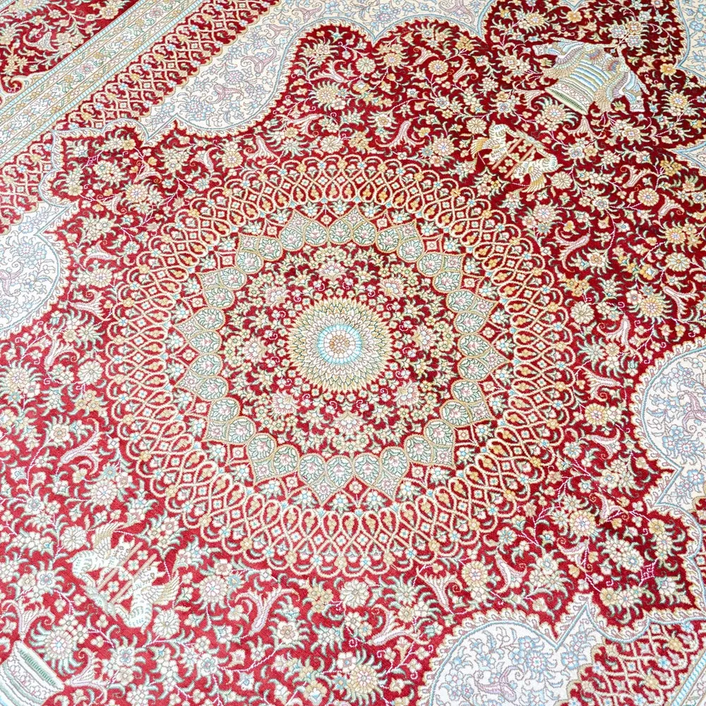 Handcrafted Artisan Silk Carpet - Red Persian Design, European & American Style, Perfect for Living Room, 180x270cm