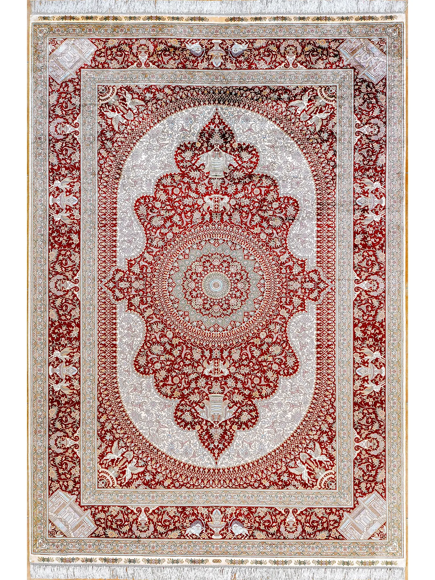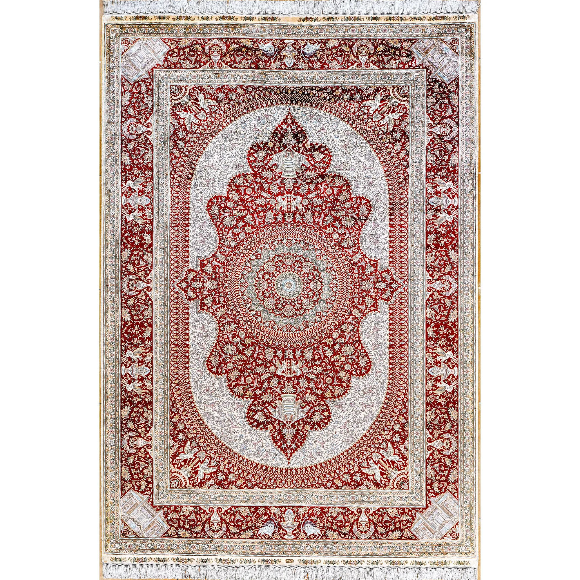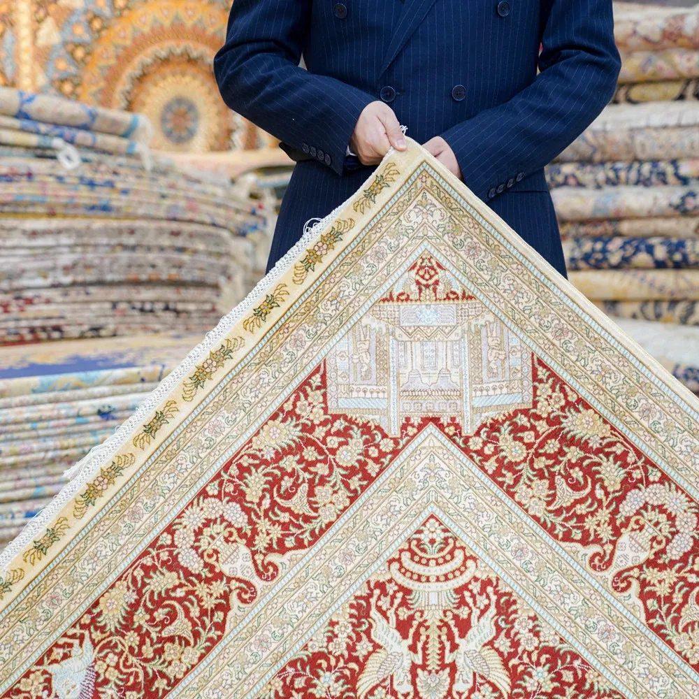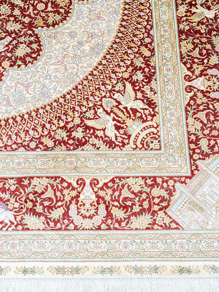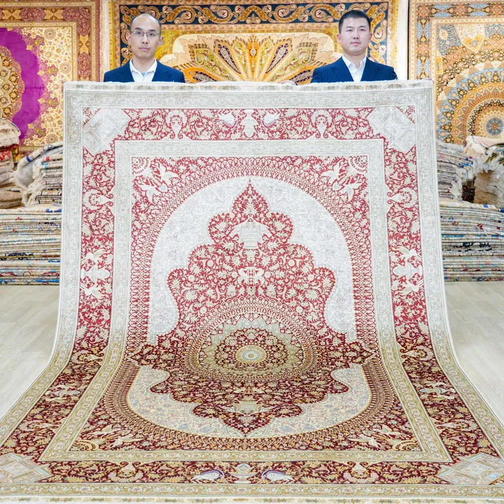 Handcrafted Artisan Silk Carpet - Red Persian Design, European & American Style, Perfect for Living Room, 180x270cm