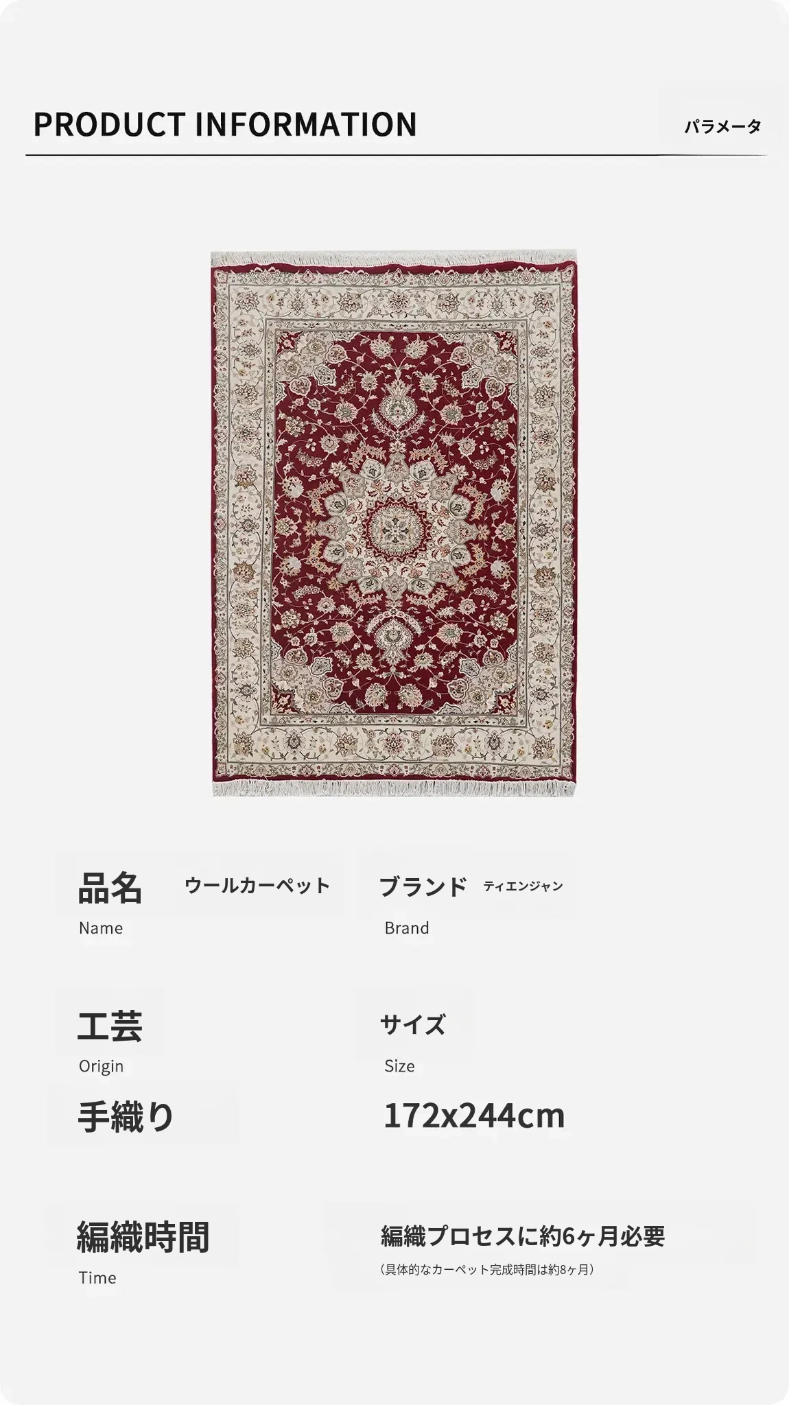 天匠の手作りウールカーペット、欧米向けクラシックペルシャスタイル!寝室や書斎にぴったりな172x244cmサイズ、上品なデザインでお部屋を華やかに彩ります。