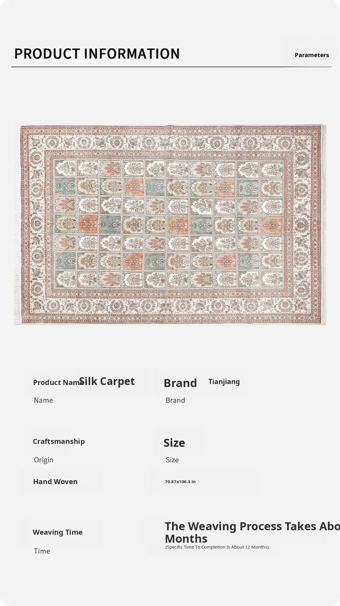 Handcrafted Authentic Silk Persian & Turkish Area Rug - Luxurious Home Carpet for Living Room & Bedroom - 180x270cm