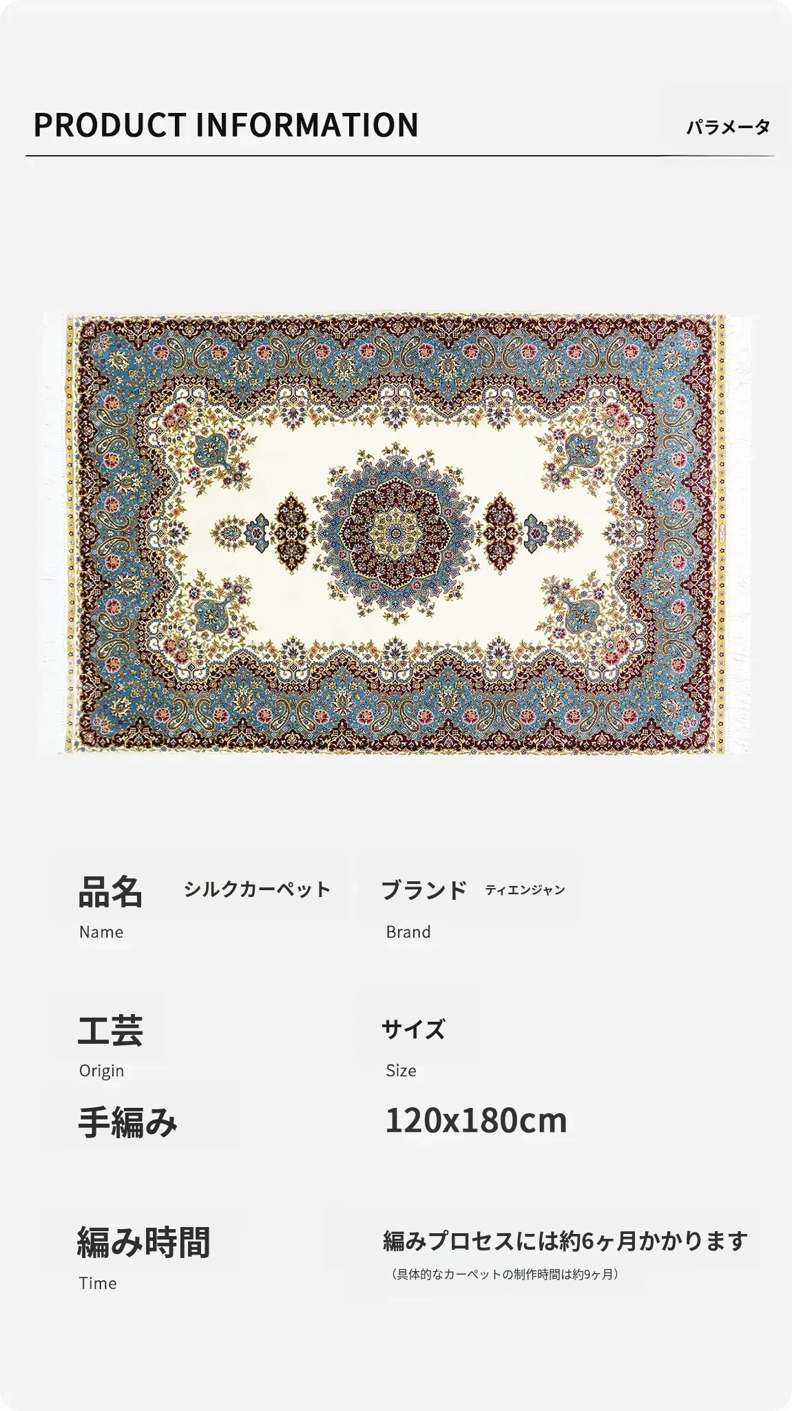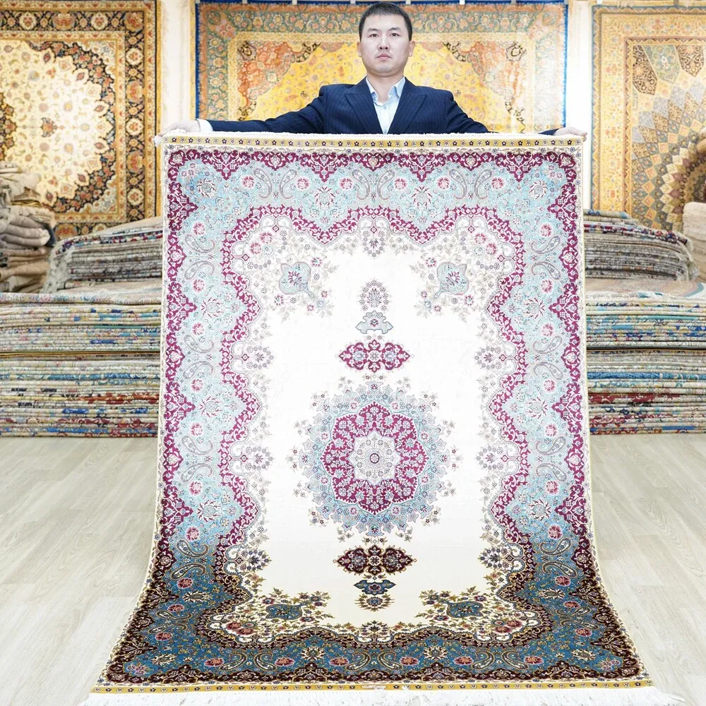 天匠手作の本真絲カーペット - 美しい結び目で編まれた、寝室や書斎にぴったりのペルシャスタイルカーペット (120x180cm)