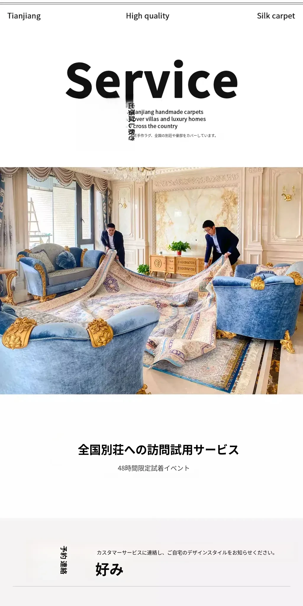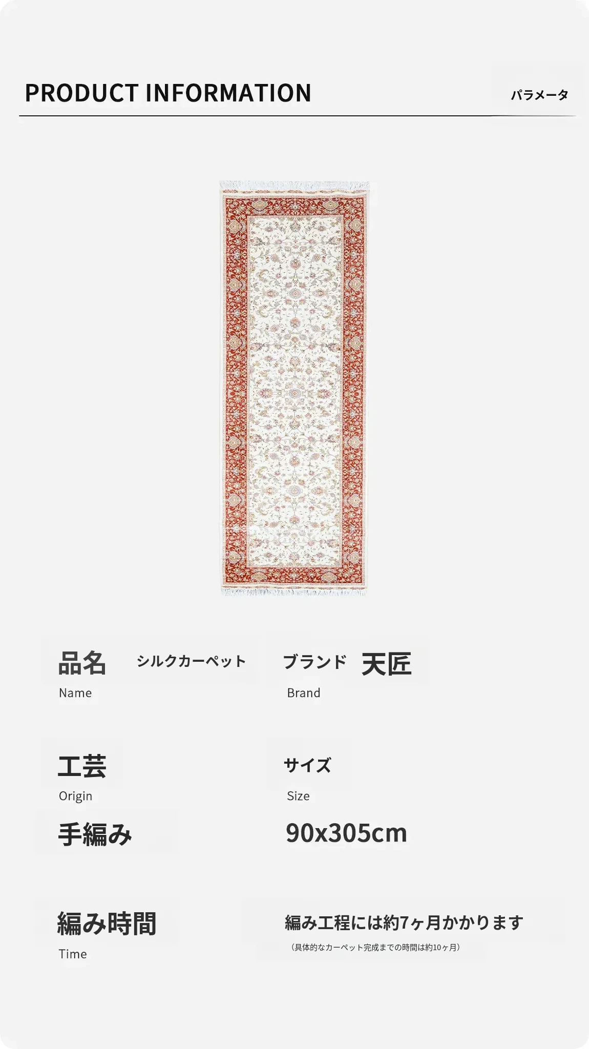 天匠の手作りシルクカーペット|アメリカン・イタリアンスタイルの豪華なヴィラにぴったり|寝室・リビングに最適なペルシャカーペット91x305cm