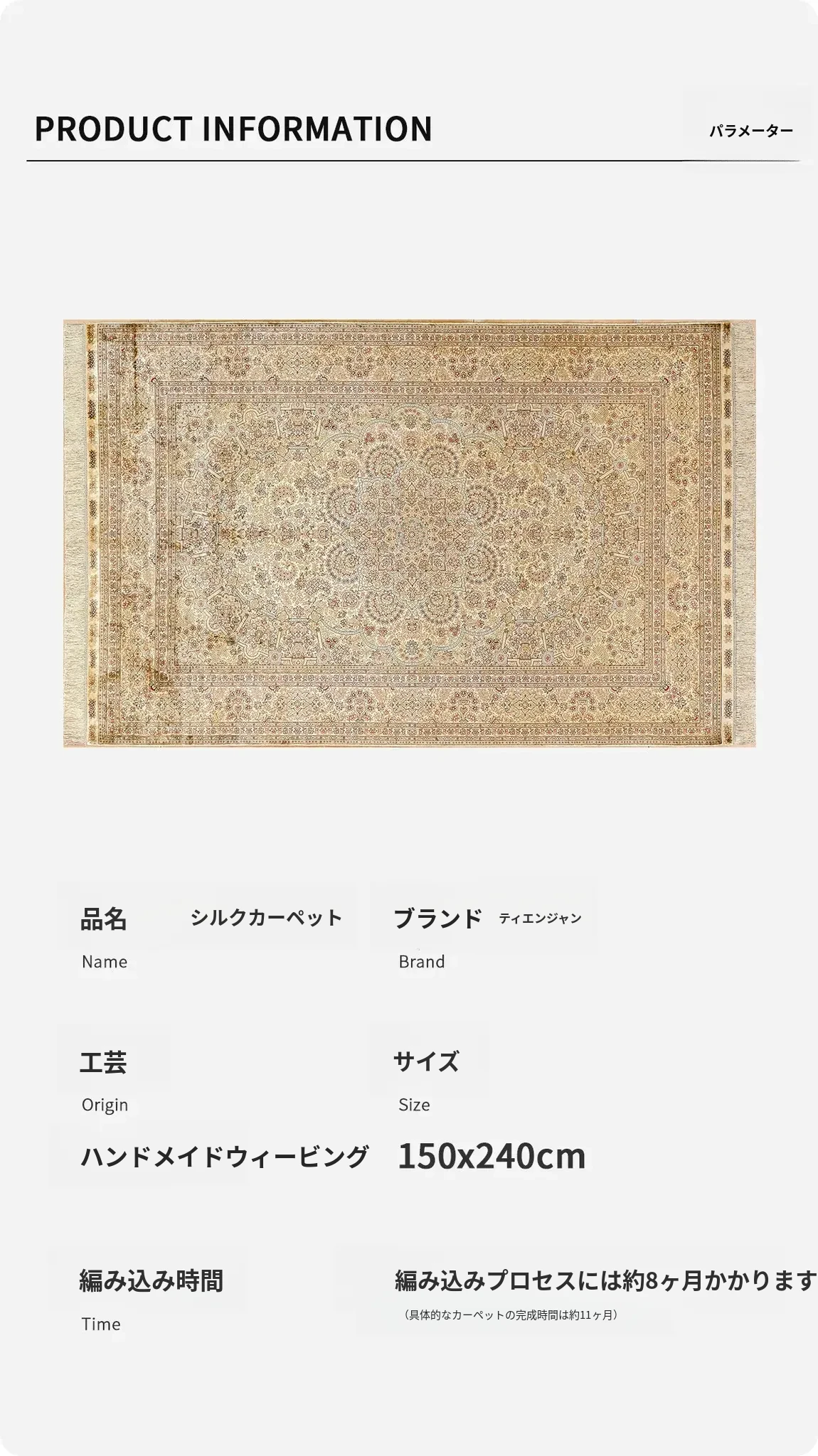 手作り本真丝カーペット - イラン向け高級オリジナルデザイン、欧風・米風・ペルシャスタイル、150x240cmの贅沢な手触りを体感!