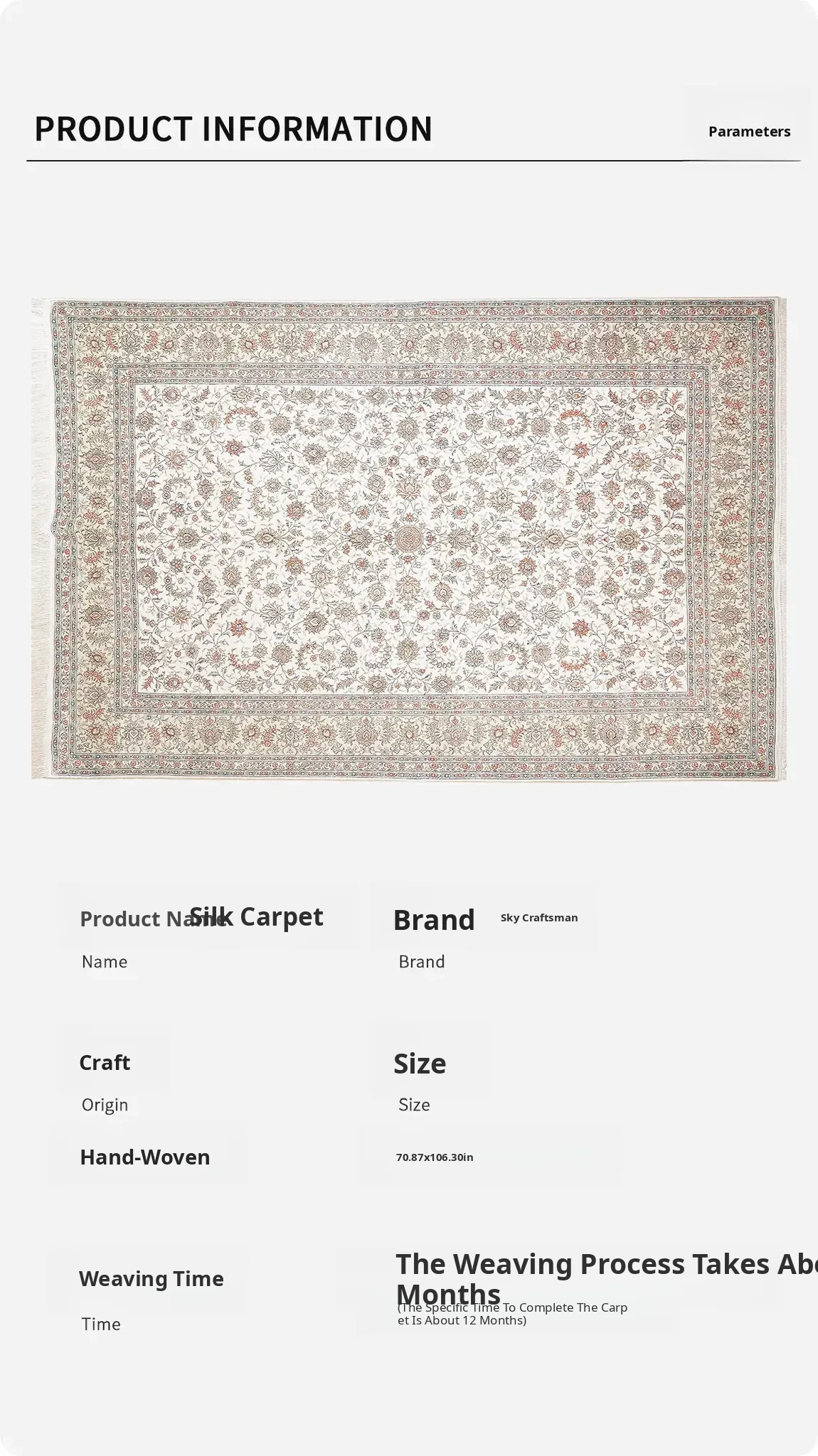 Handcrafted Genuine Silk Carpet - Luxury American and European Style Area Rug for Bedroom and Study, No Glue, Size 180x270cm