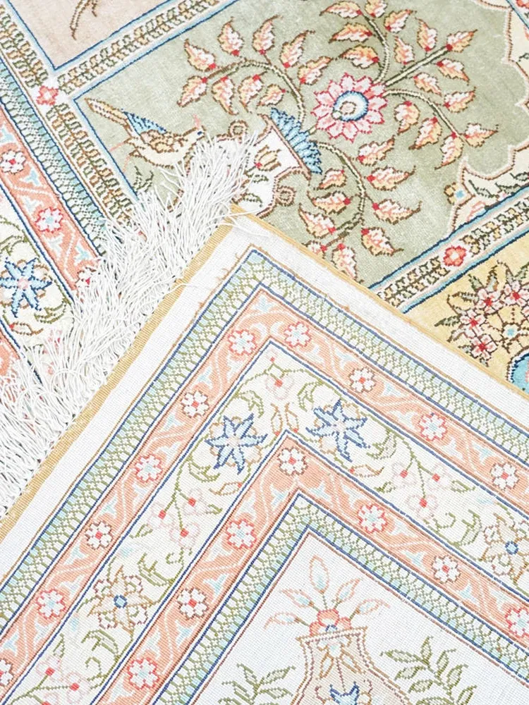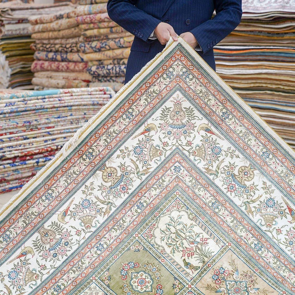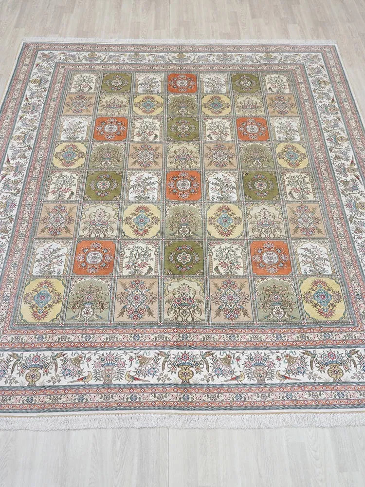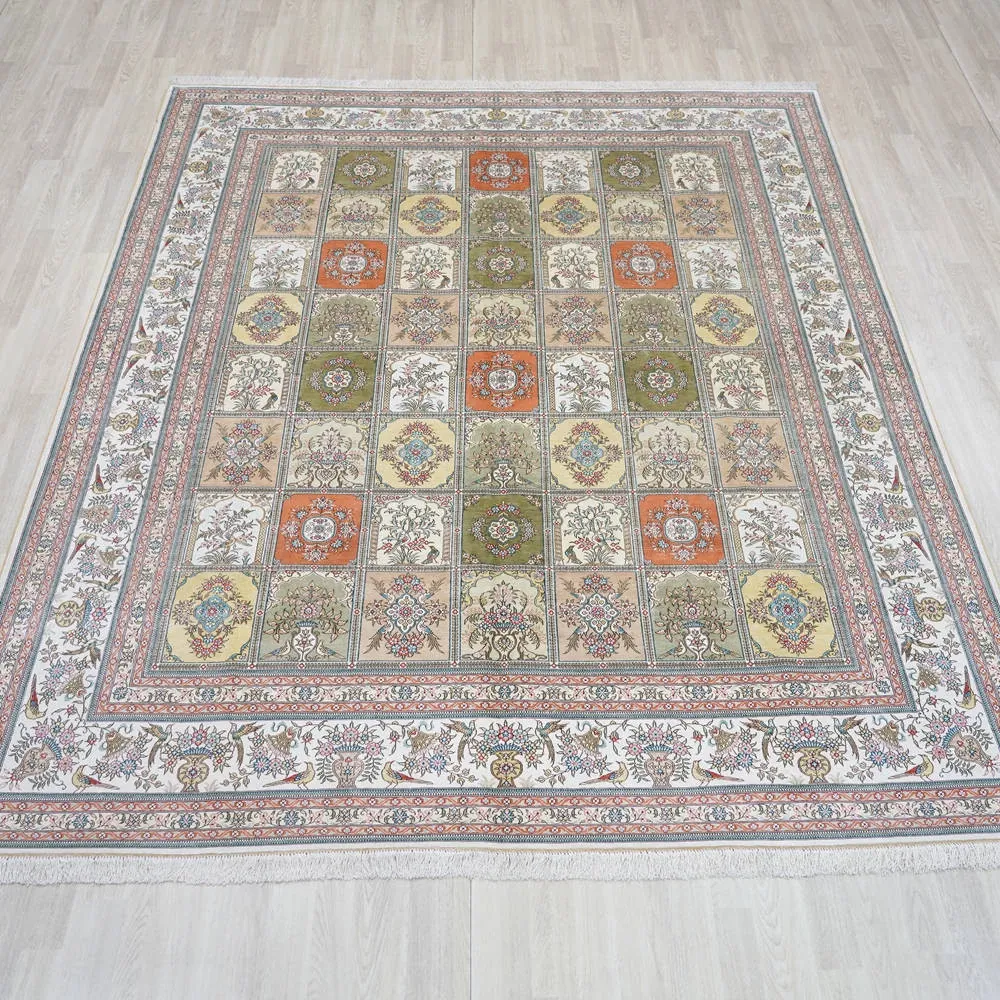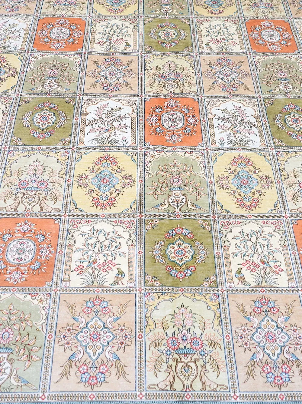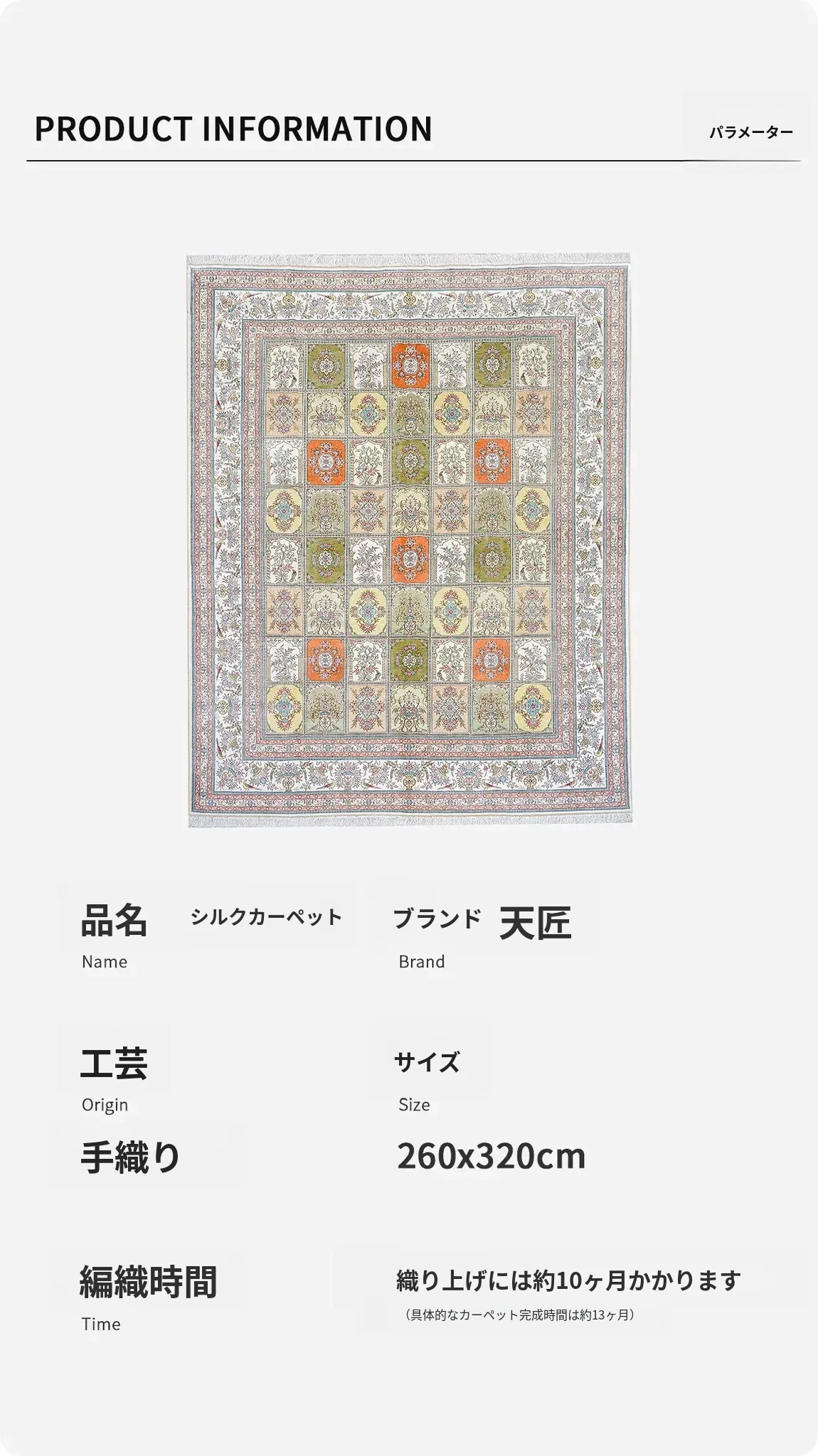 天匠のハンドメイドシルクカーペット - ガーデンデザインでリビングにぴったり!トルコ製の高品質カーペット、260x320cmのサイズでお部屋を華やかに演出します。