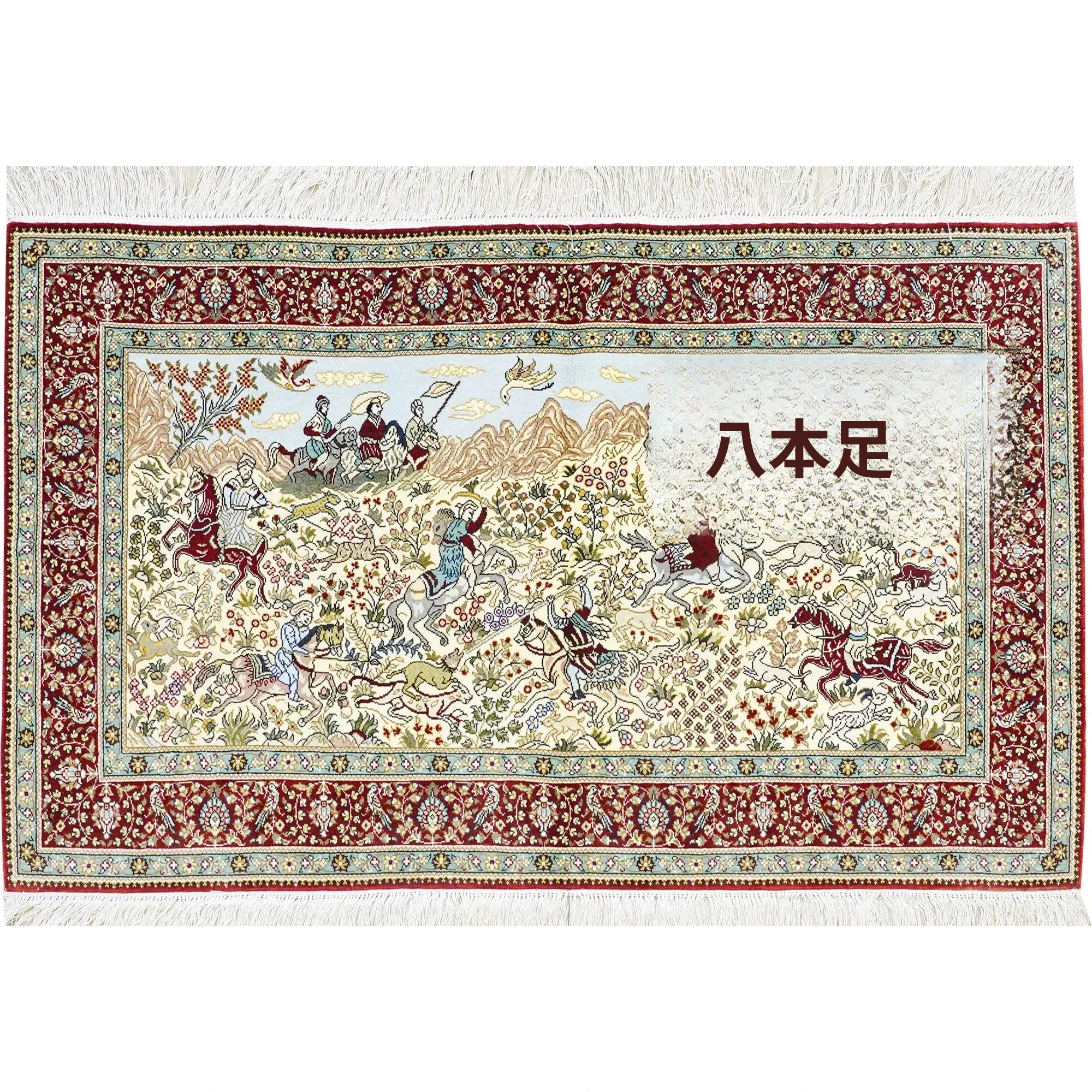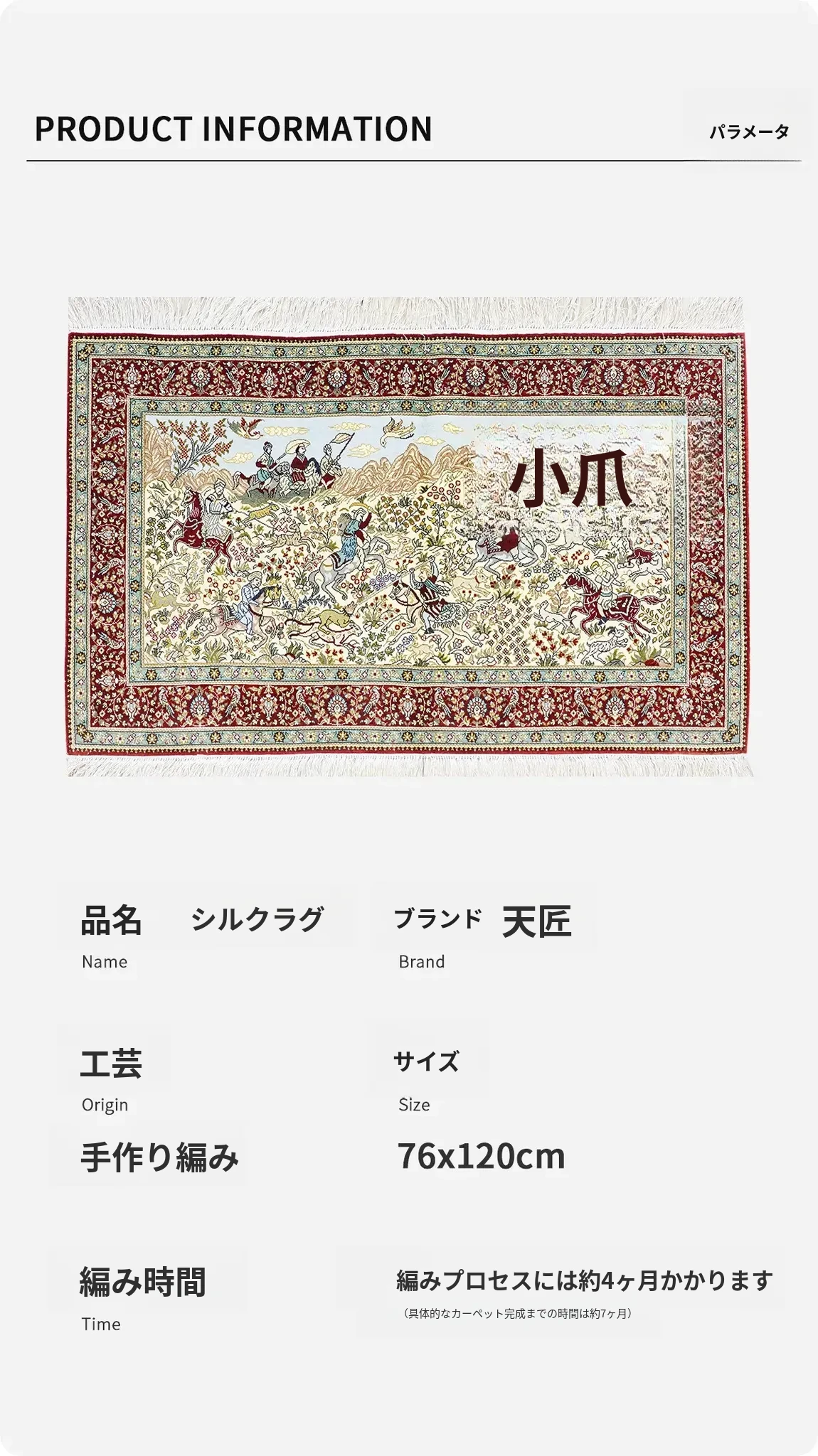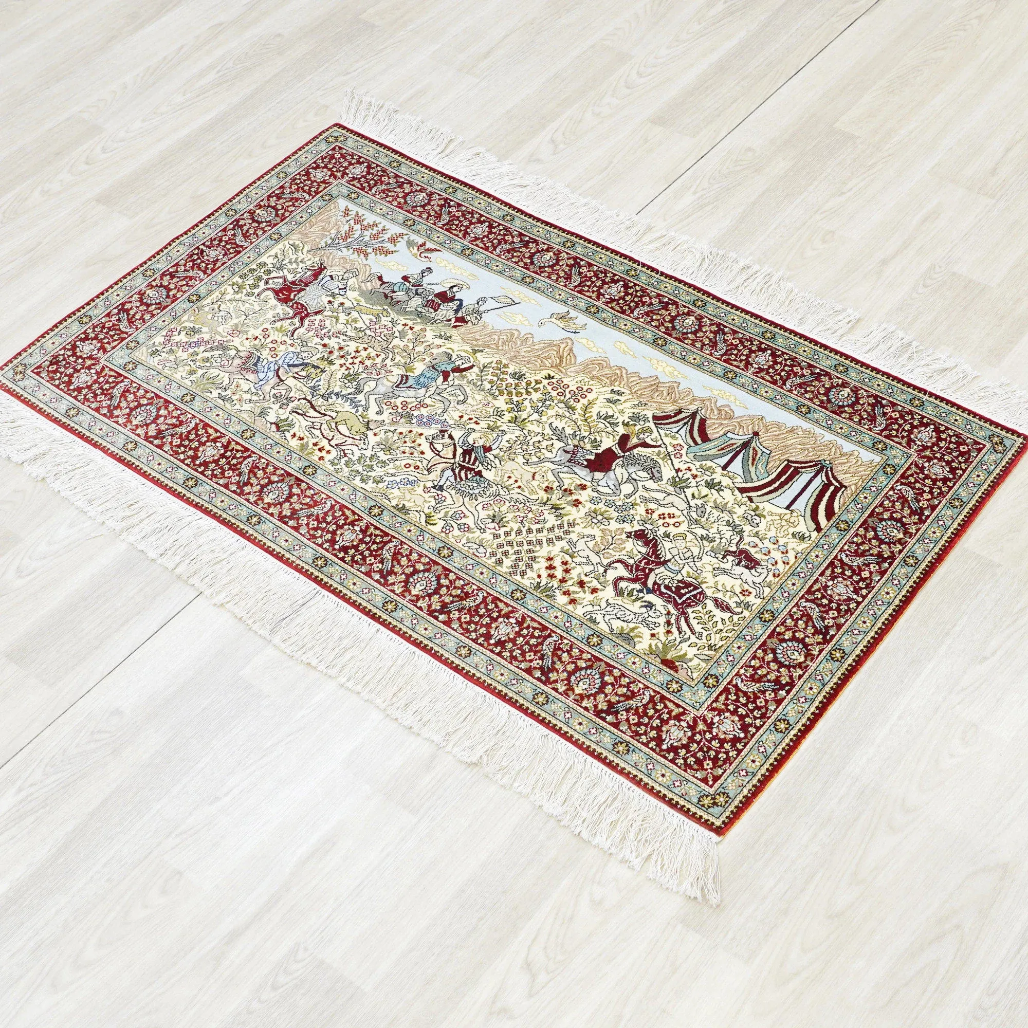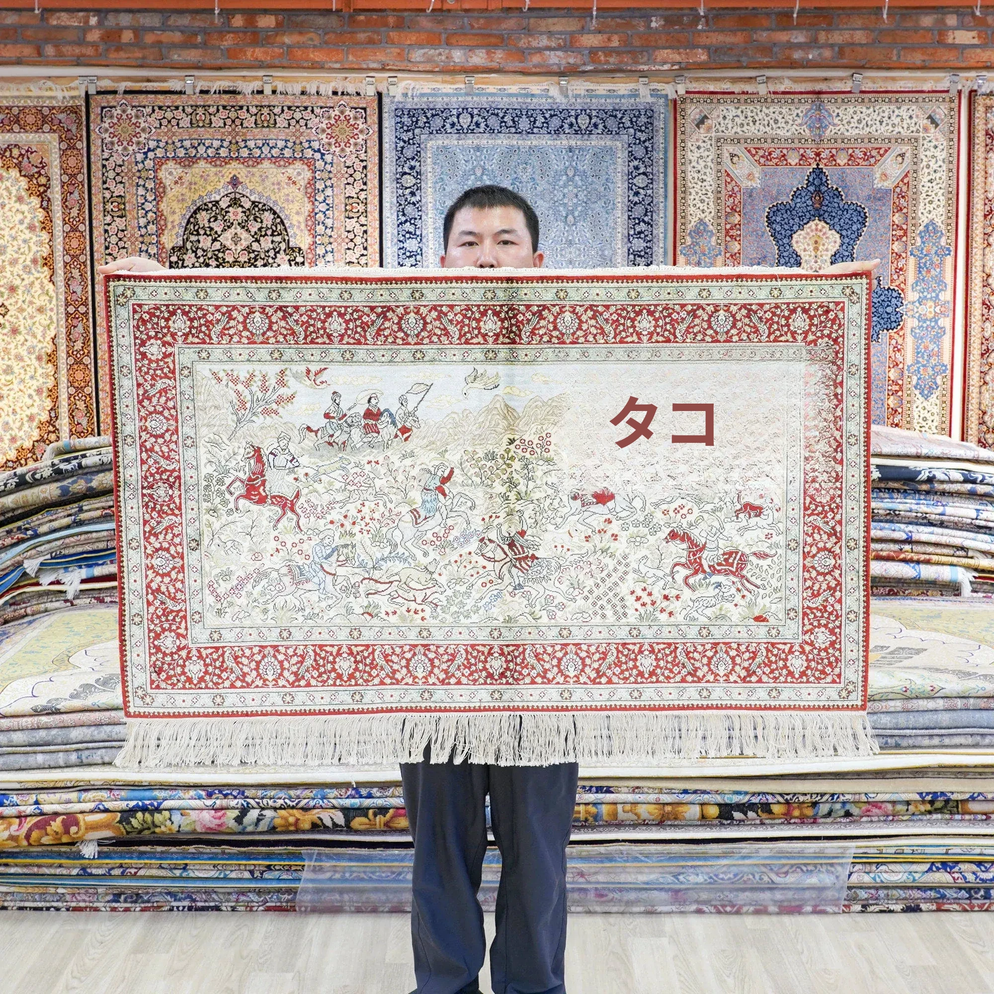 匠心手作の本絹ペルシャ風小サイズカーペット、トルコ輸出品、76x120cmの美しさをお部屋に。高品質な手織りで、あなたの空間に贅沢なイメージをプラス!