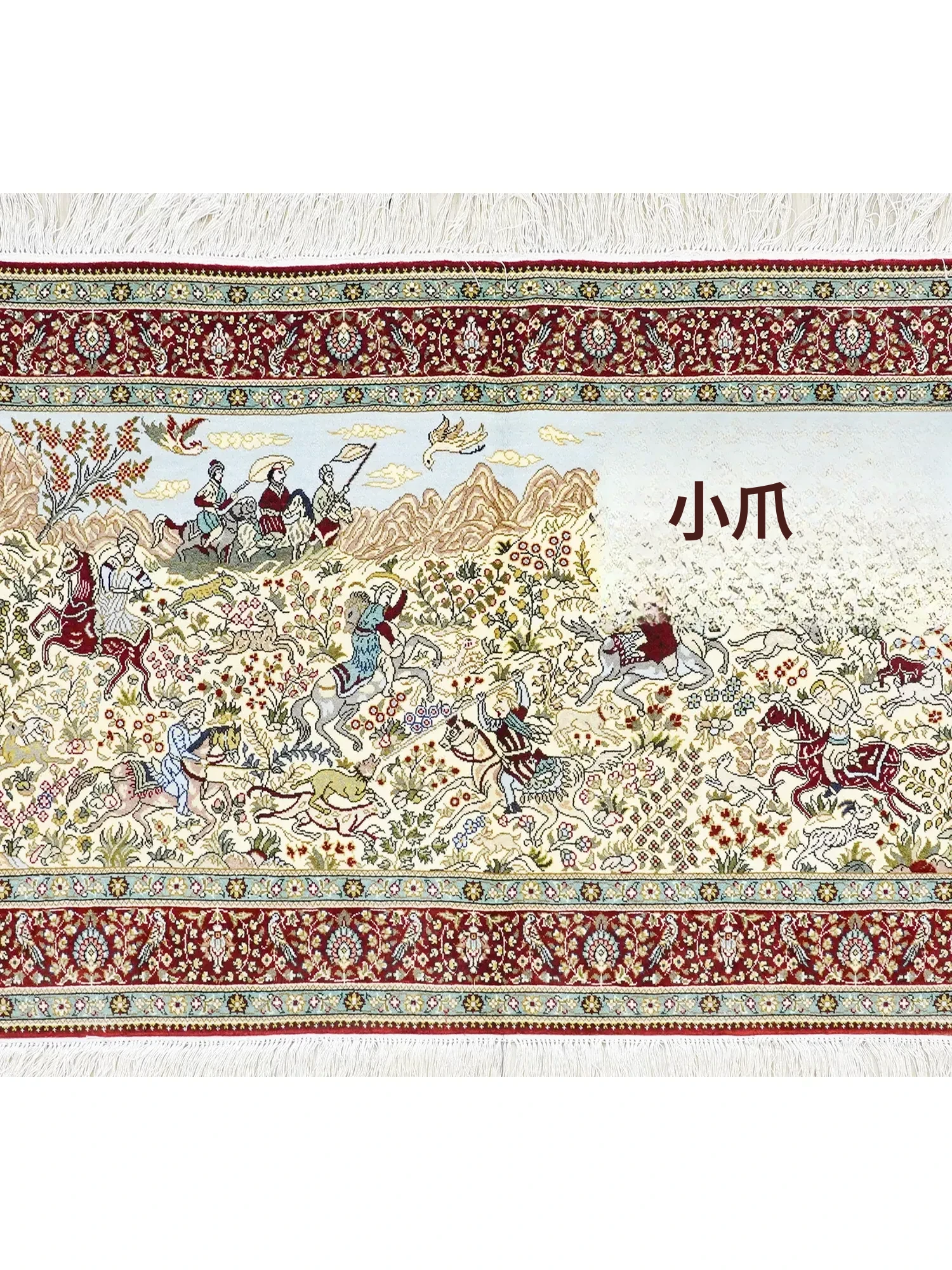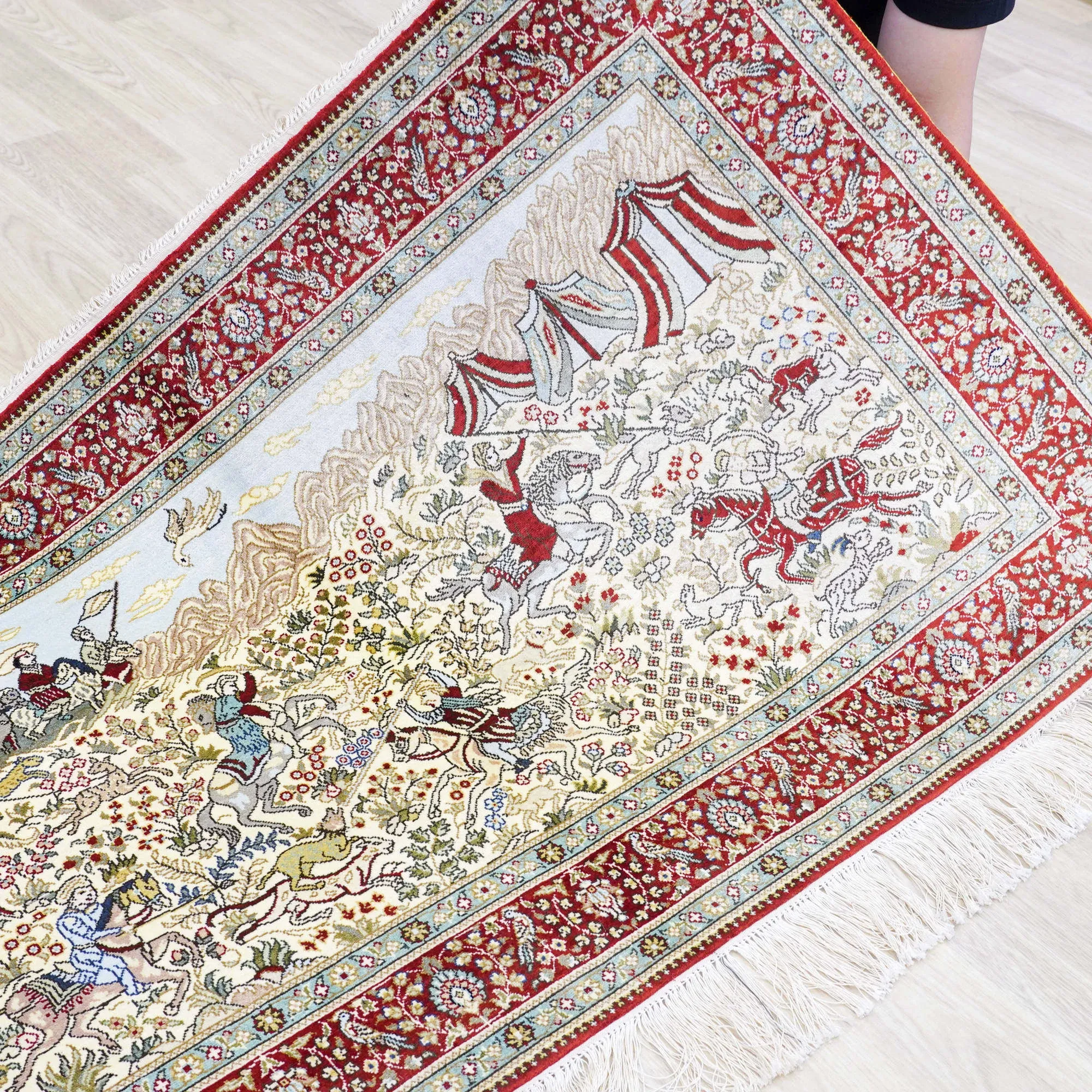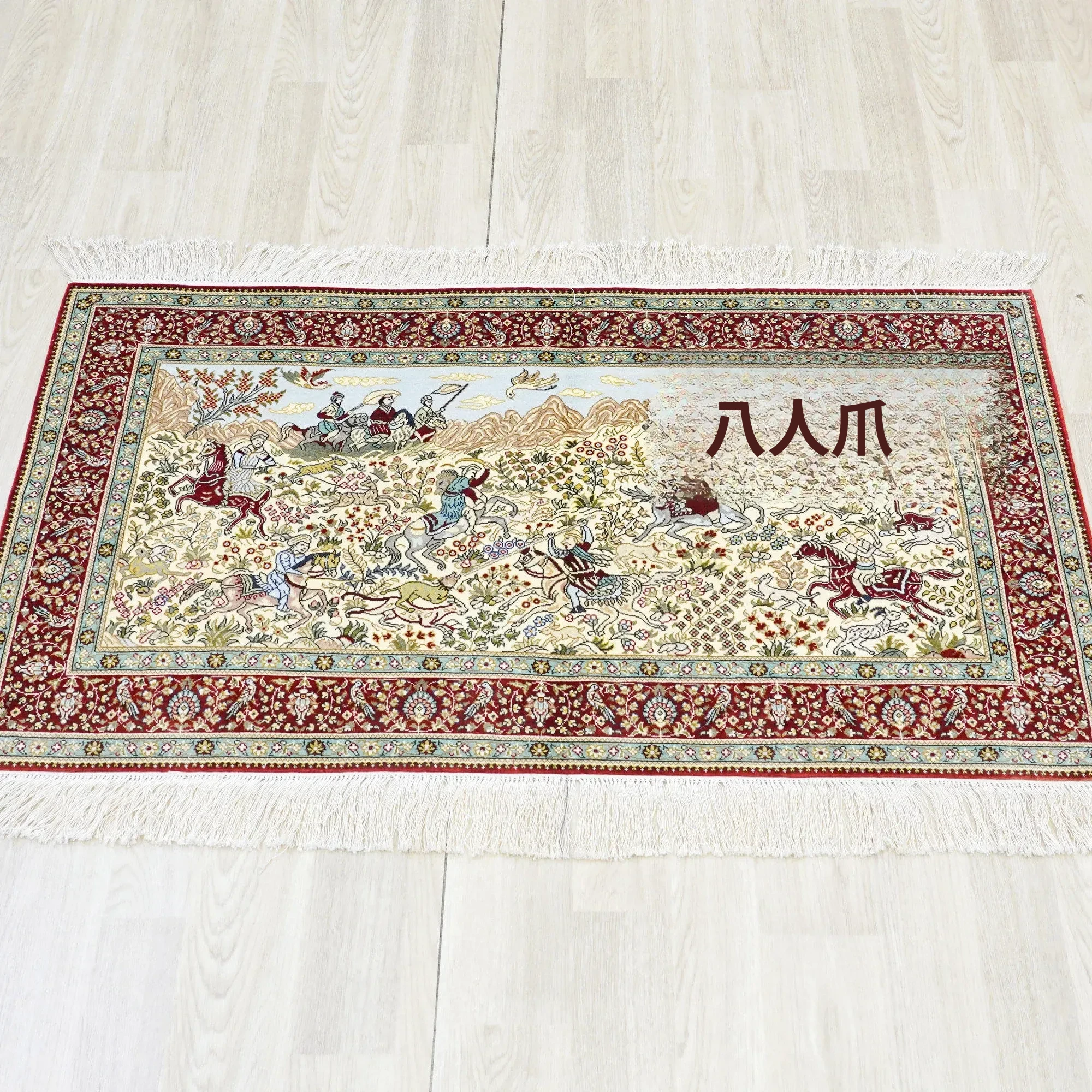 匠心手作の本絹ペルシャ風小サイズカーペット、トルコ輸出品、76x120cmの美しさをお部屋に。高品質な手織りで、あなたの空間に贅沢なイメージをプラス!