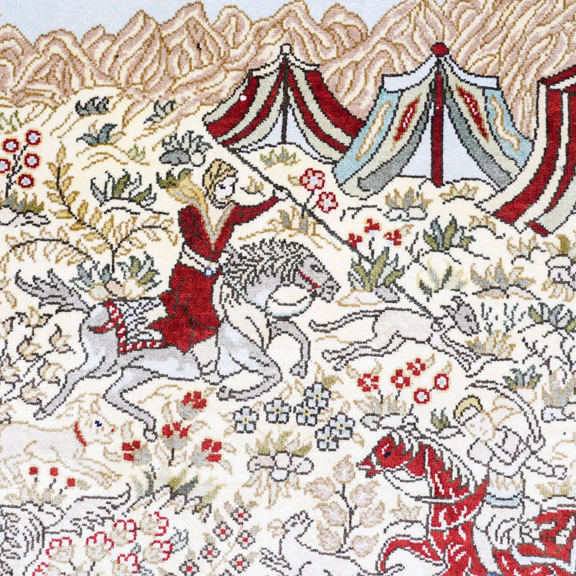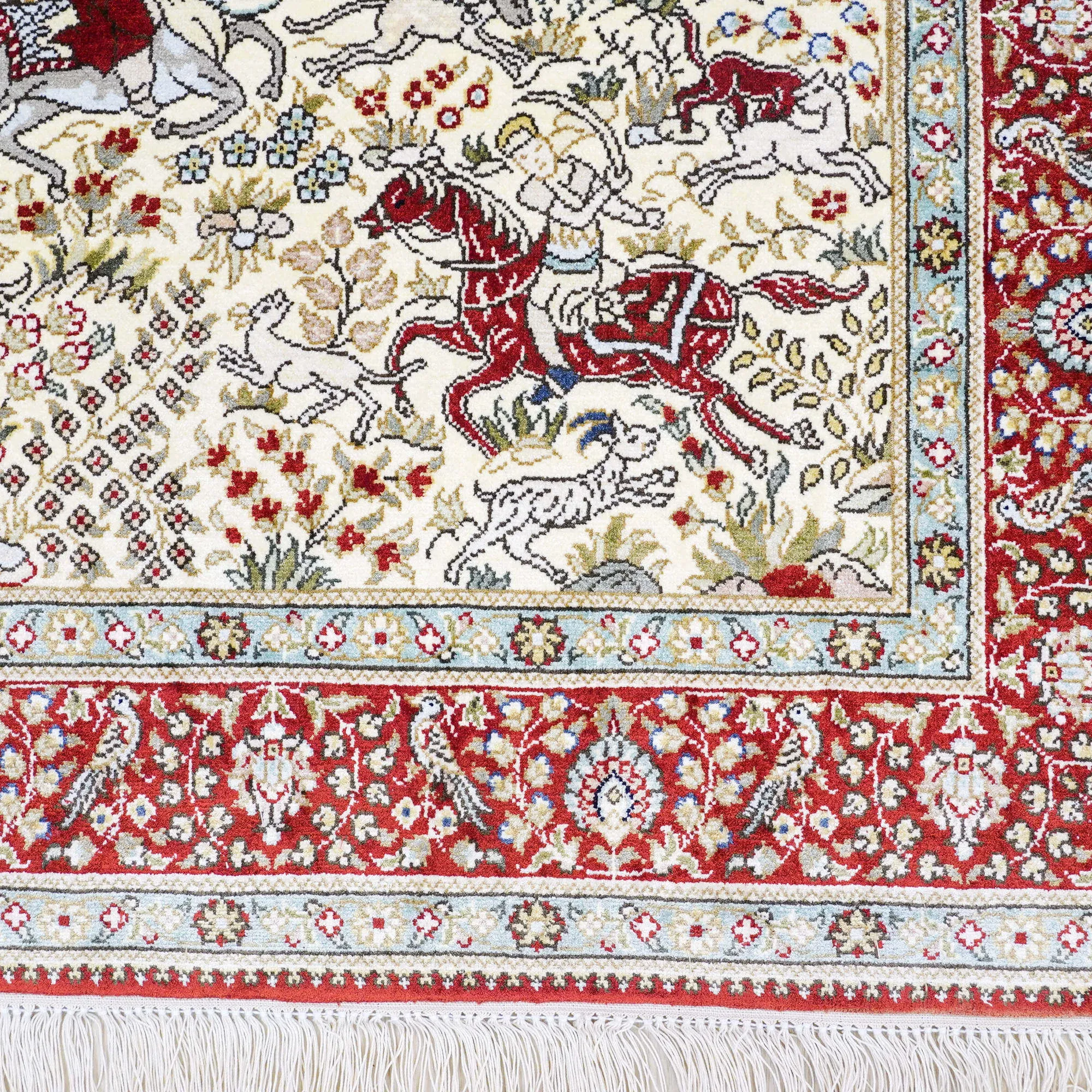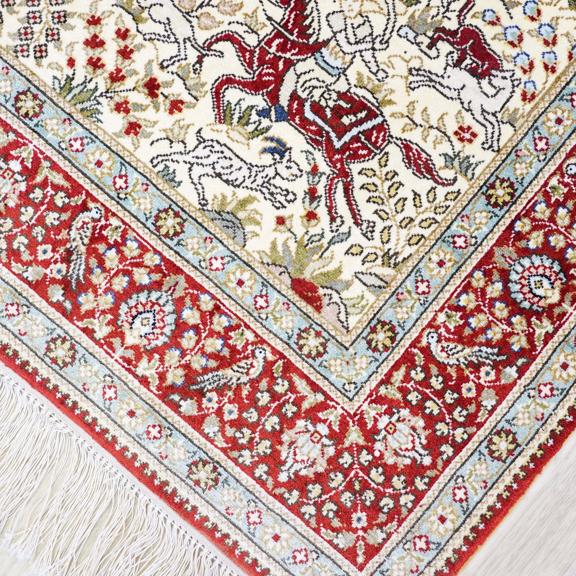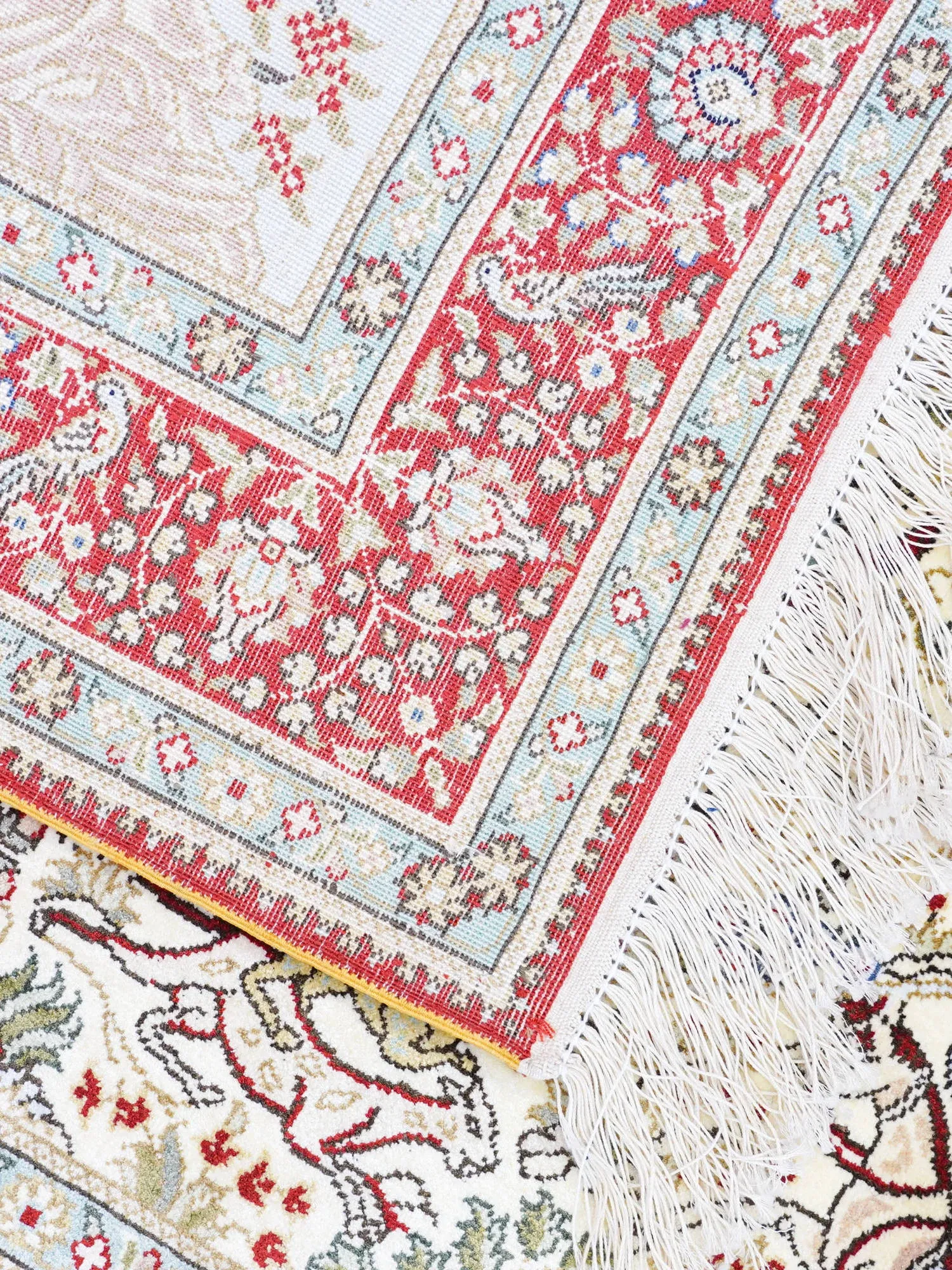 匠心手作の本絹ペルシャ風小サイズカーペット、トルコ輸出品、76x120cmの美しさをお部屋に。高品質な手織りで、あなたの空間に贅沢なイメージをプラス!
