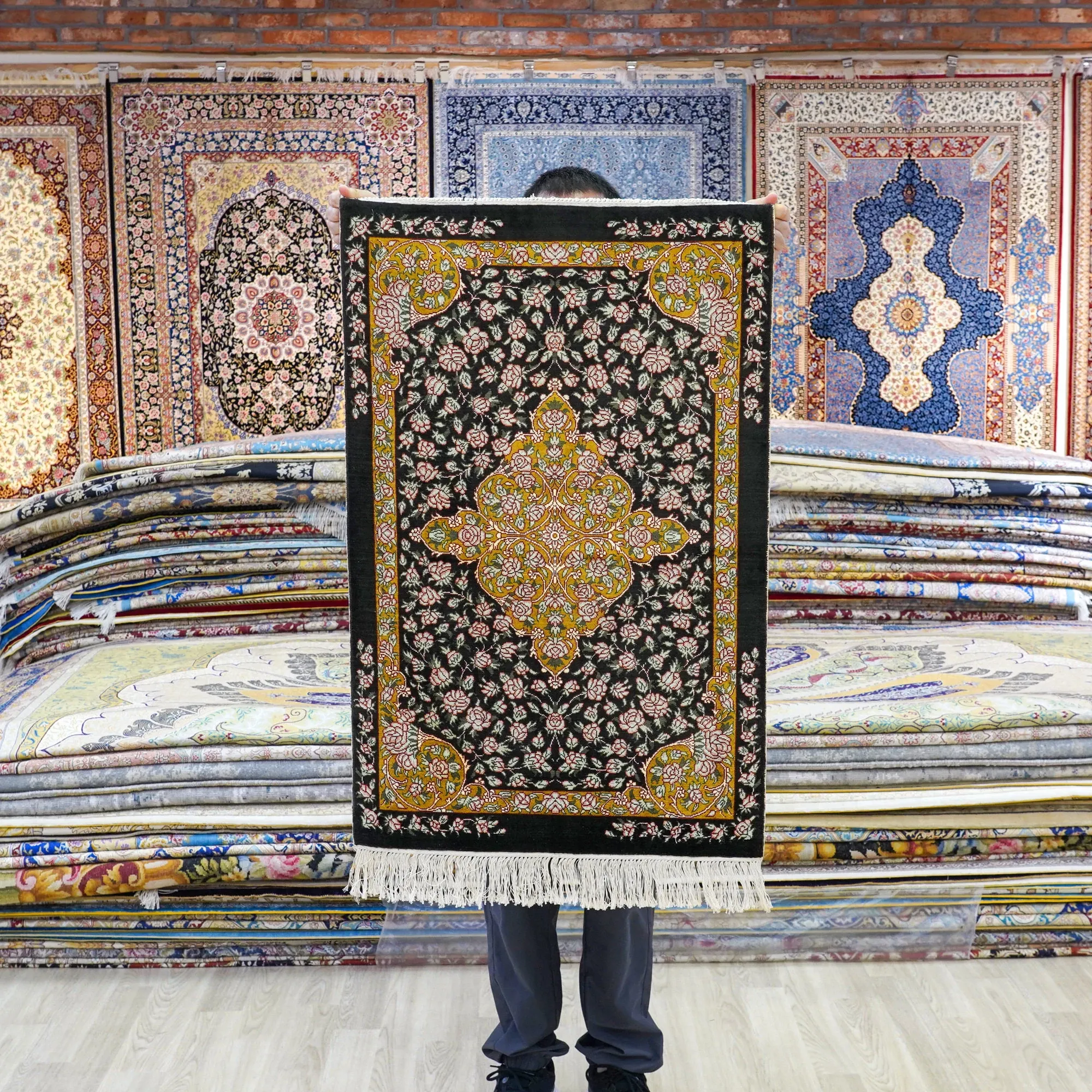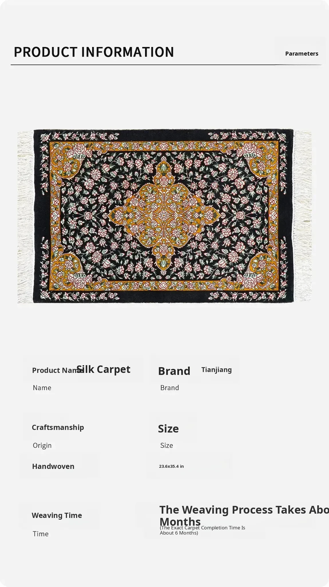 Handcrafted Genuine Silk Rug by Tianjiang - Exquisite Persian Design for Turkish Villas, Perfect for Living Rooms, Bedrooms, and Studies - Size: 60x90cm