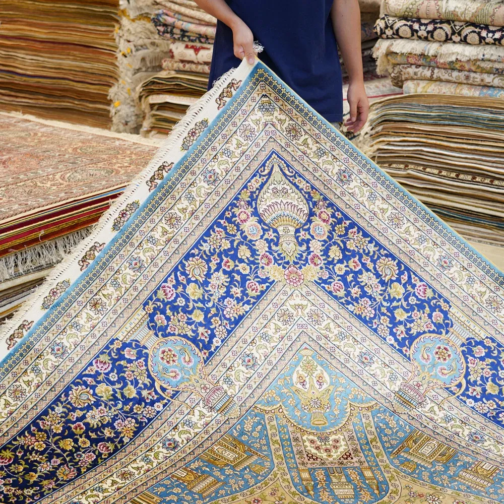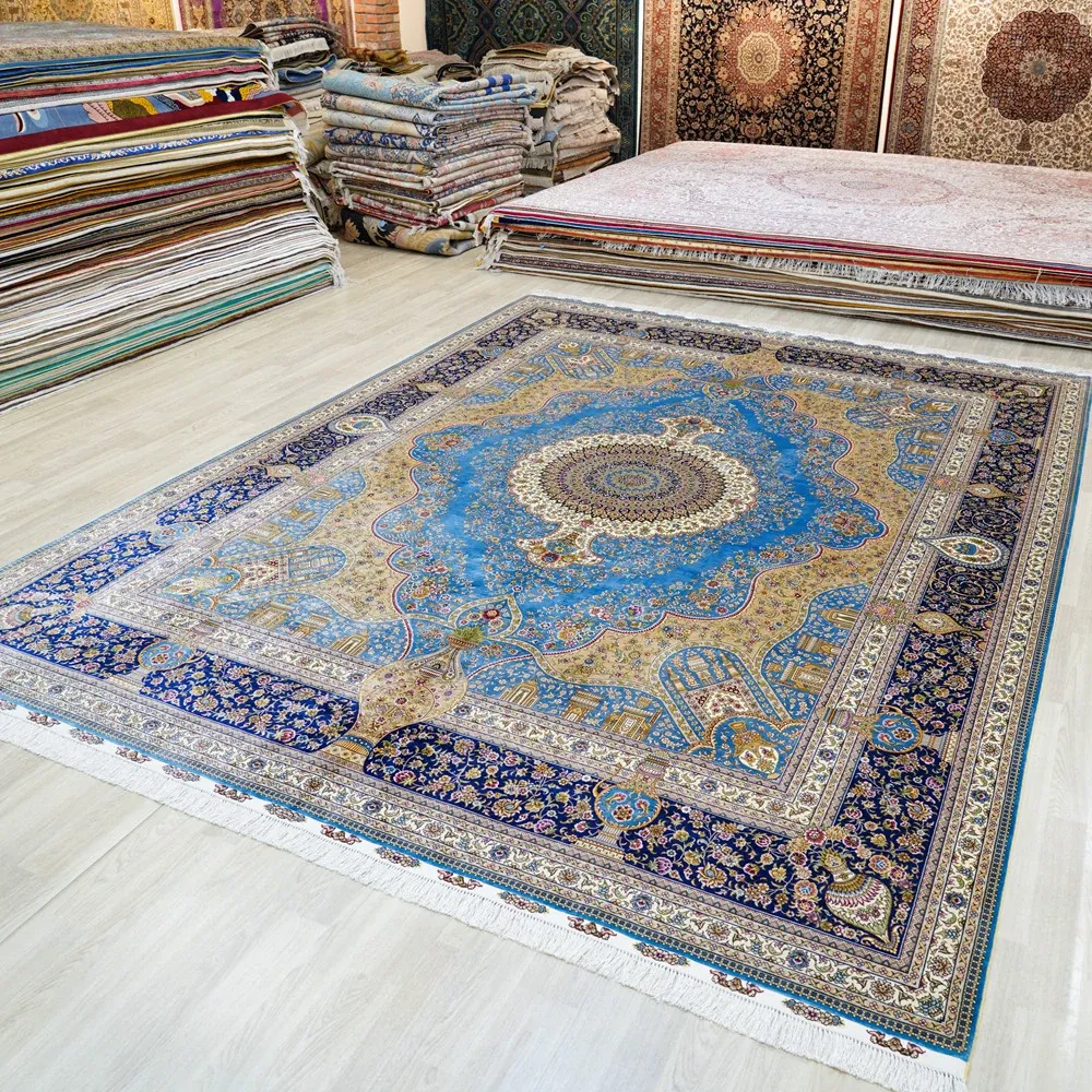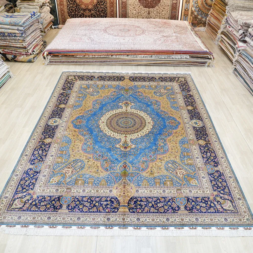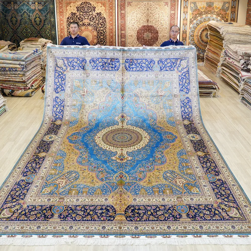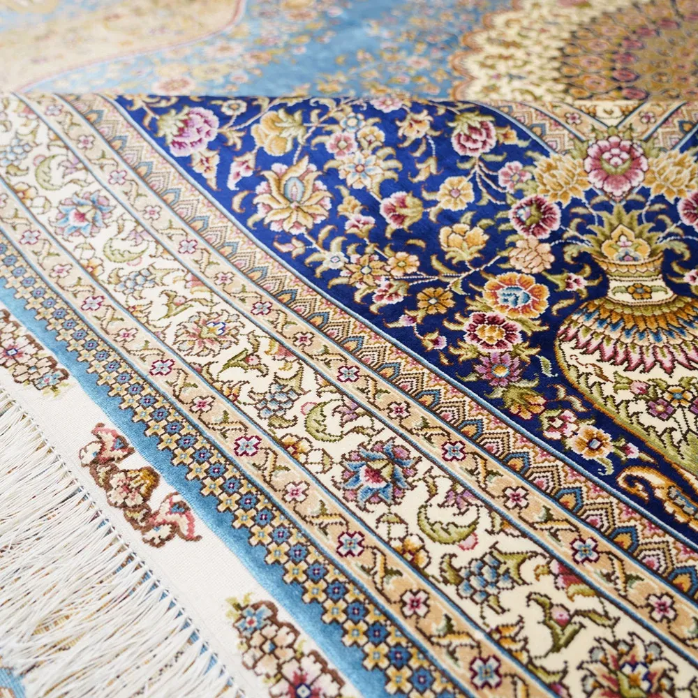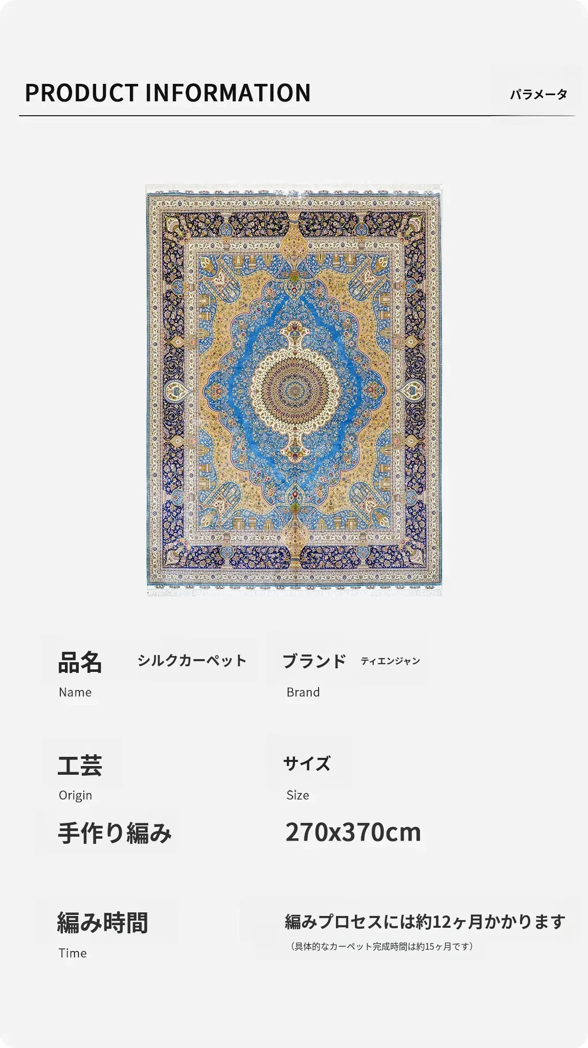匠心手作の本物シルクラグ - 書斎やリビングにぴったりの270x370cmの長方形カーペット。手入れ簡単で、上質なデザインが空間を華やかに演出します。