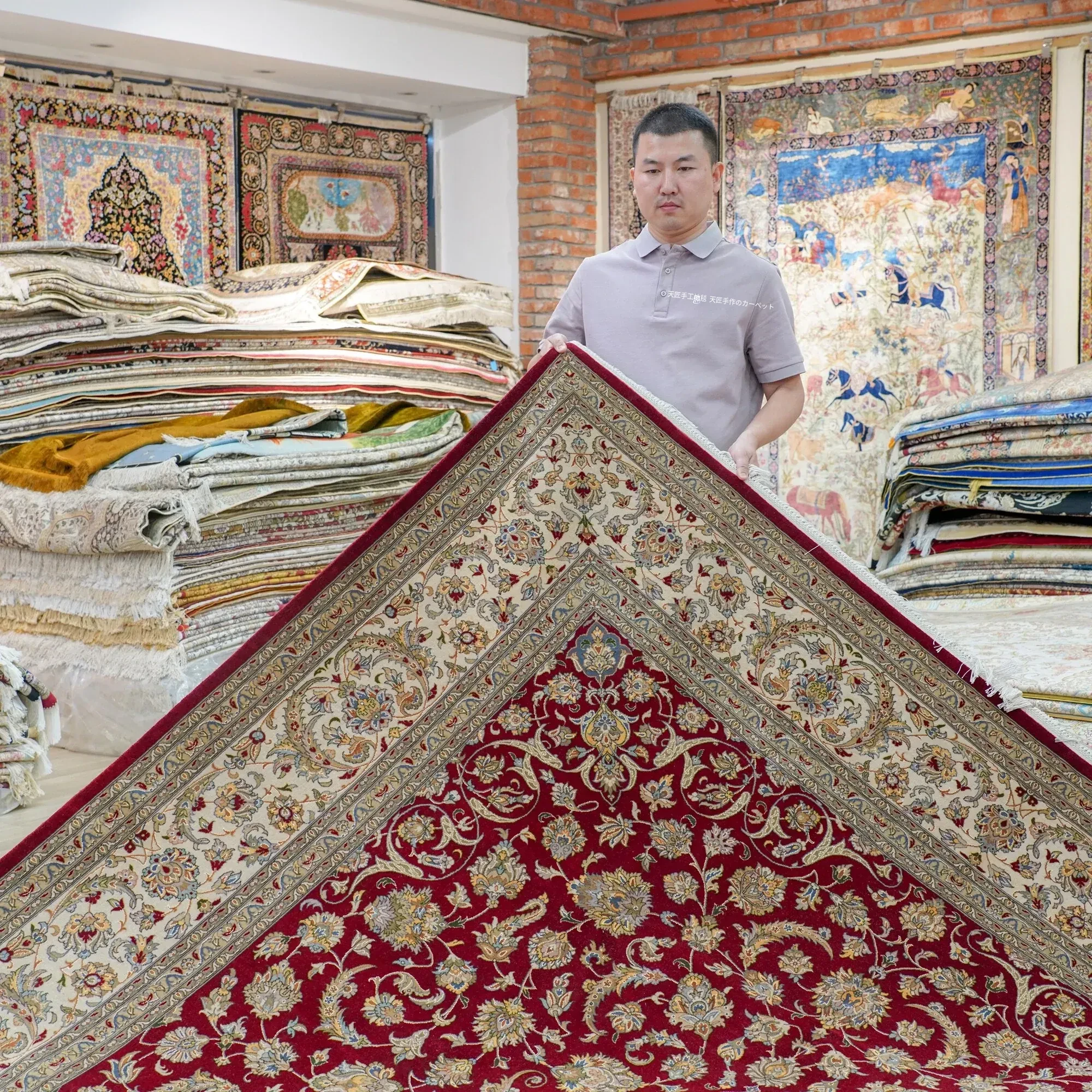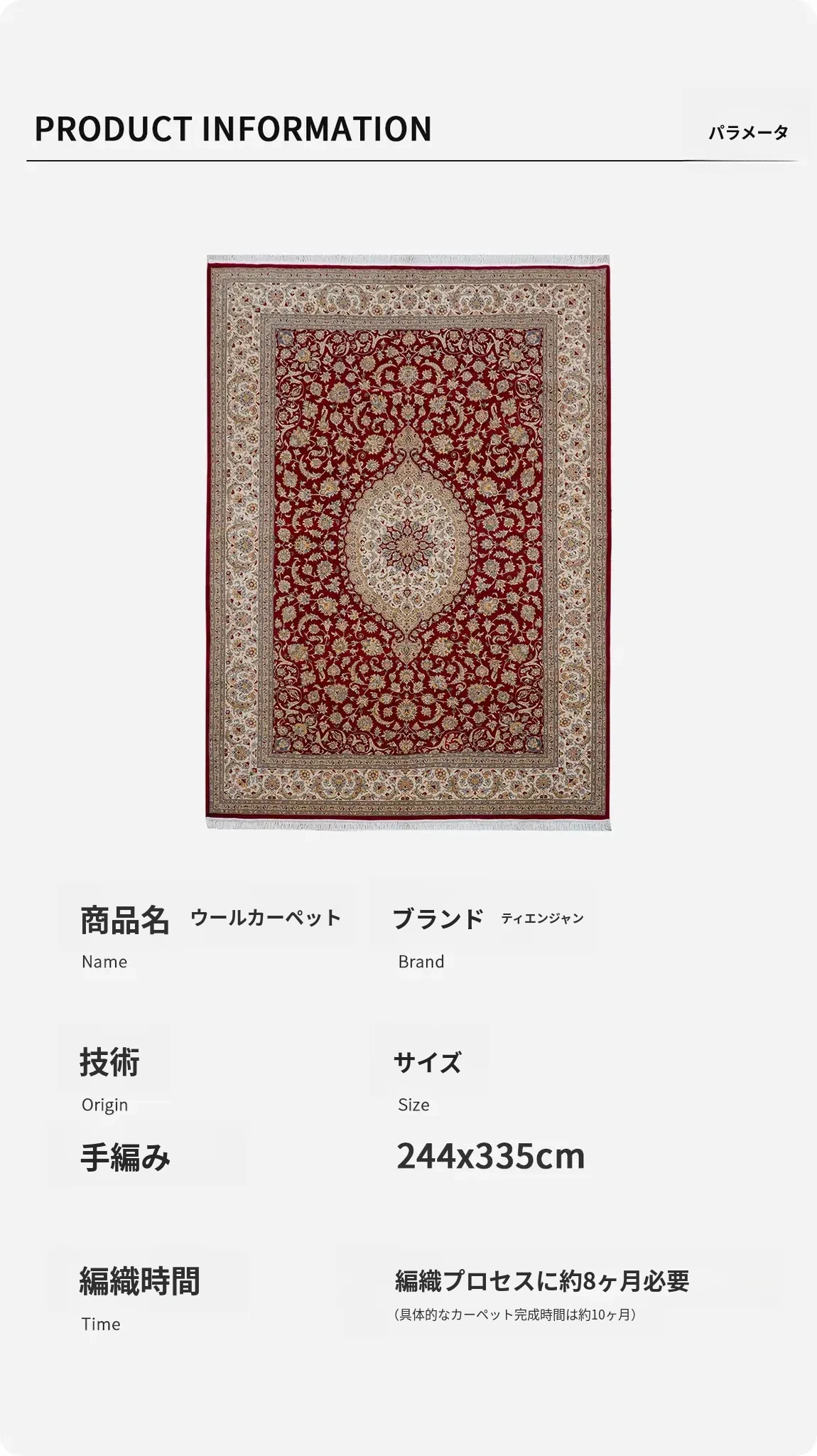 天匠のウールカーペット - 高級感あふれる手作りカーペット、リビングや寝室に最適!輸入品で244x335cmの広々としたサイズ、別荘にもぴったりです。