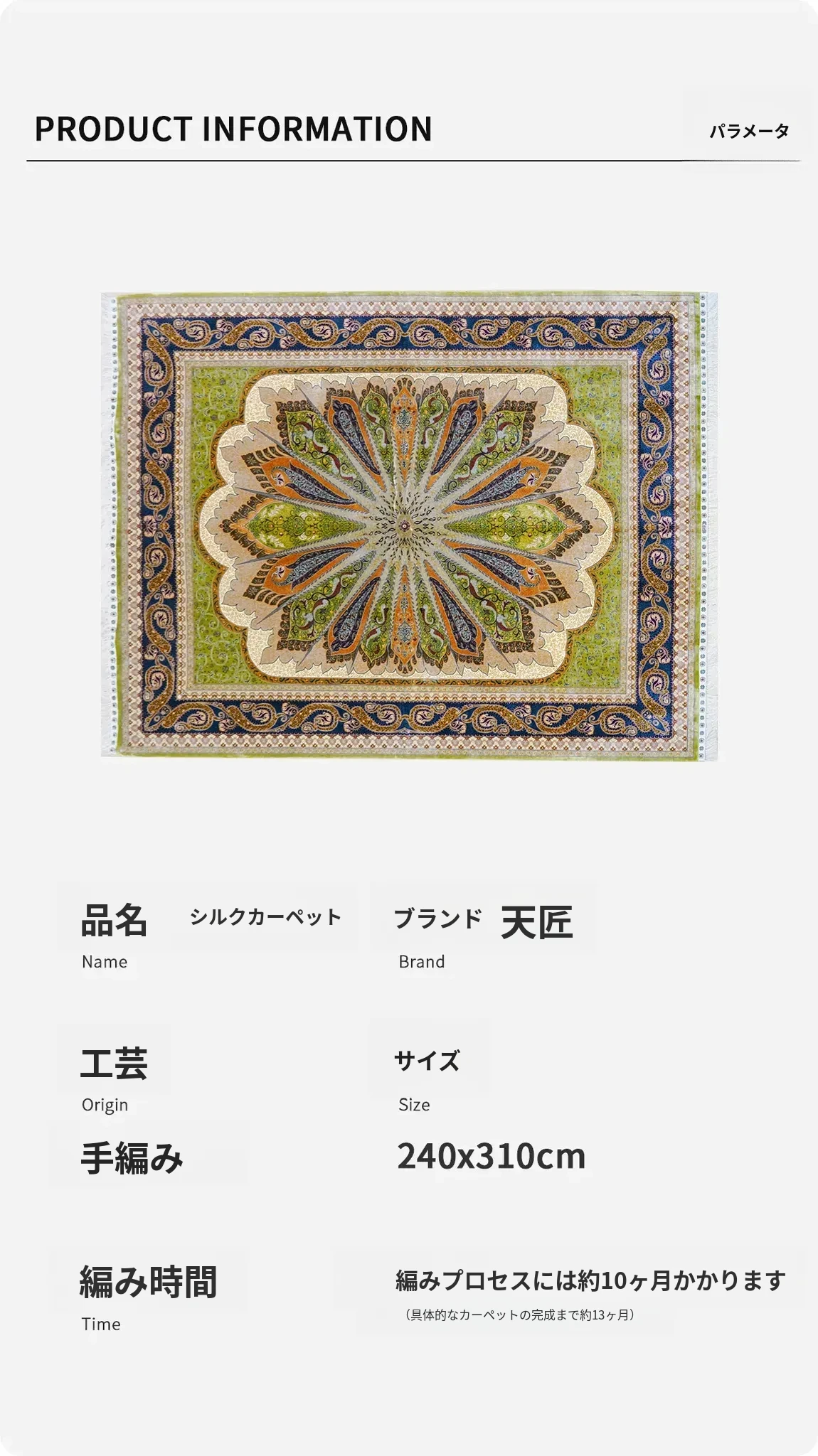 手作りペルシャ絨毯 - ヴィラのリビングにぴったり!豪華な欧州スタイル、240x310cmのトルコ製カーペットで、快適さと美しさを同時に実現。欧米市場向けの高品質なインテリアアイテム!