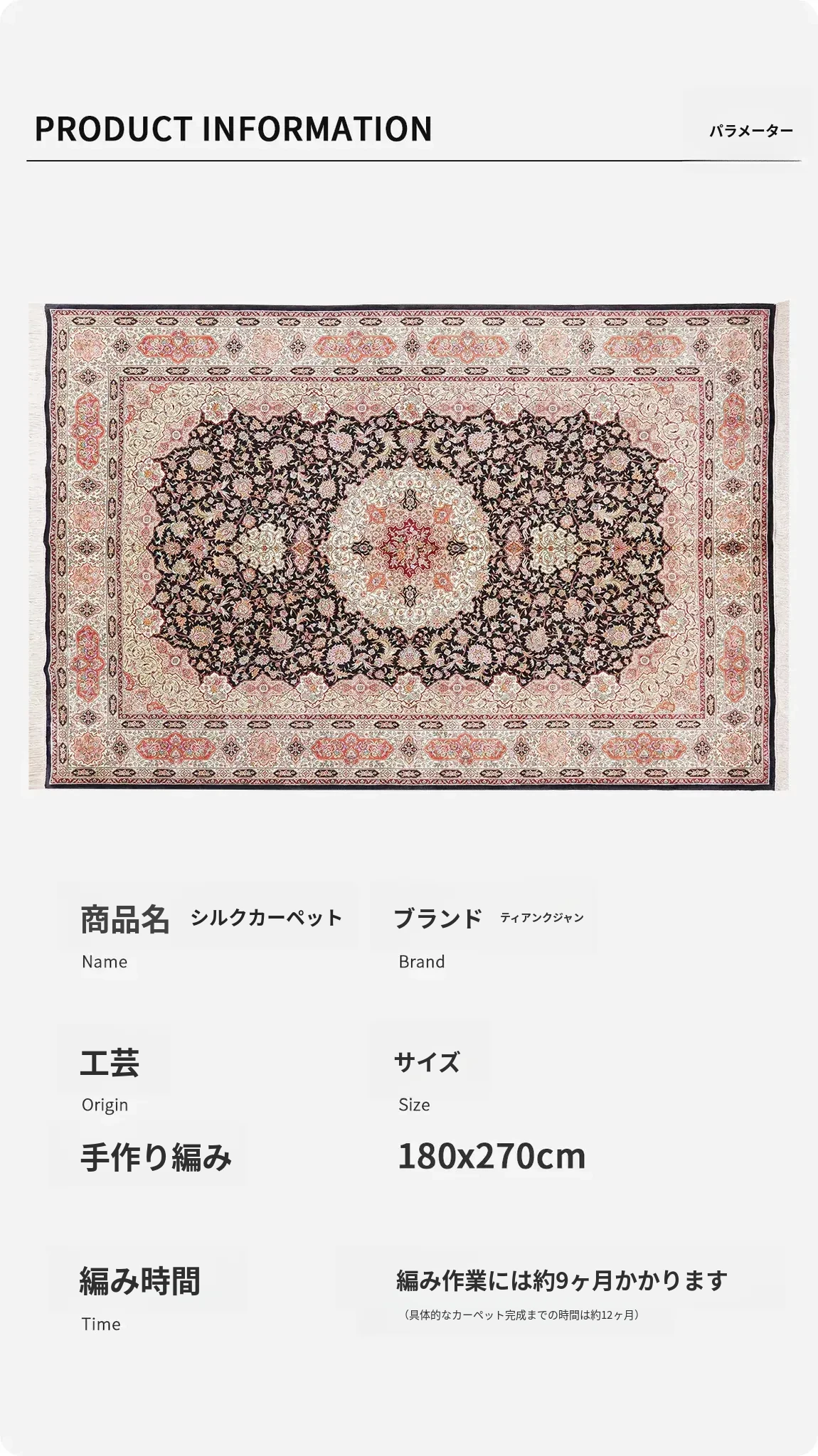 天匠手作の本物シルクペルシャカーペット - 洗えるモダン北欧スタイル、180x270cmのリビングや寝室に最適!おしゃれなインテリアを演出します。
