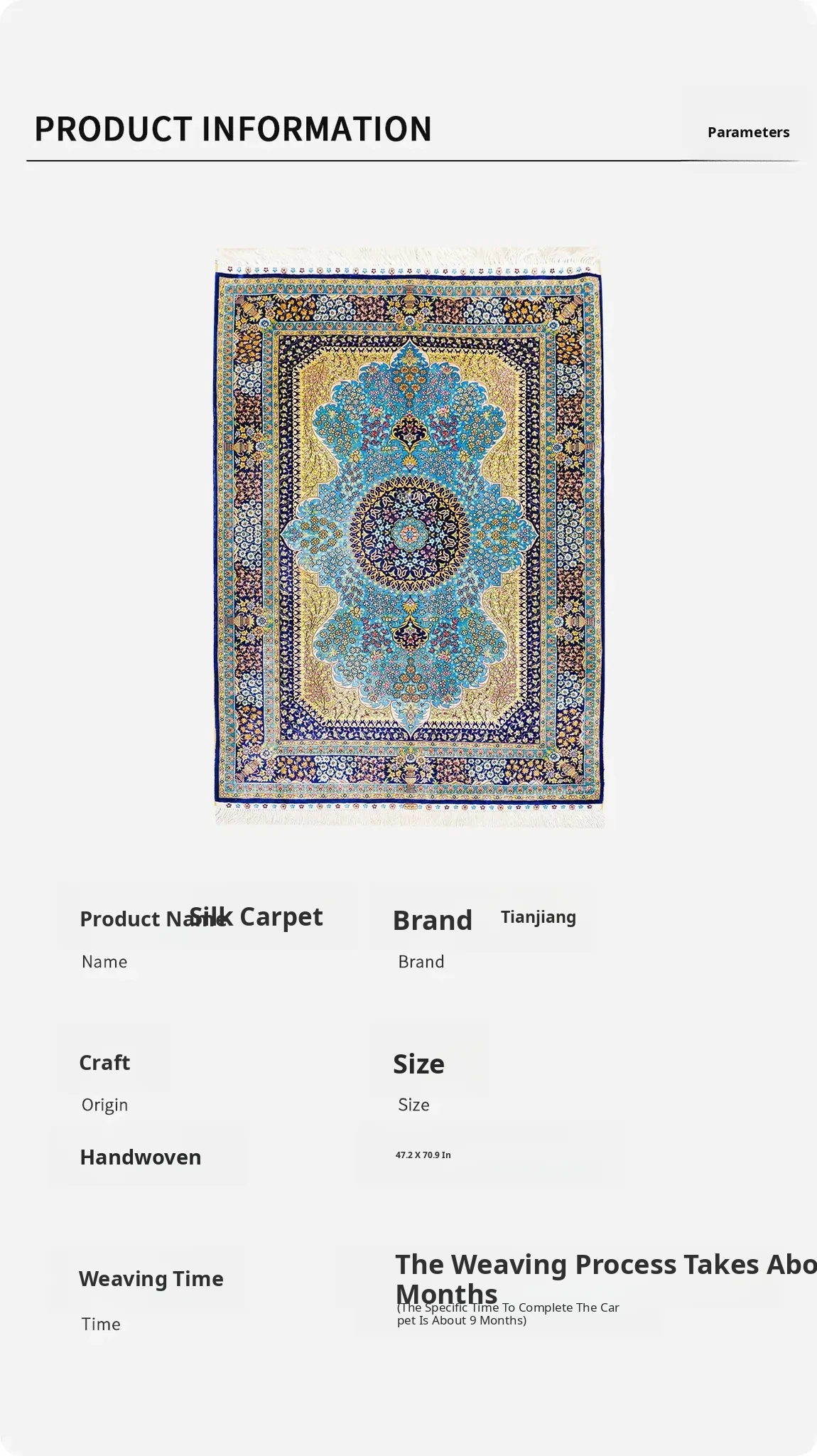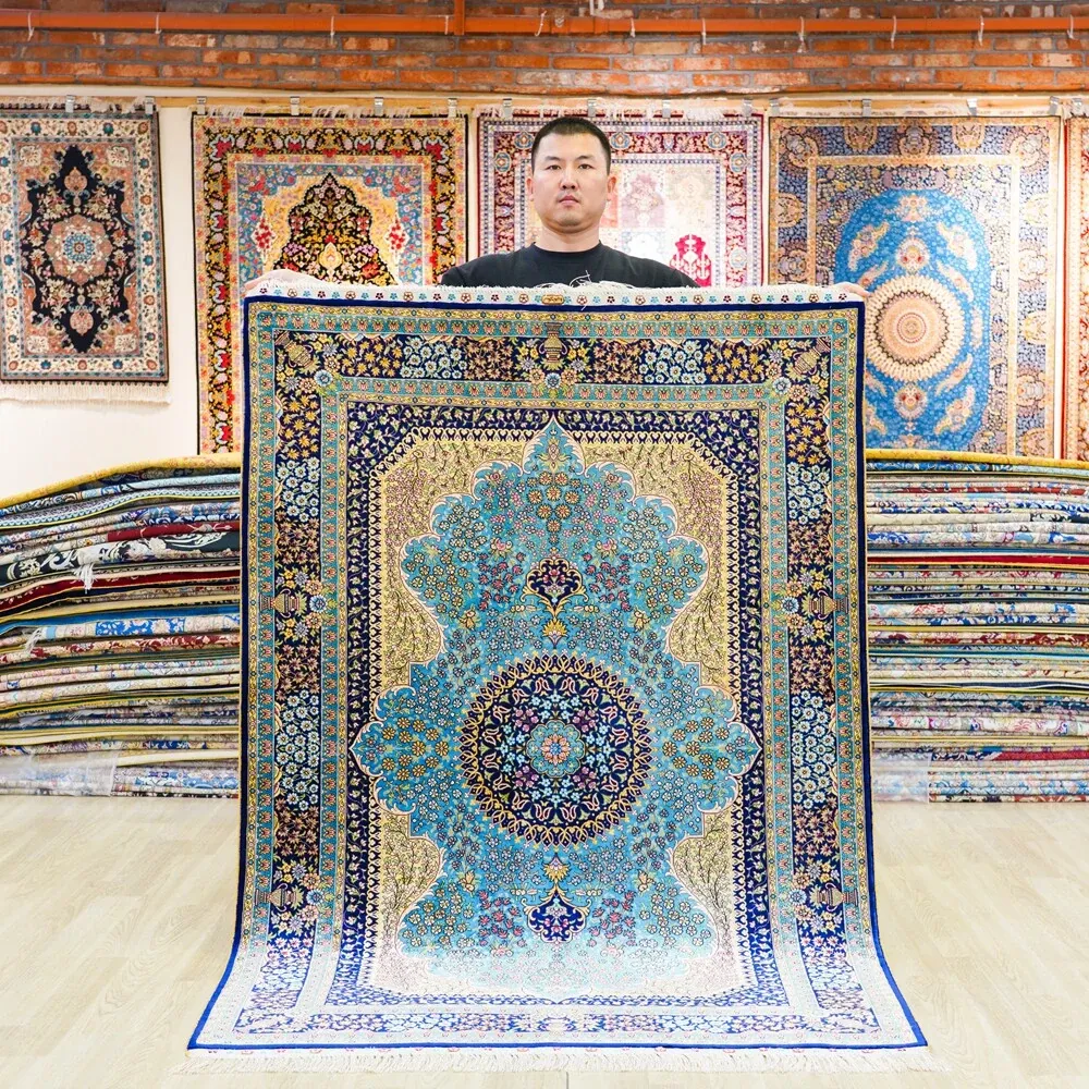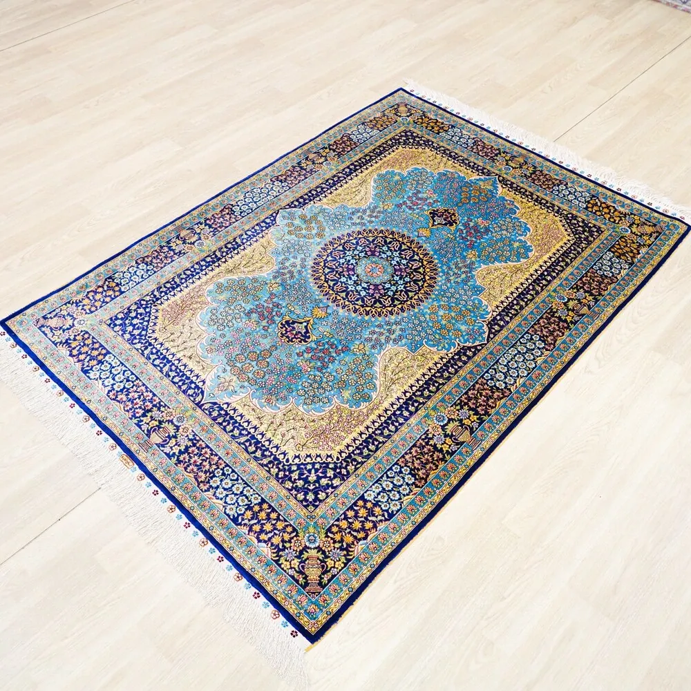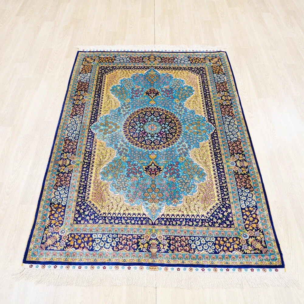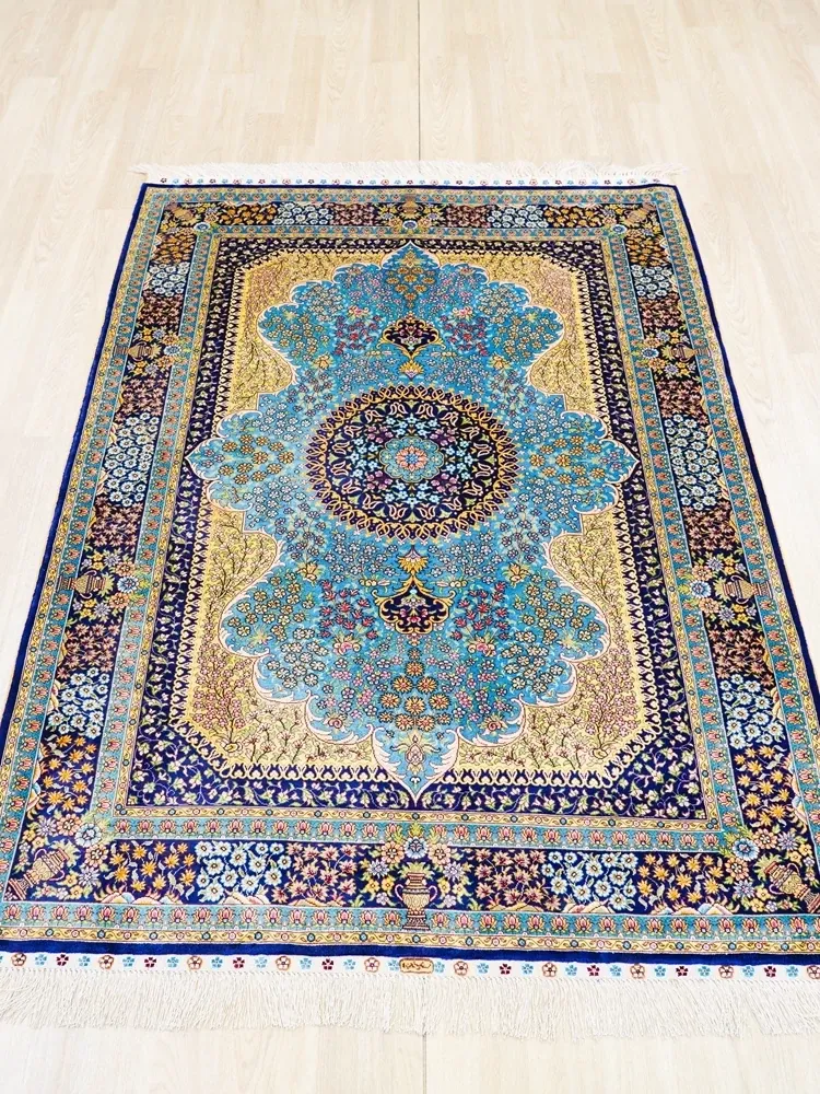Handcrafted Persian Silk Carpet – Luxurious 120x180cm Area Rug for Villa Living Room and Bedroom Décor