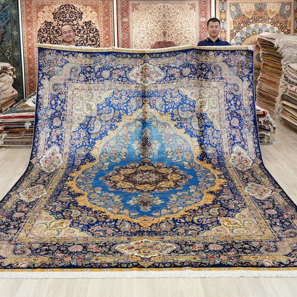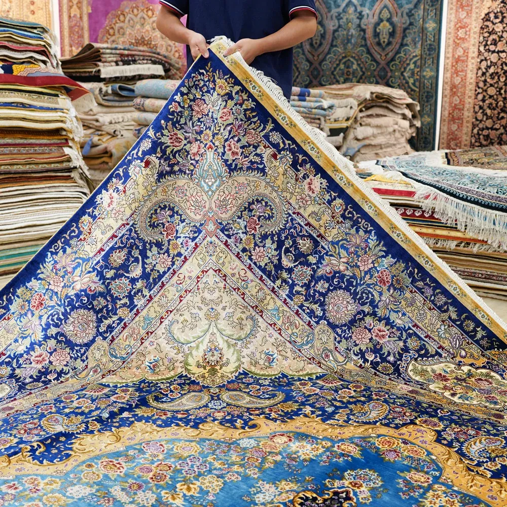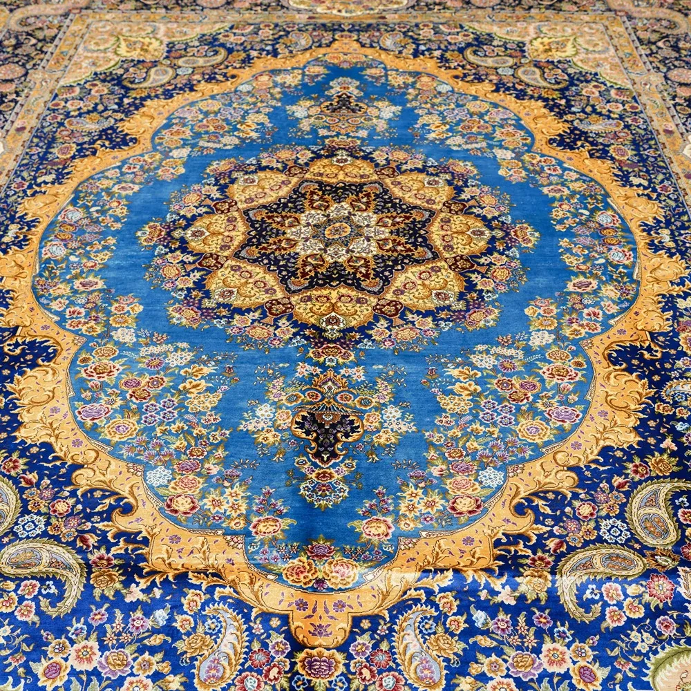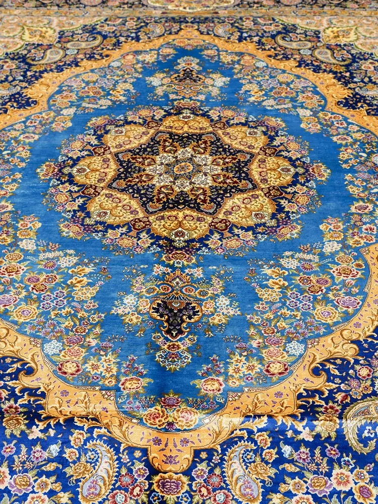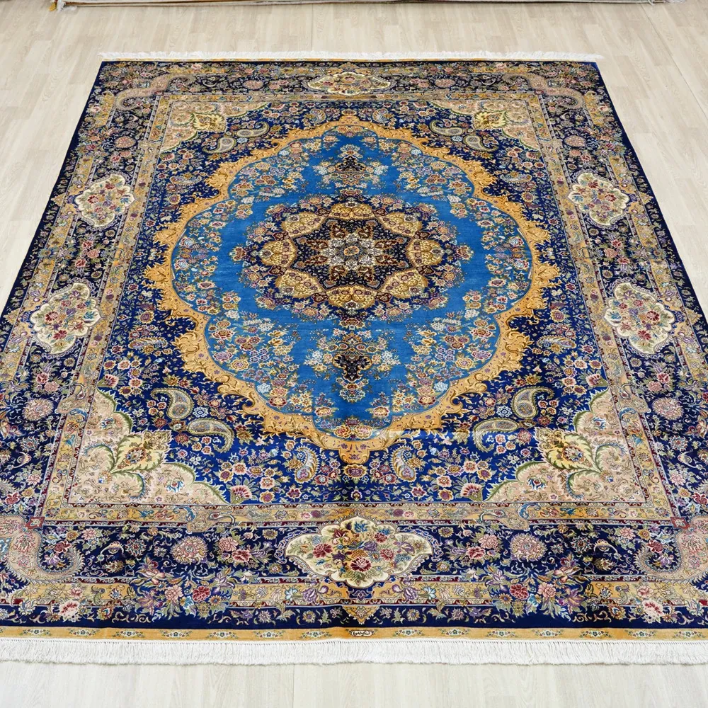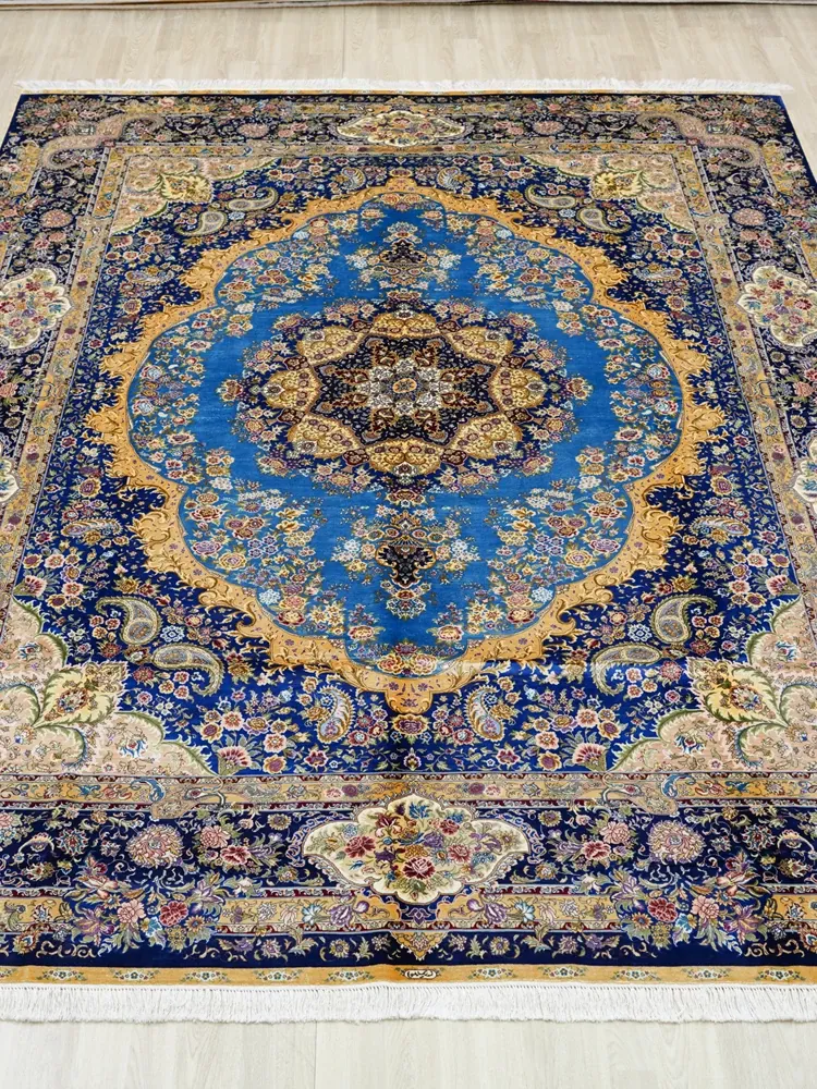 Handcrafted Persian Silk Carpet by Artisan - Luxurious Area Rug for Villas and Mansions, Perfect for Living Rooms - Imported, Size: 270x370cm