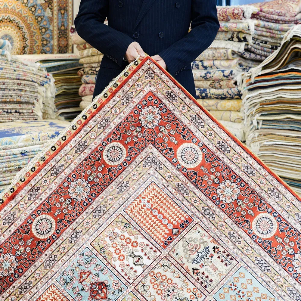 天匠の手作りシルクカーペット - ペルシャカーペット、トルコ製、家庭用ベッドルームに最適!サイズ180x270cmで、贅沢な空間を演出します。高品質の素材で、耐久性と美しさを兼ね備えた一品です。