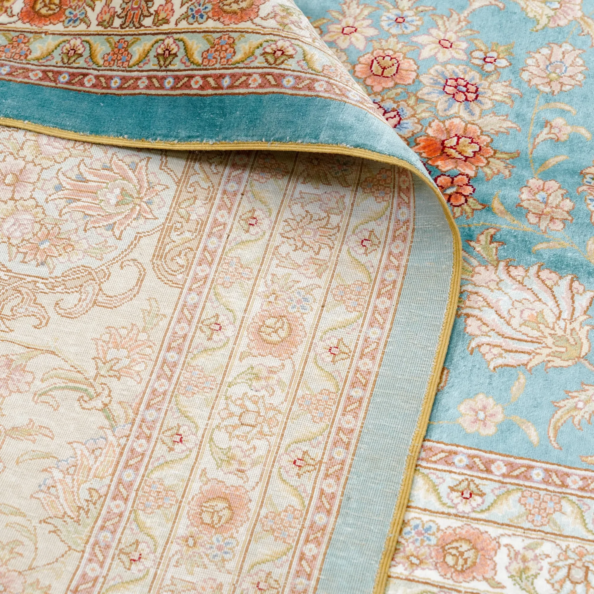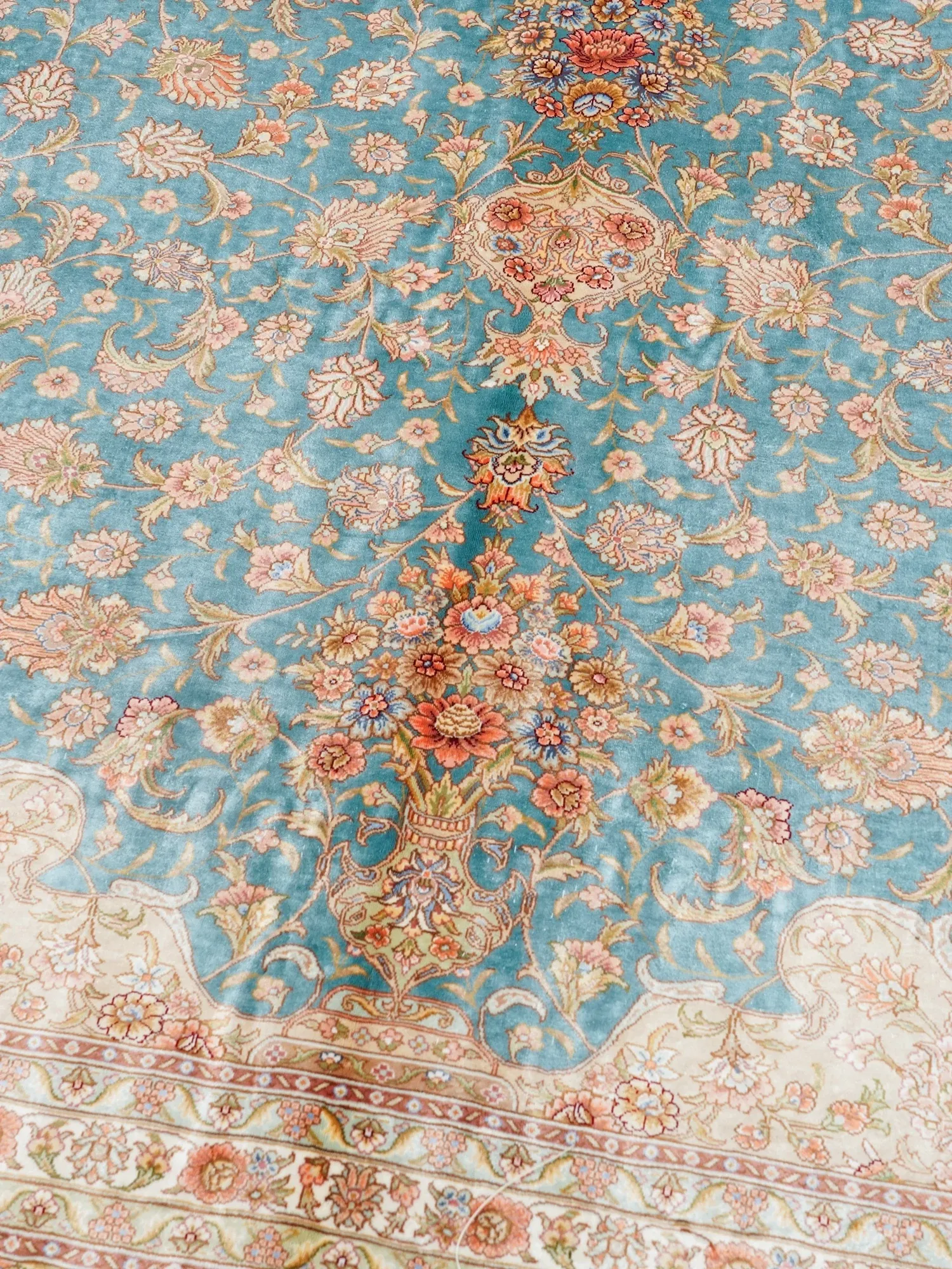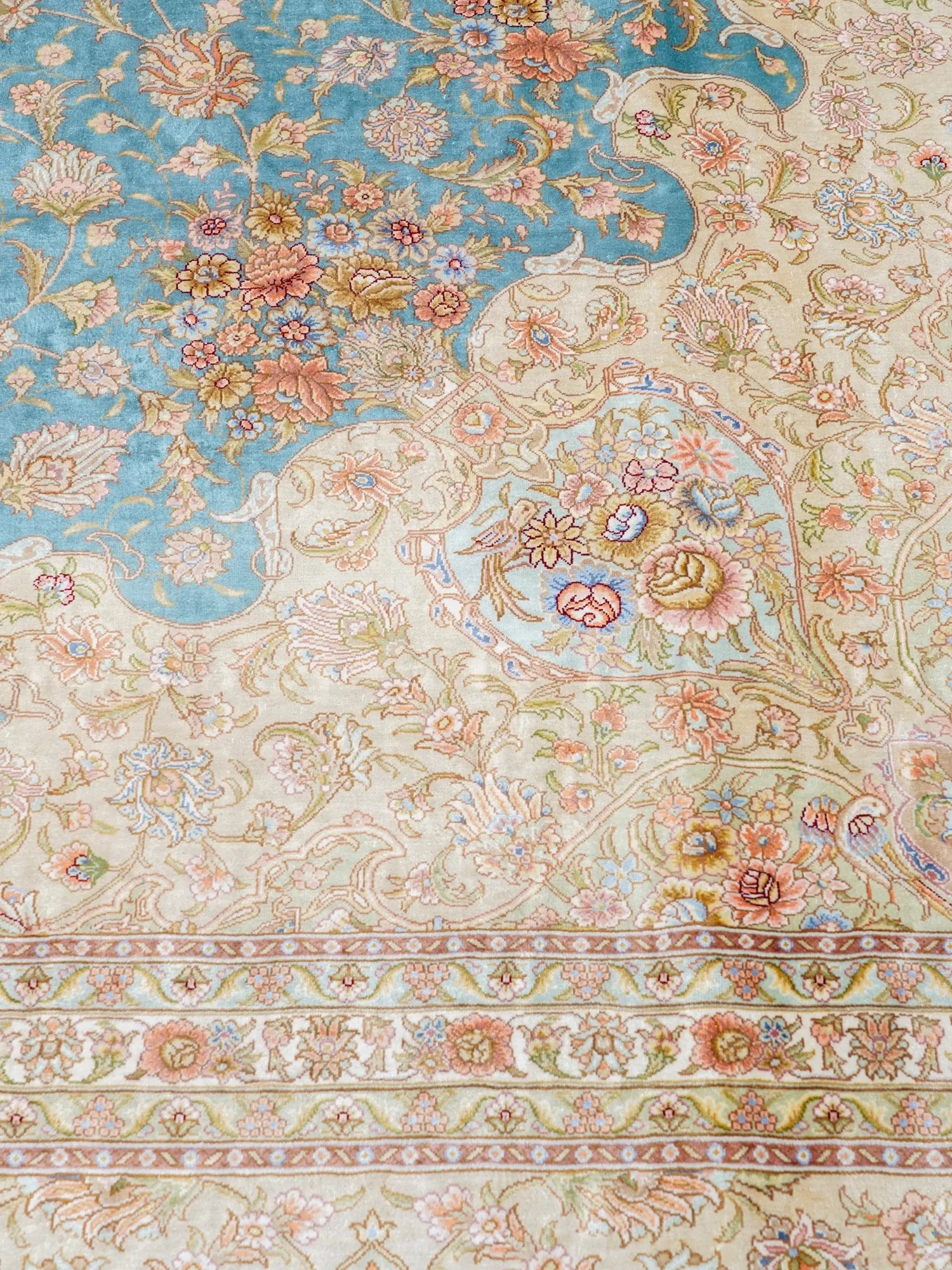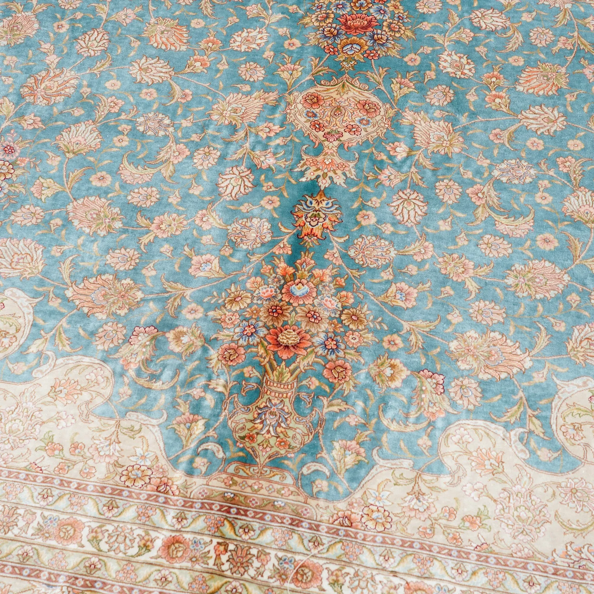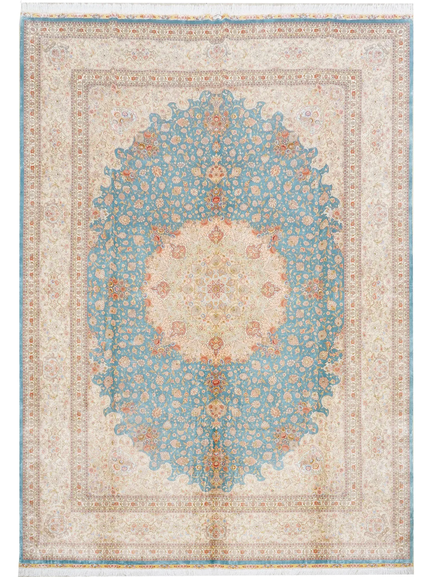 天匠の手作りシルクカーペット - イラン製の高級シルクカーペット、リビングや寝室にぴったり!豪華な310x430cmサイズ、羊毛の柔らかさと美しさを兼ね備えた一品で、あなたの空間を華やかに彩ります。