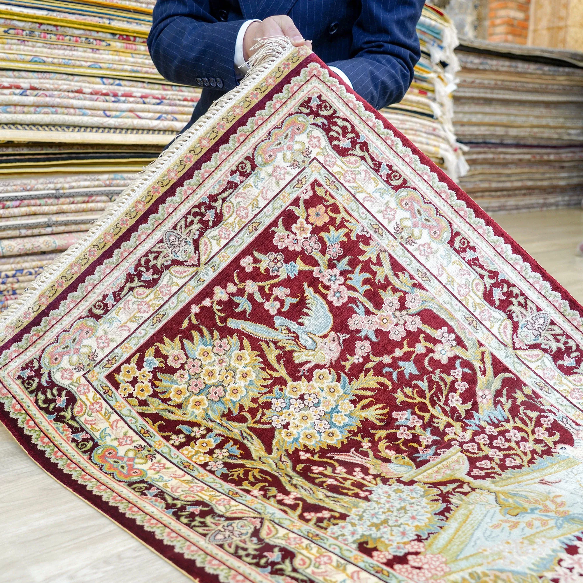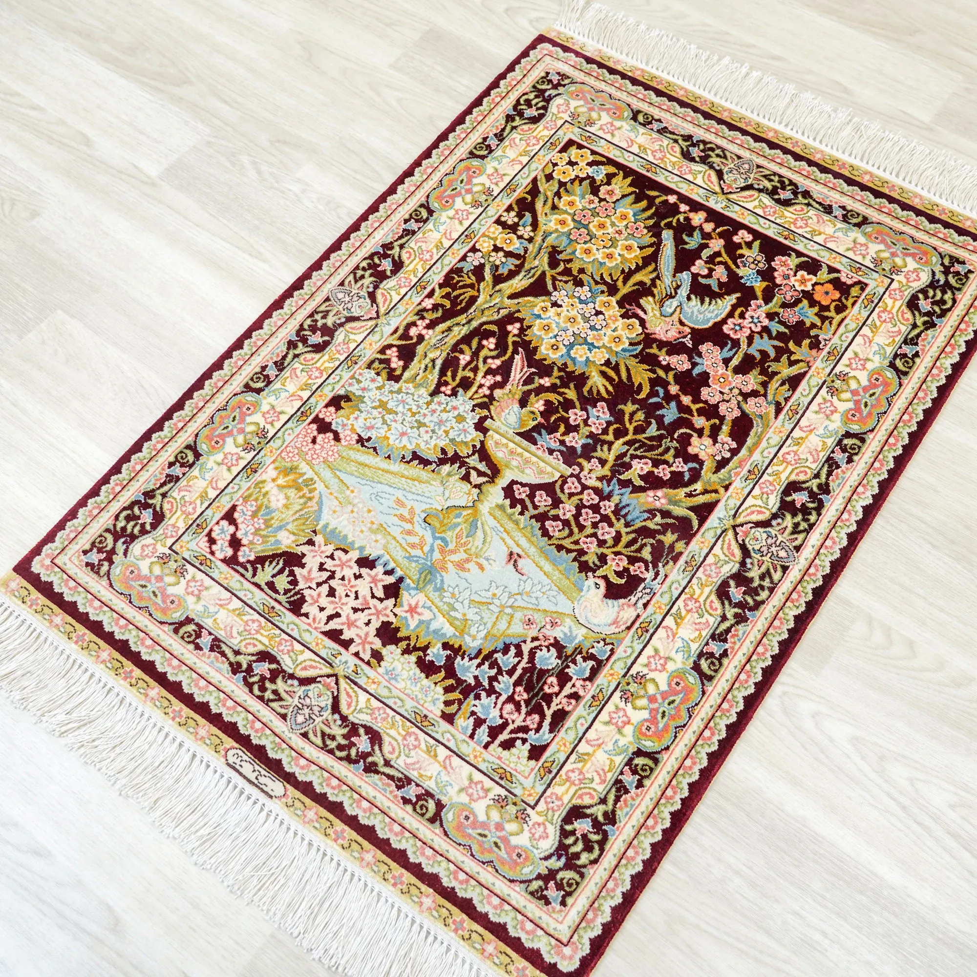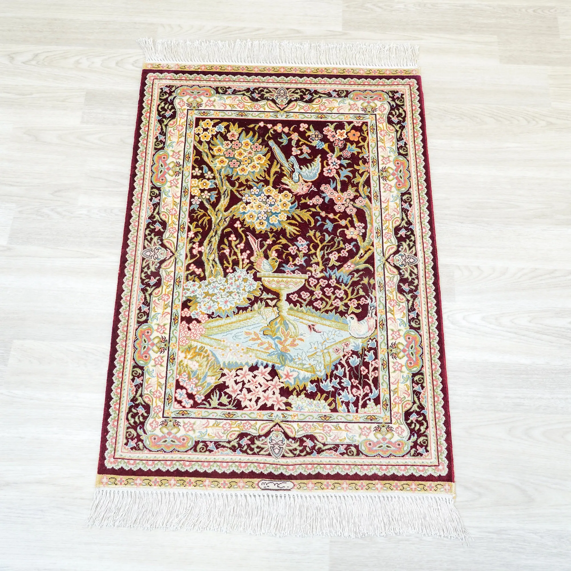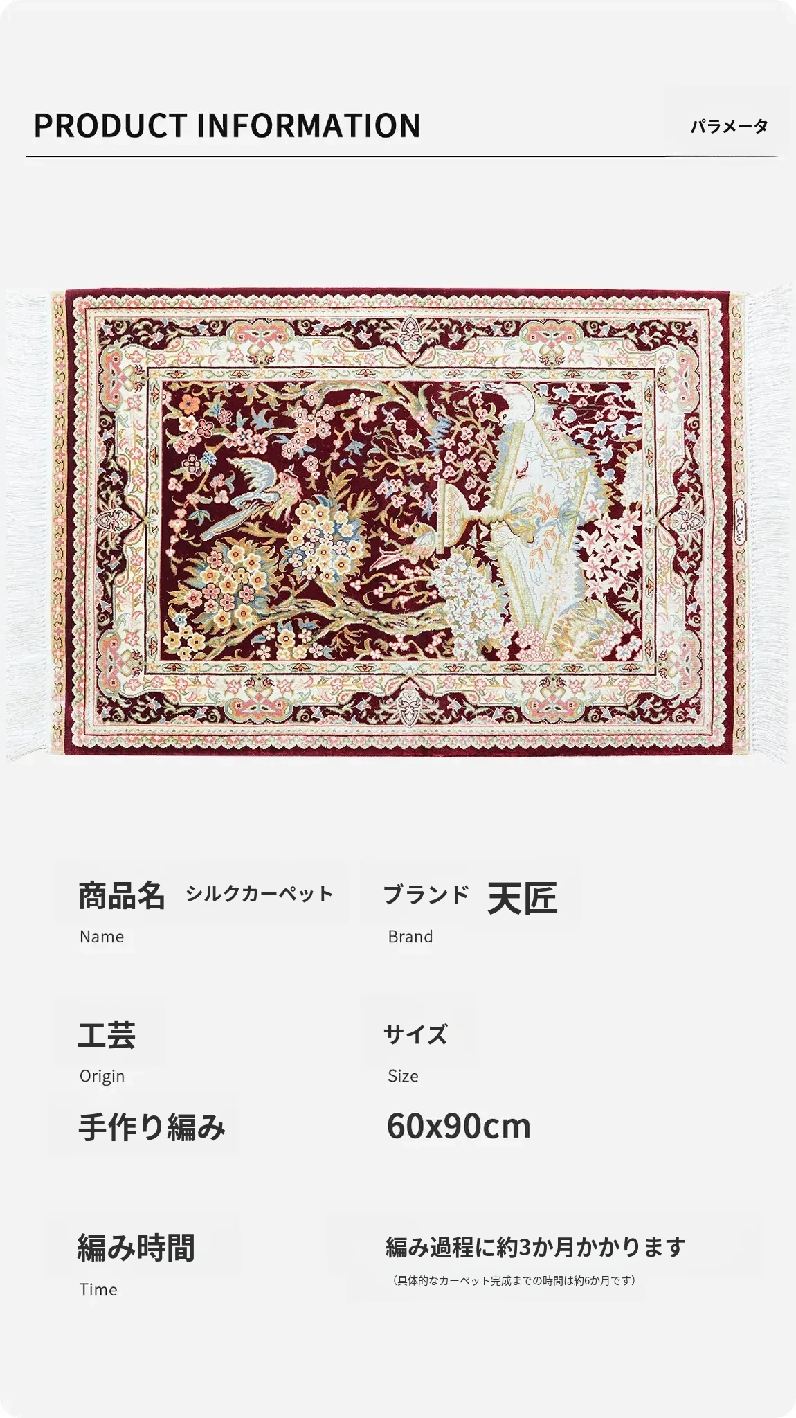 天匠手作シルクカーペット ペルシャ絨毯 エントランスカーペット リビングルーム 欧風ベッドサイドマット 60x90cm - 高級感溢れる手作りの真絲素材が魅力!あなたの空間に優雅さをプラスします。