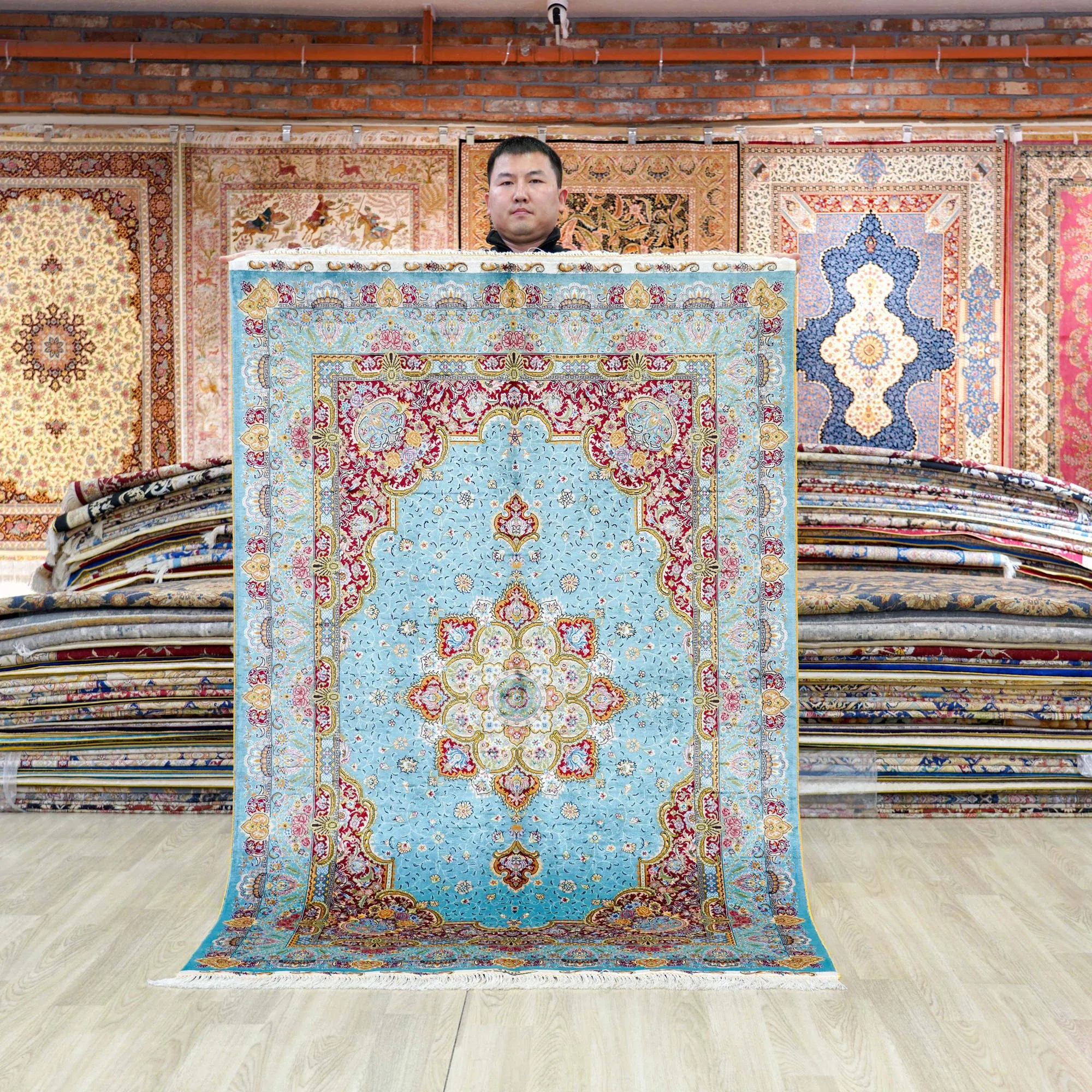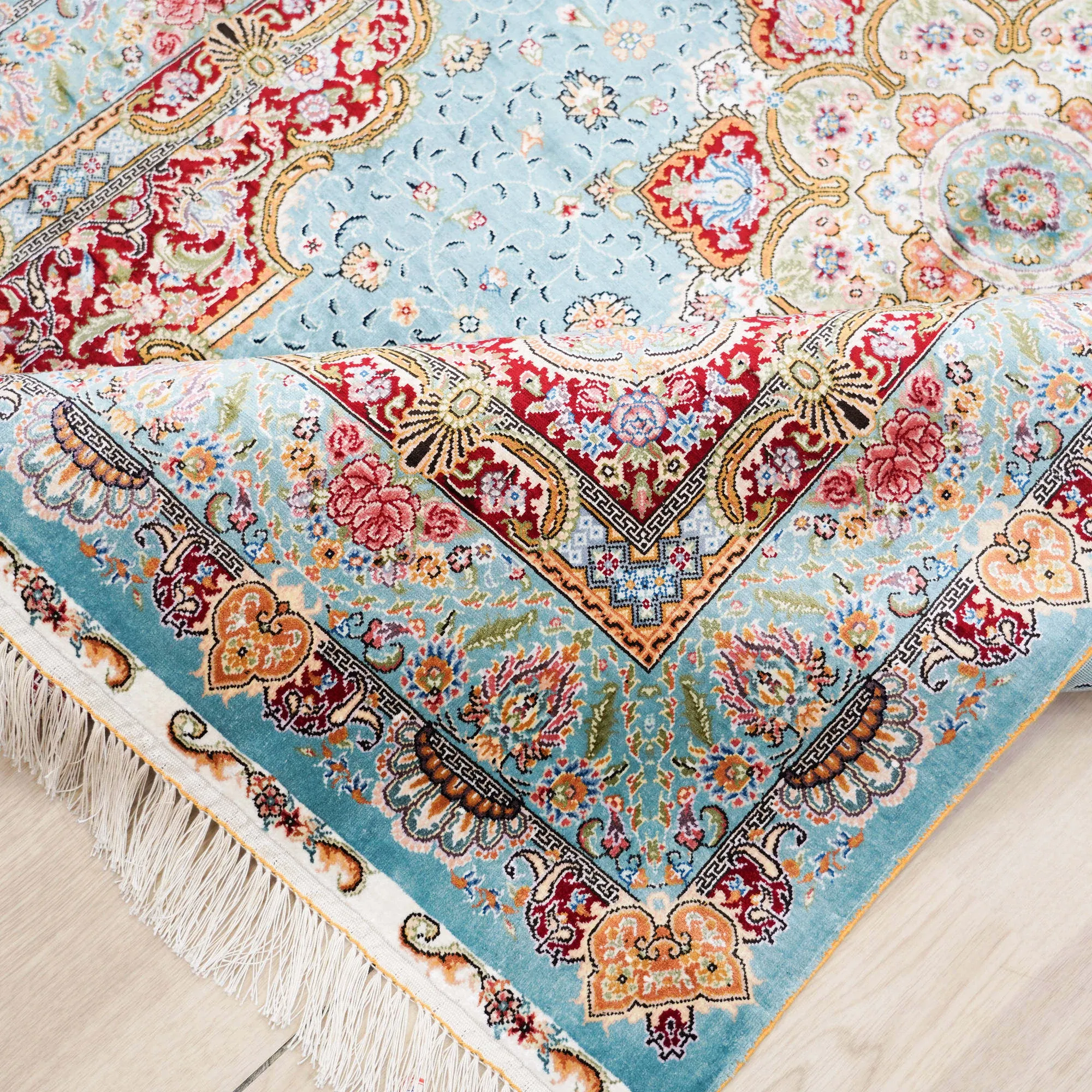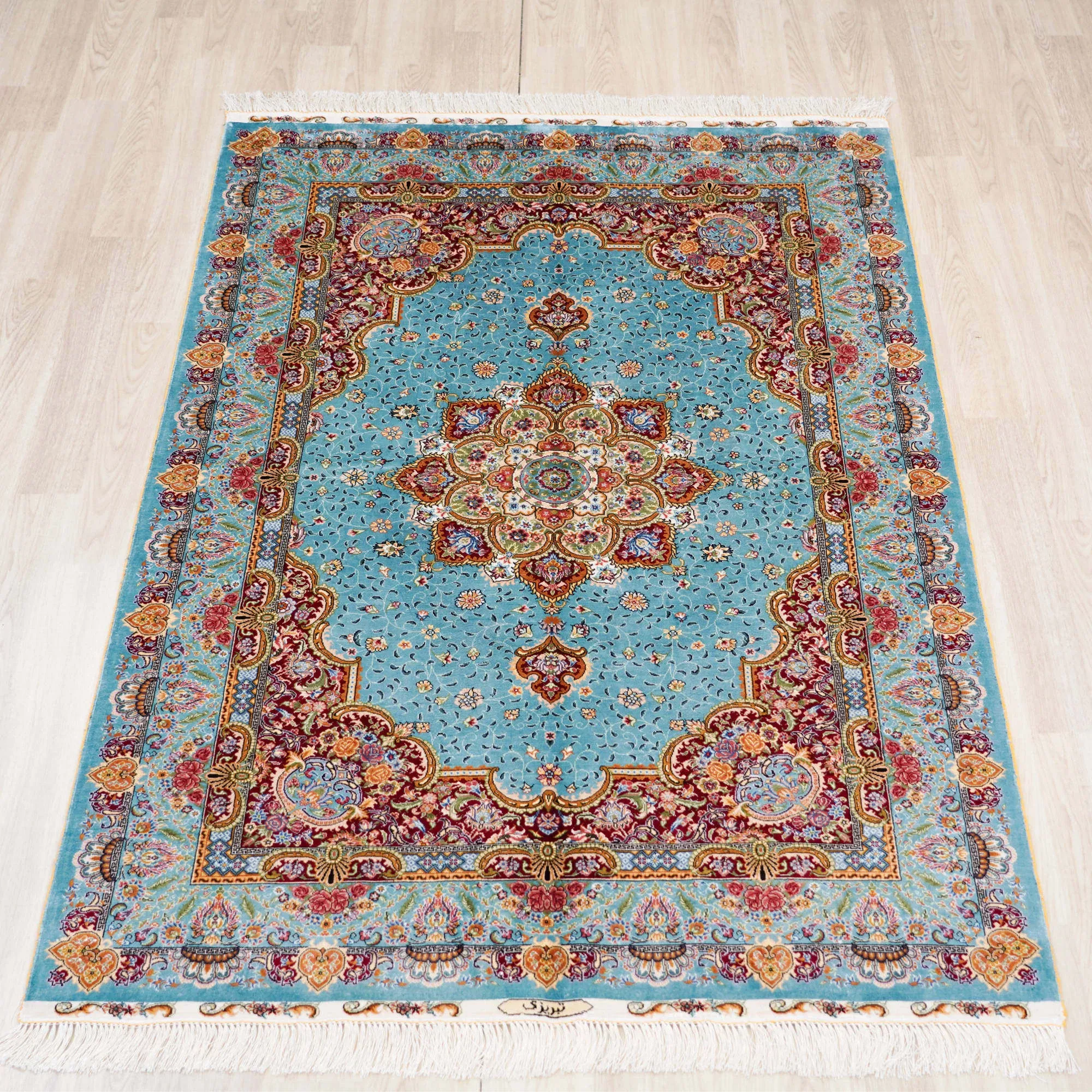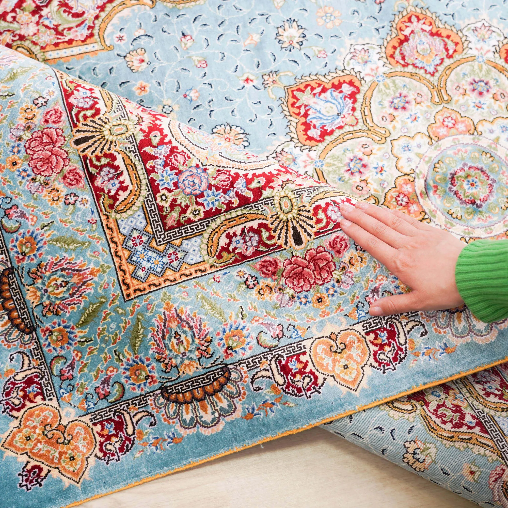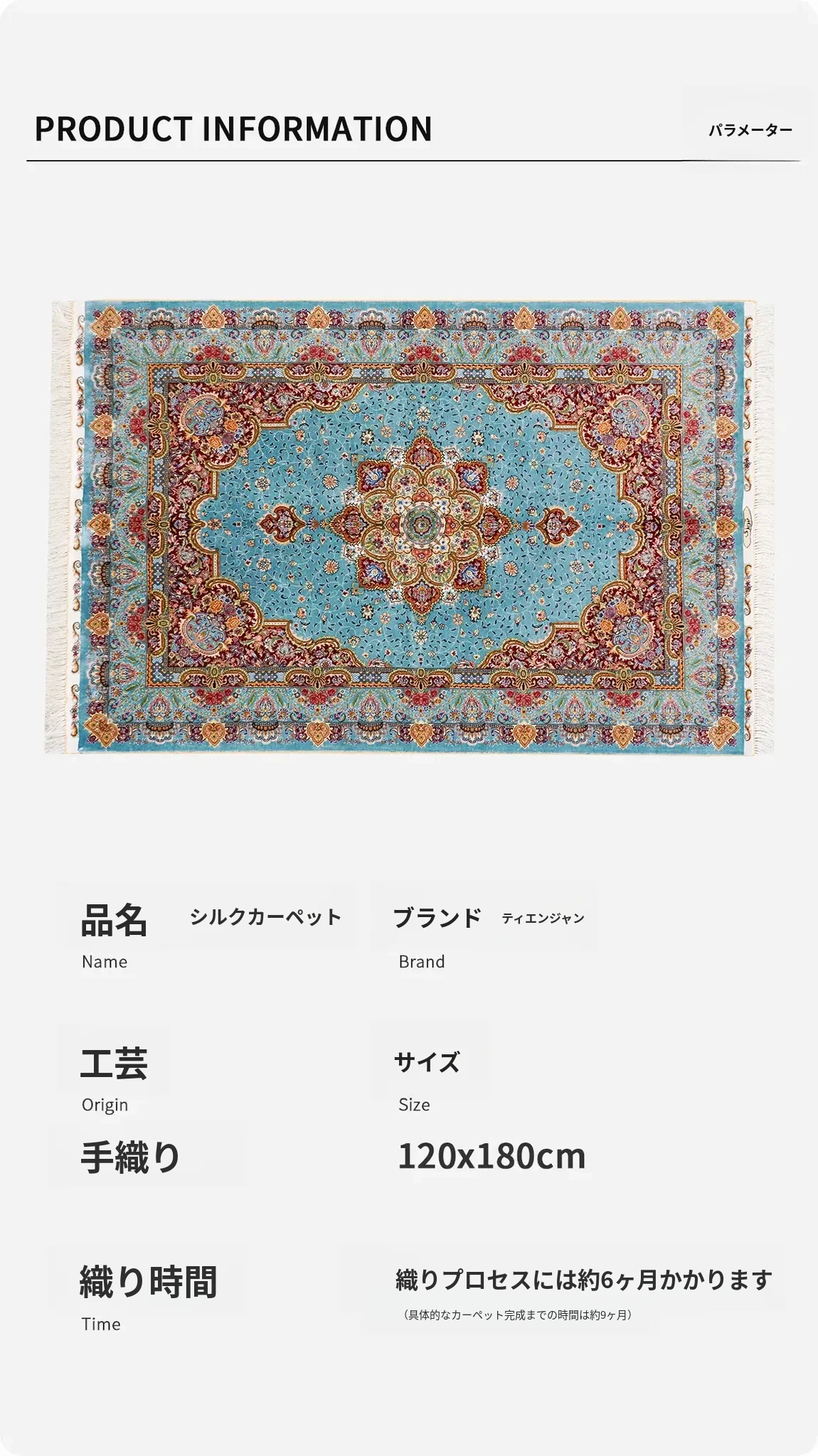 天匠の手作りシルク絨毯 - ペルシャ風の高級感溢れるリビングや子供部屋にぴったりの120x180cmサイズ!心地よい触り心地で、エレガントな空間を演出します。