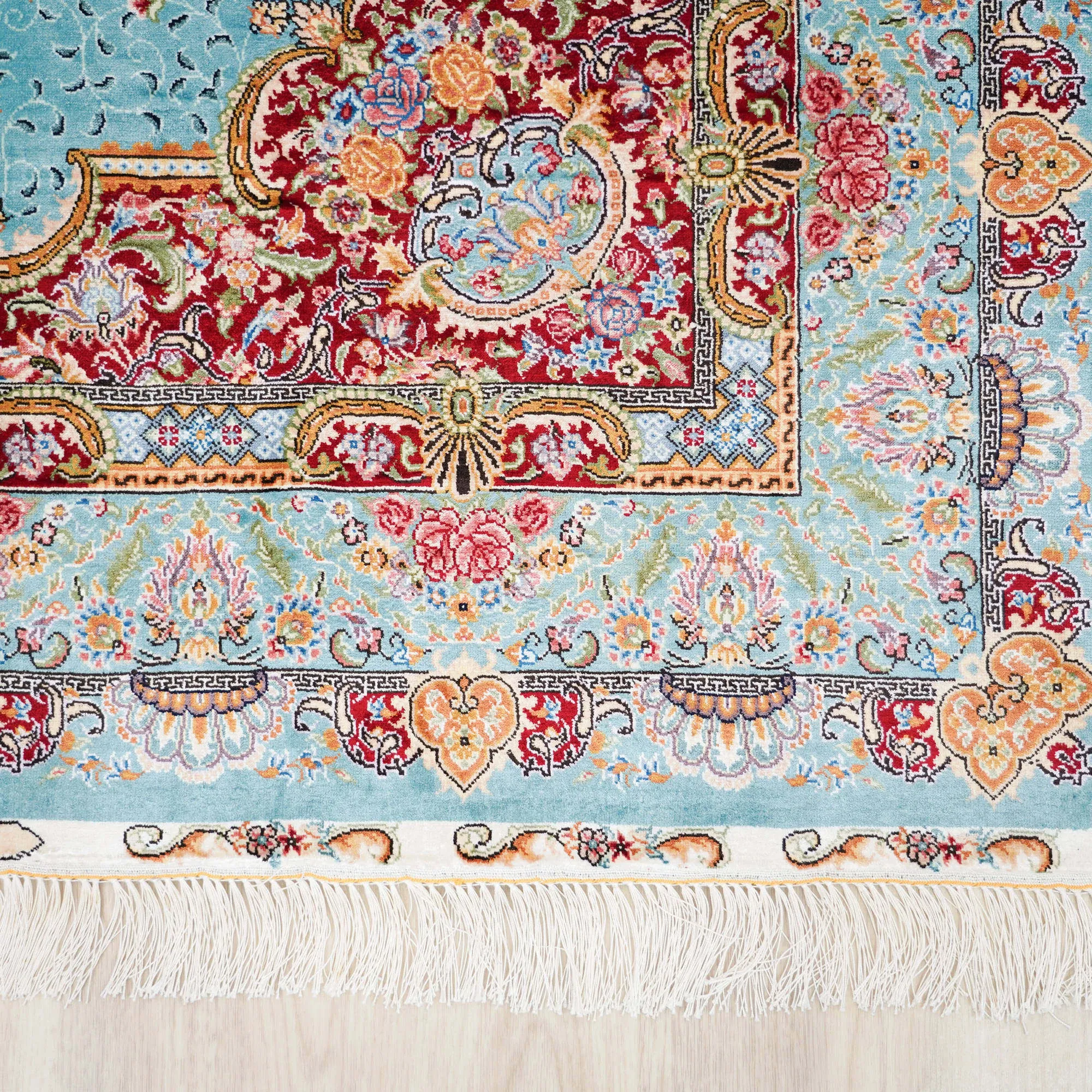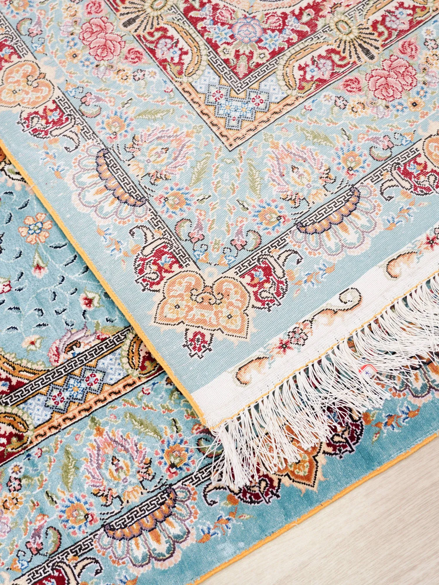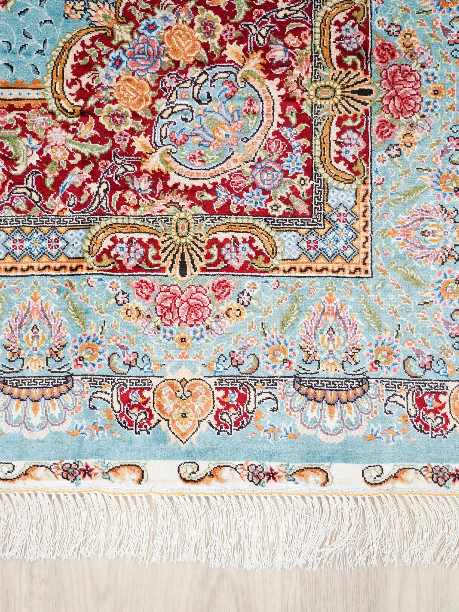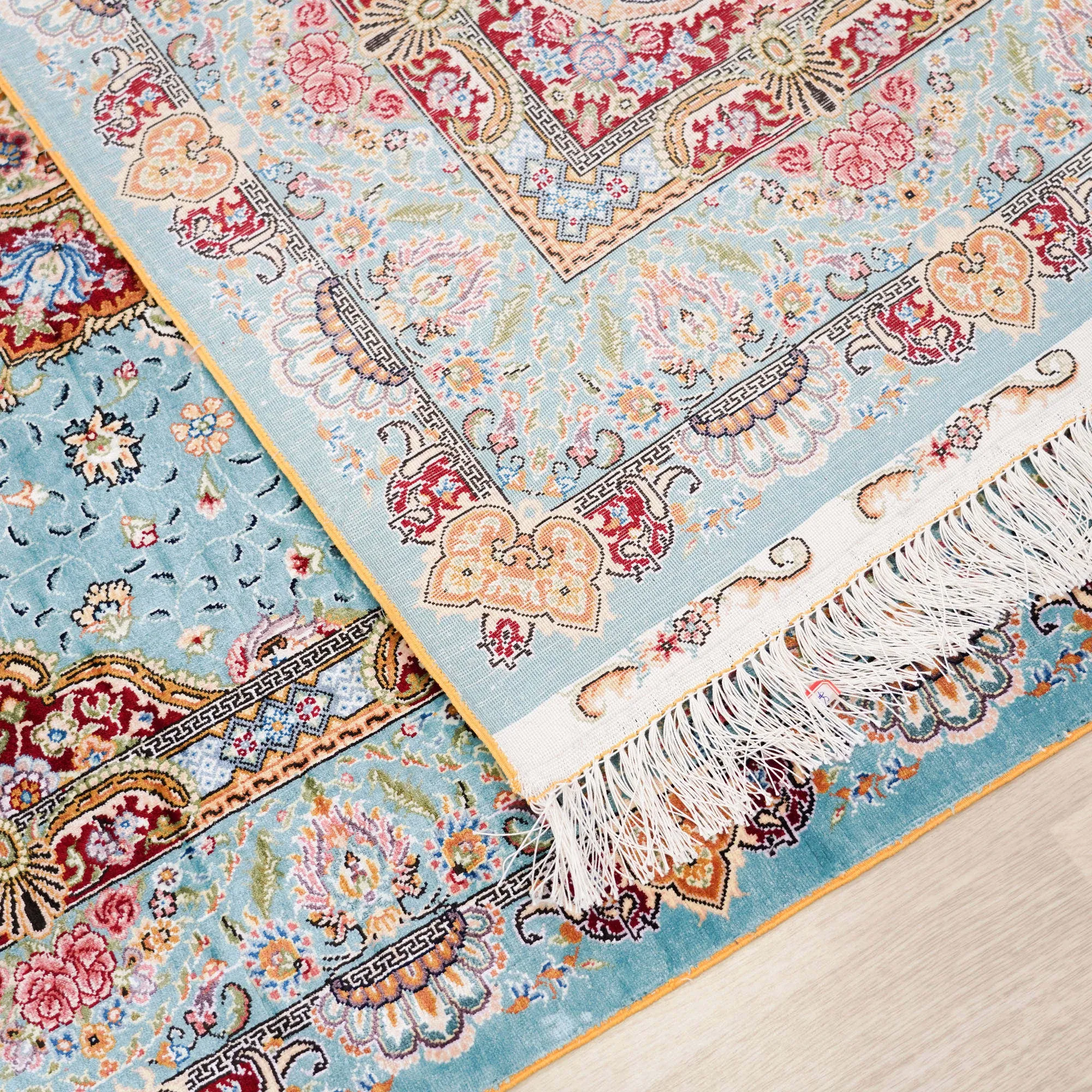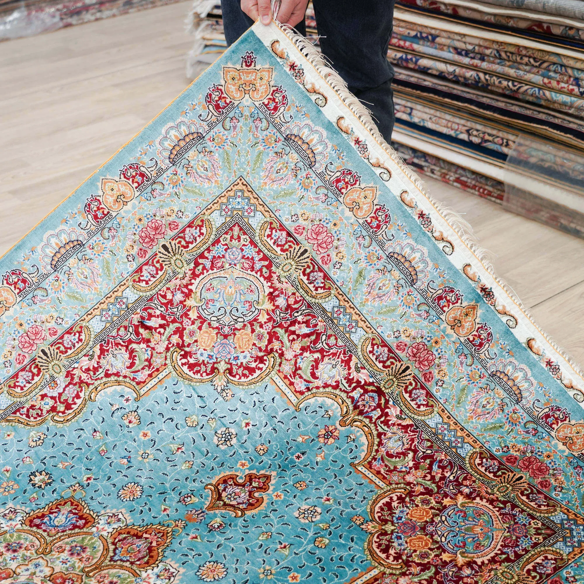 天匠の手作りシルク絨毯 - ペルシャ風の高級感溢れるリビングや子供部屋にぴったりの120x180cmサイズ!心地よい触り心地で、エレガントな空間を演出します。