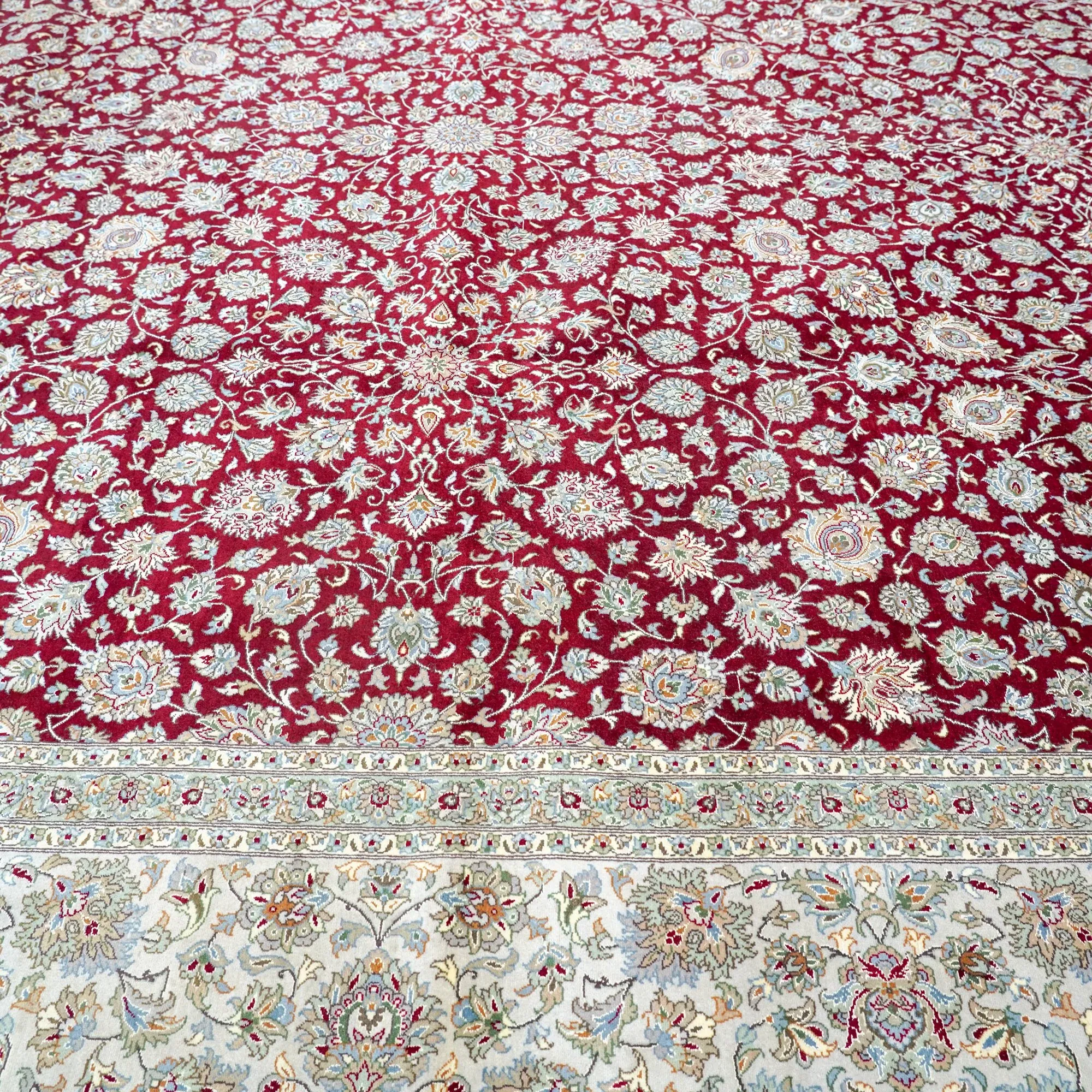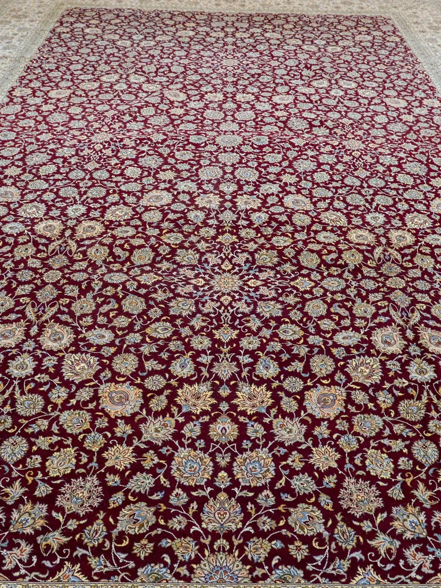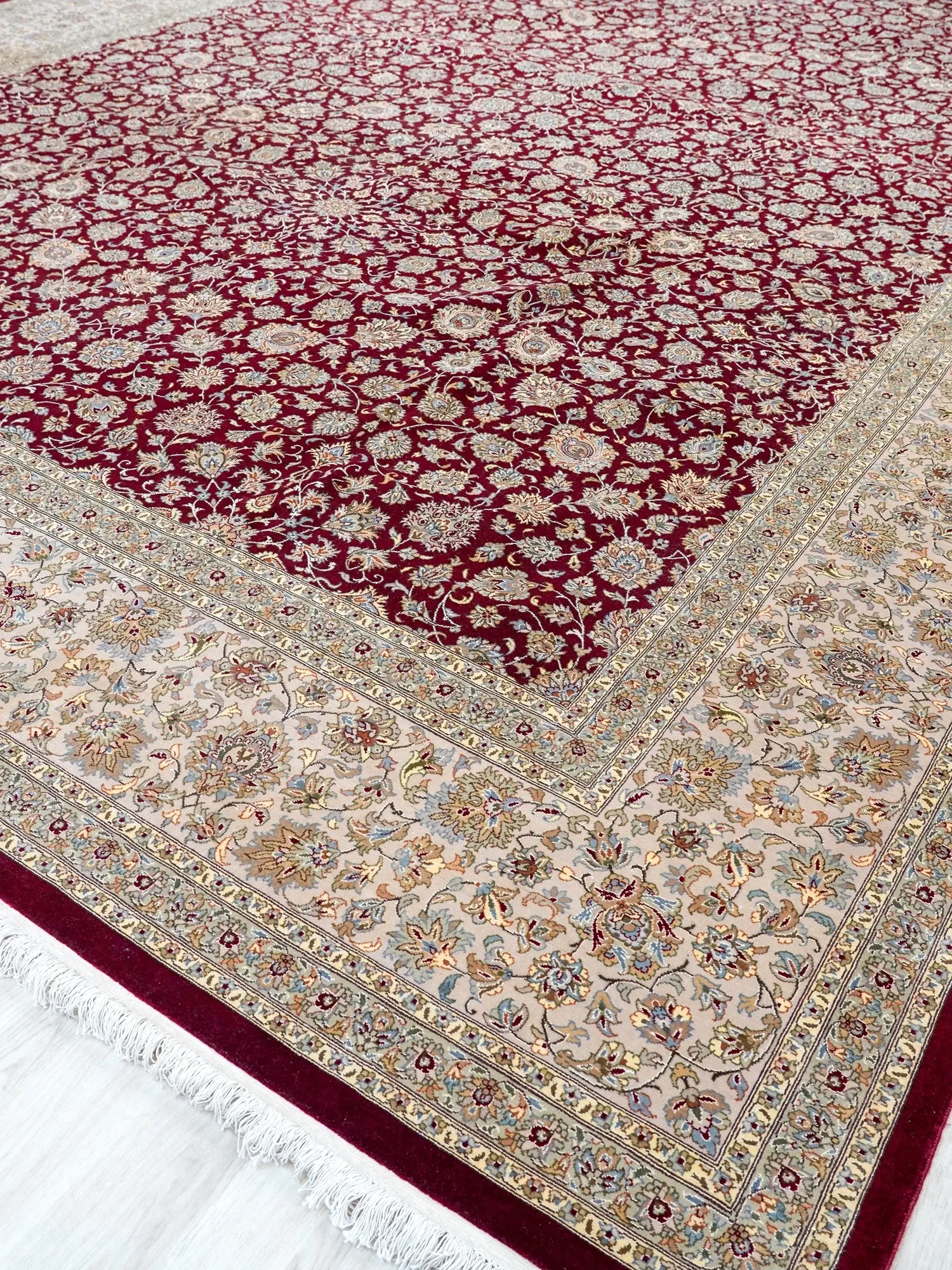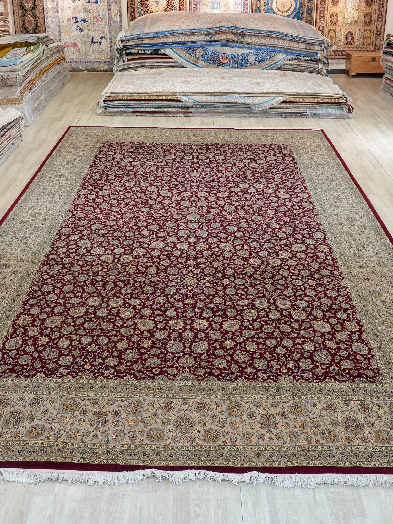 職人の手作りウールカーペット、ペルシャ風デザイン!広々とした366x549cmのサイズで、欧米スタイルのリビングにぴったり。おしゃれで温かみのある空間を演出します!