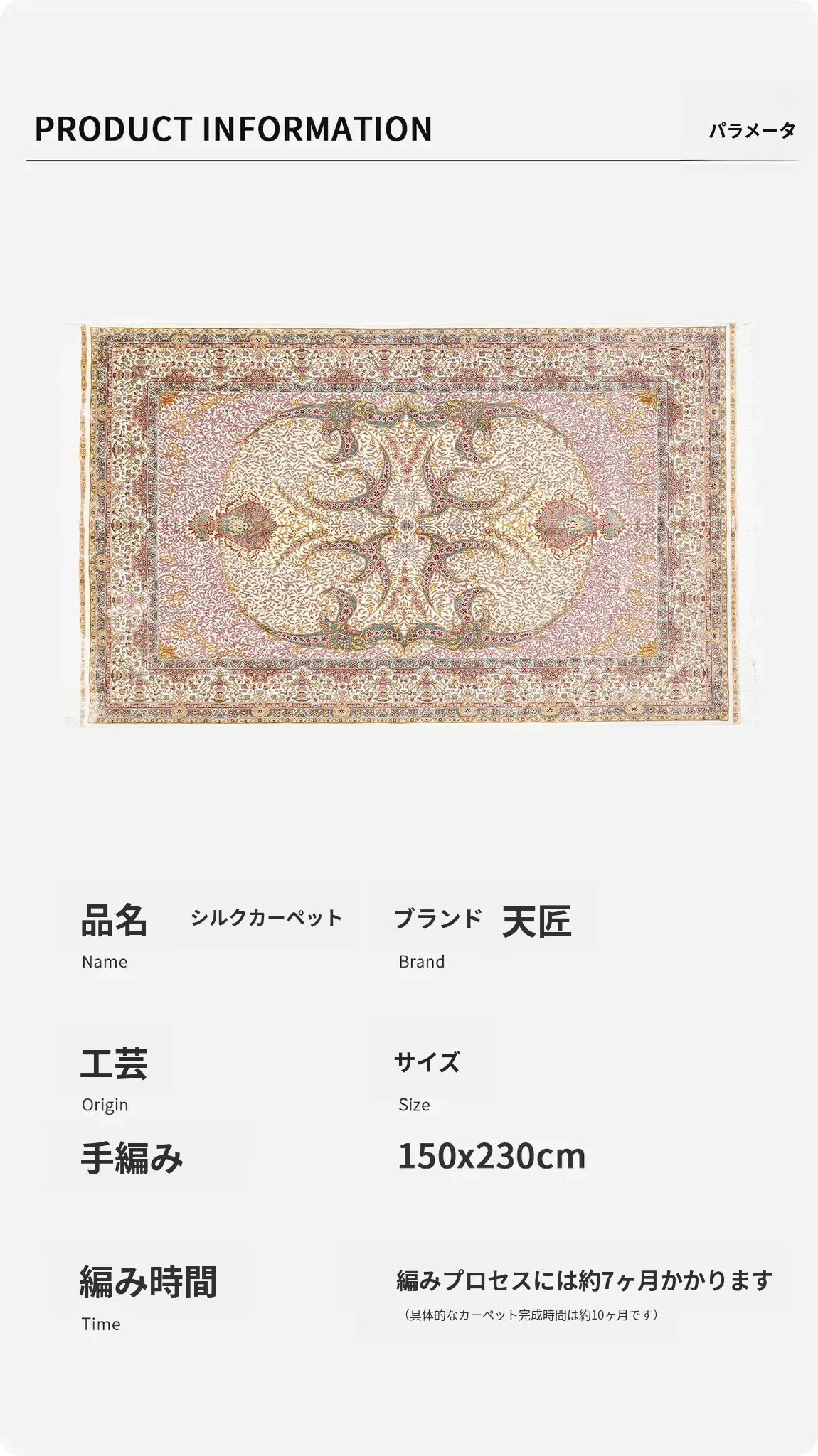 天匠の手作りシルクカーペット | アメリカン&ヨーロピアンスタイル | 寝室や書斎に最適 | ノンアレルギーのグルーなし | 150x230cmの贅沢サイズで快適な空間を演出!