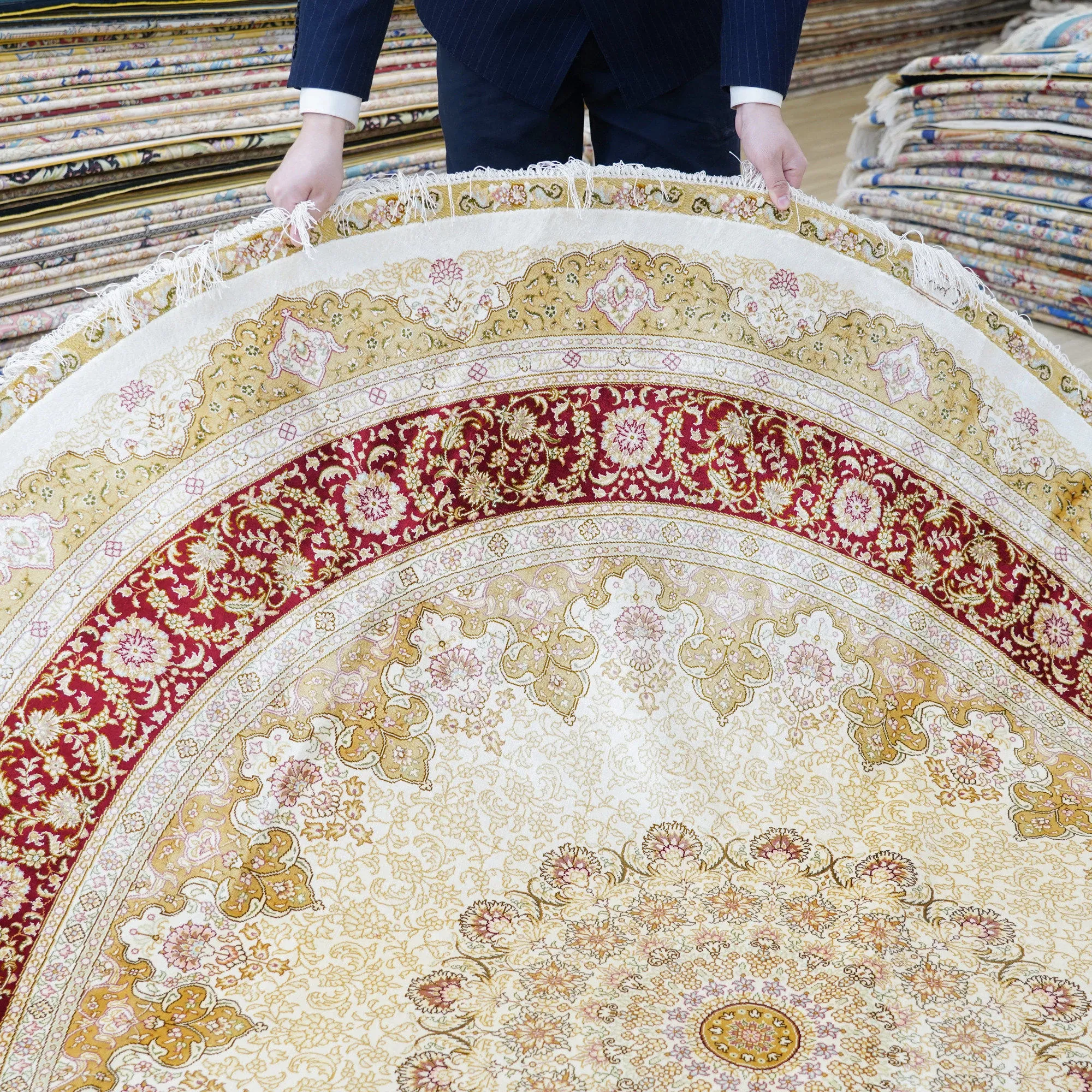 天匠の手作り本絹カーペット - ピアノや書斎に最適!高級で耐汚れ、210x210cmの贅沢な空間を演出します。