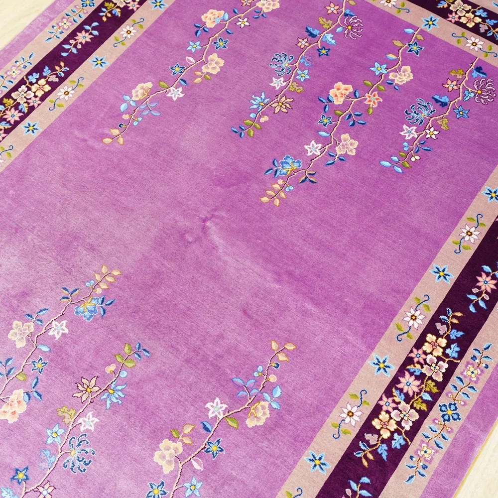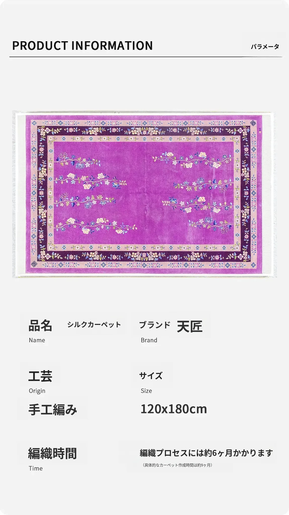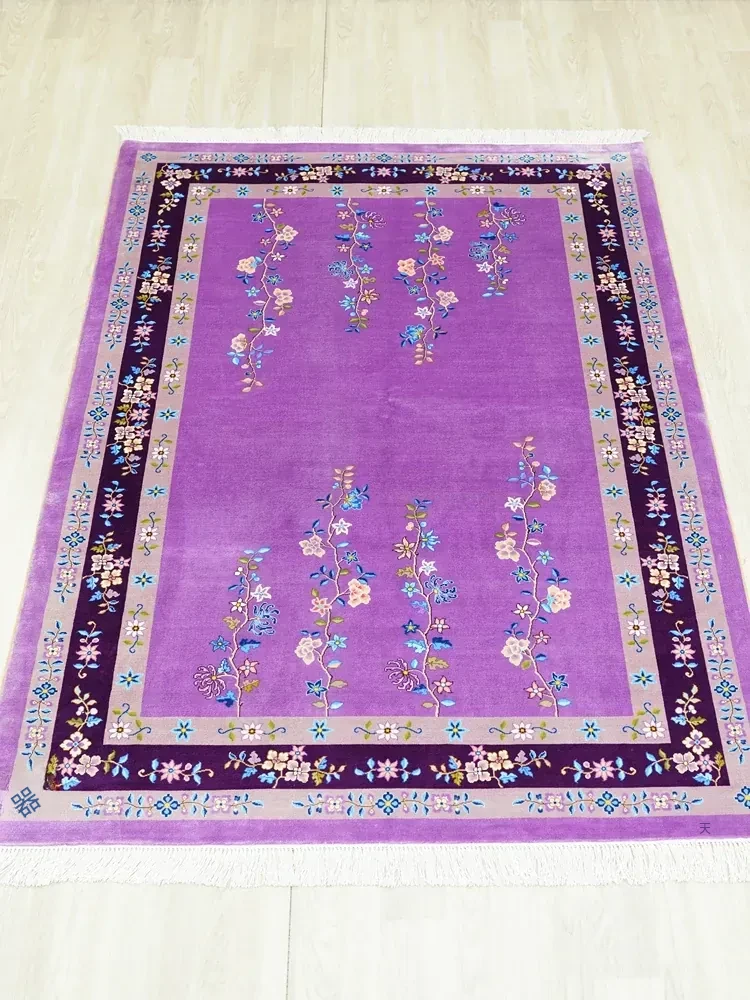 匠心手作の本真綿シルクラグ - 紫色の華やかなデザインで、リビングや寝室、書斎に最適!中国風の美しい120x180cmサイズ、上質な触り心地で空間を彩ります。
