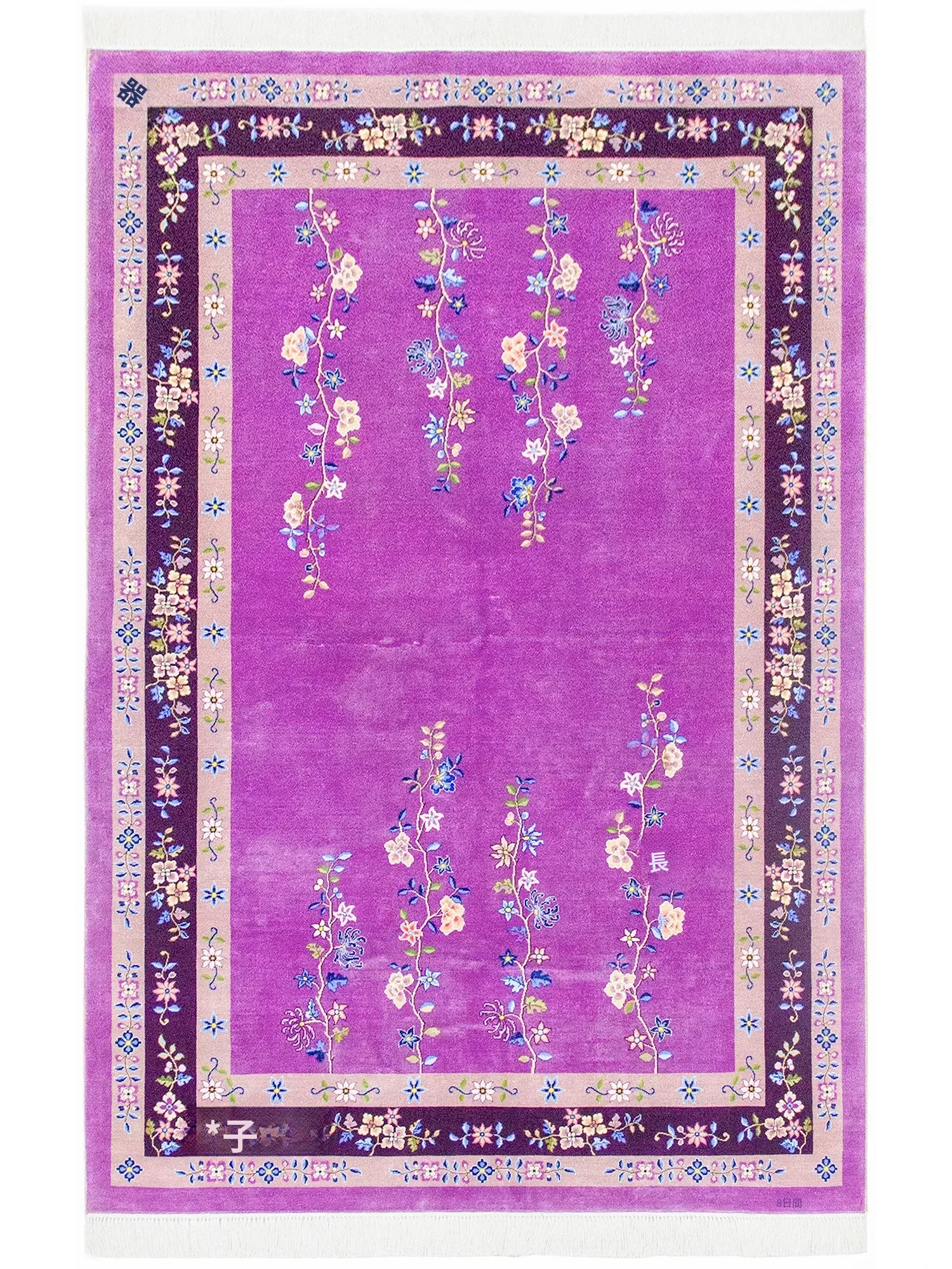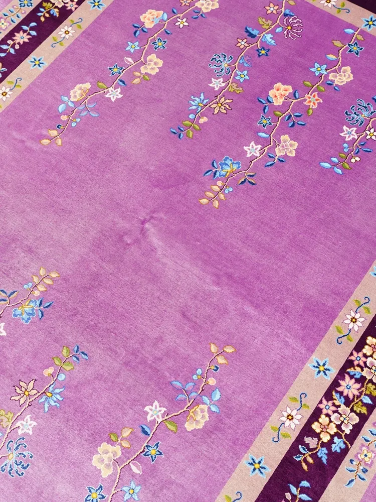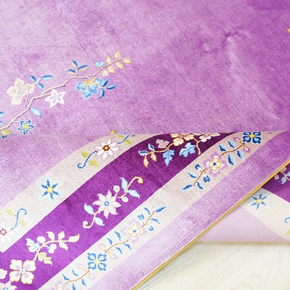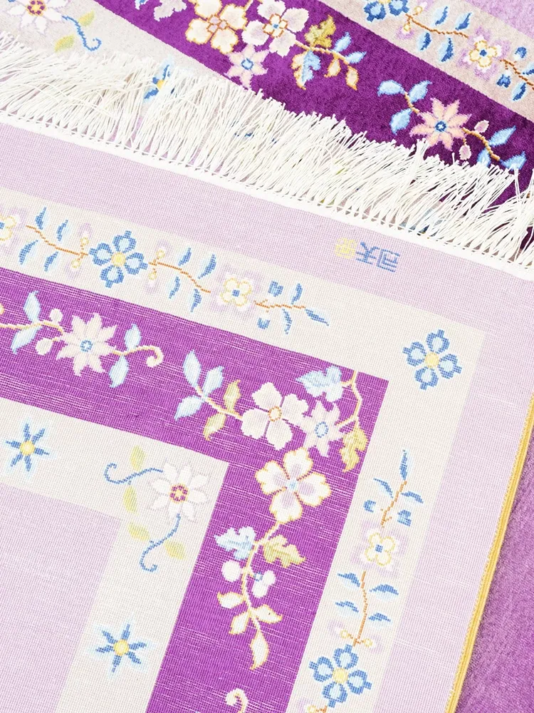 匠心手作の本真綿シルクラグ - 紫色の華やかなデザインで、リビングや寝室、書斎に最適!中国風の美しい120x180cmサイズ、上質な触り心地で空間を彩ります。