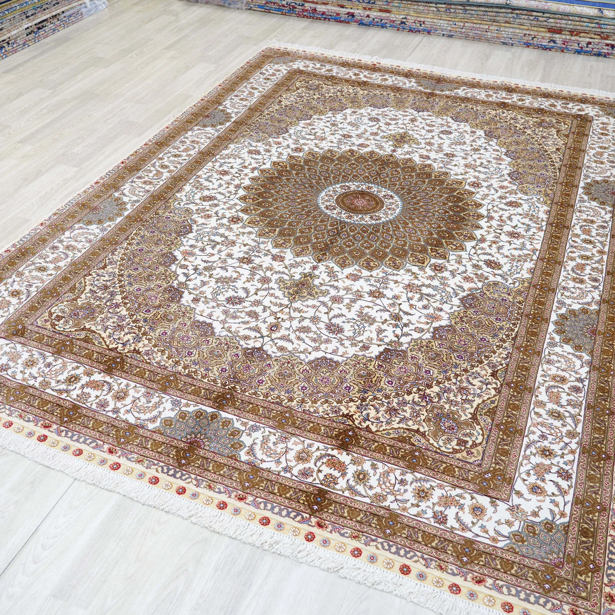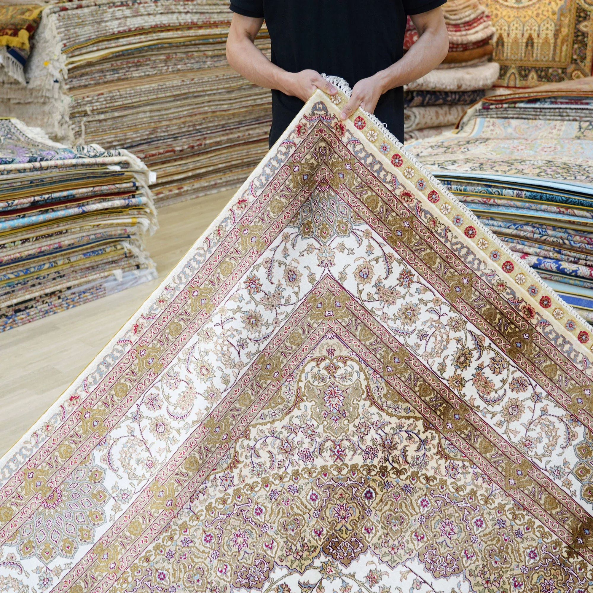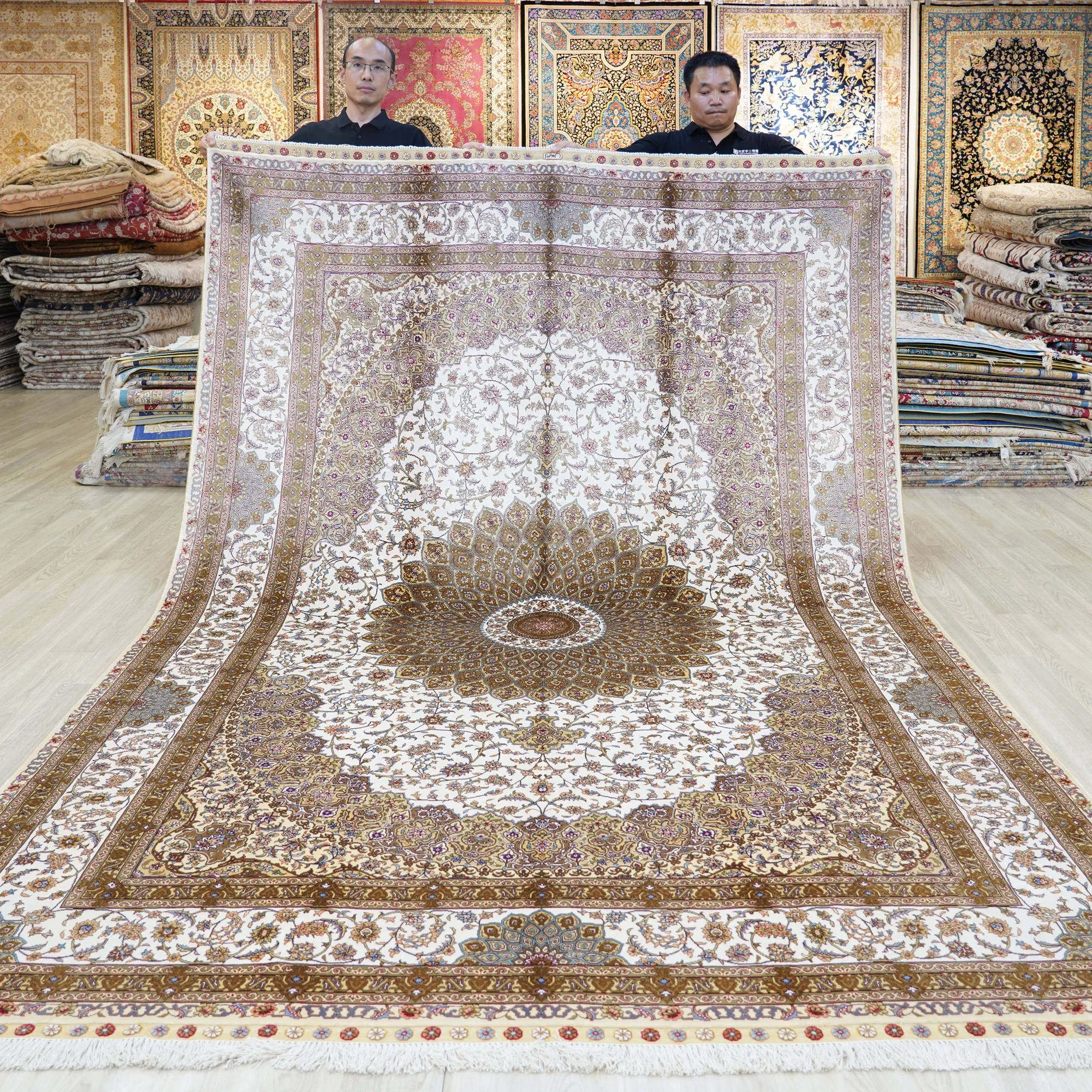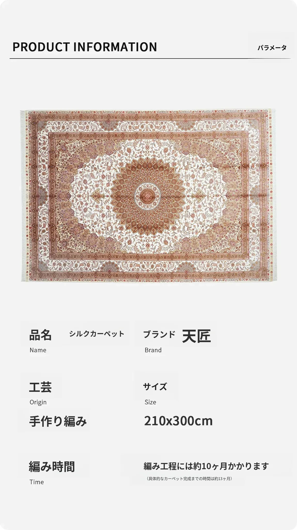 天匠手作 本格シルクカーペット 無地 結び編みデザイン ヴィラのリビングや寝室にぴったり 210x300cmの優雅なサイズ
