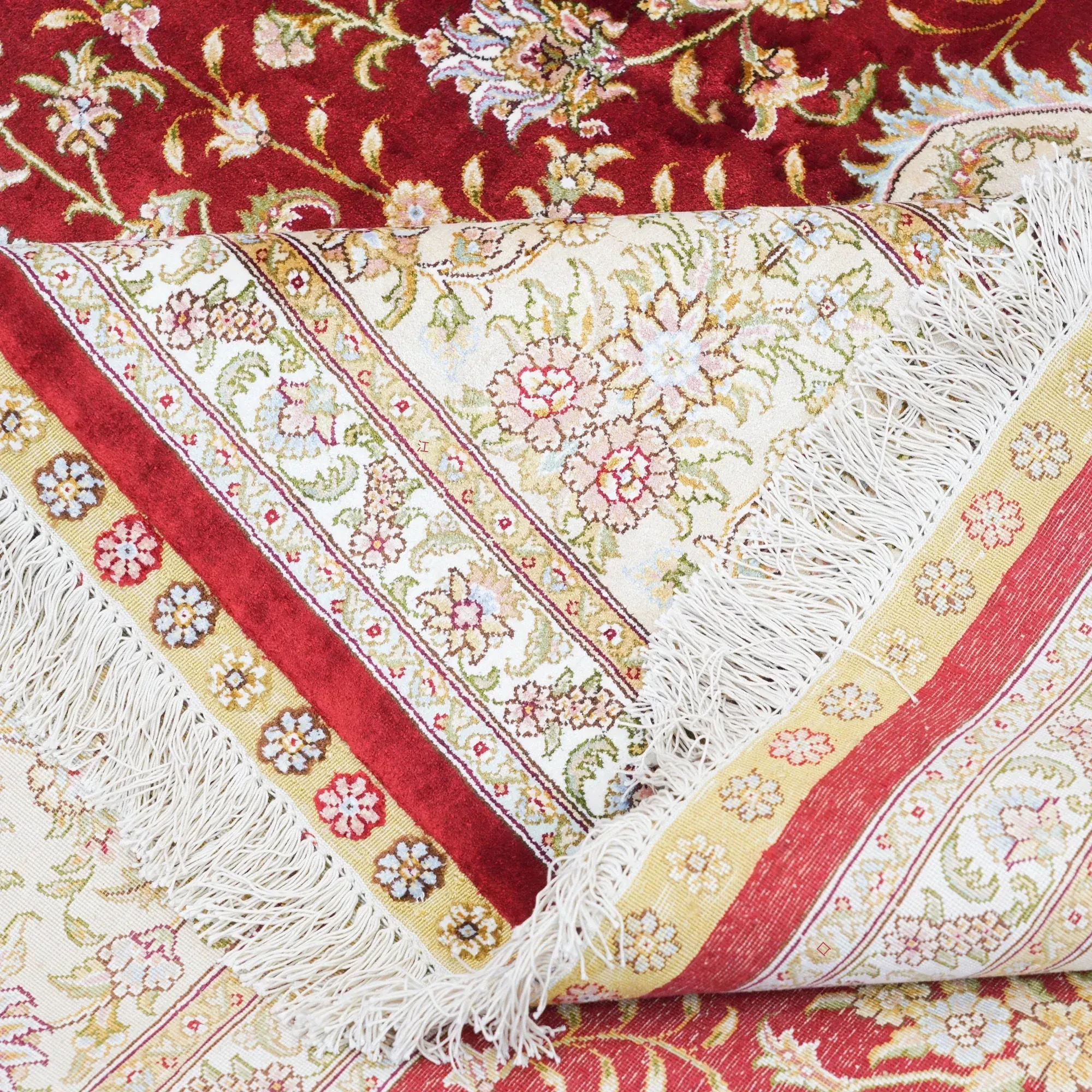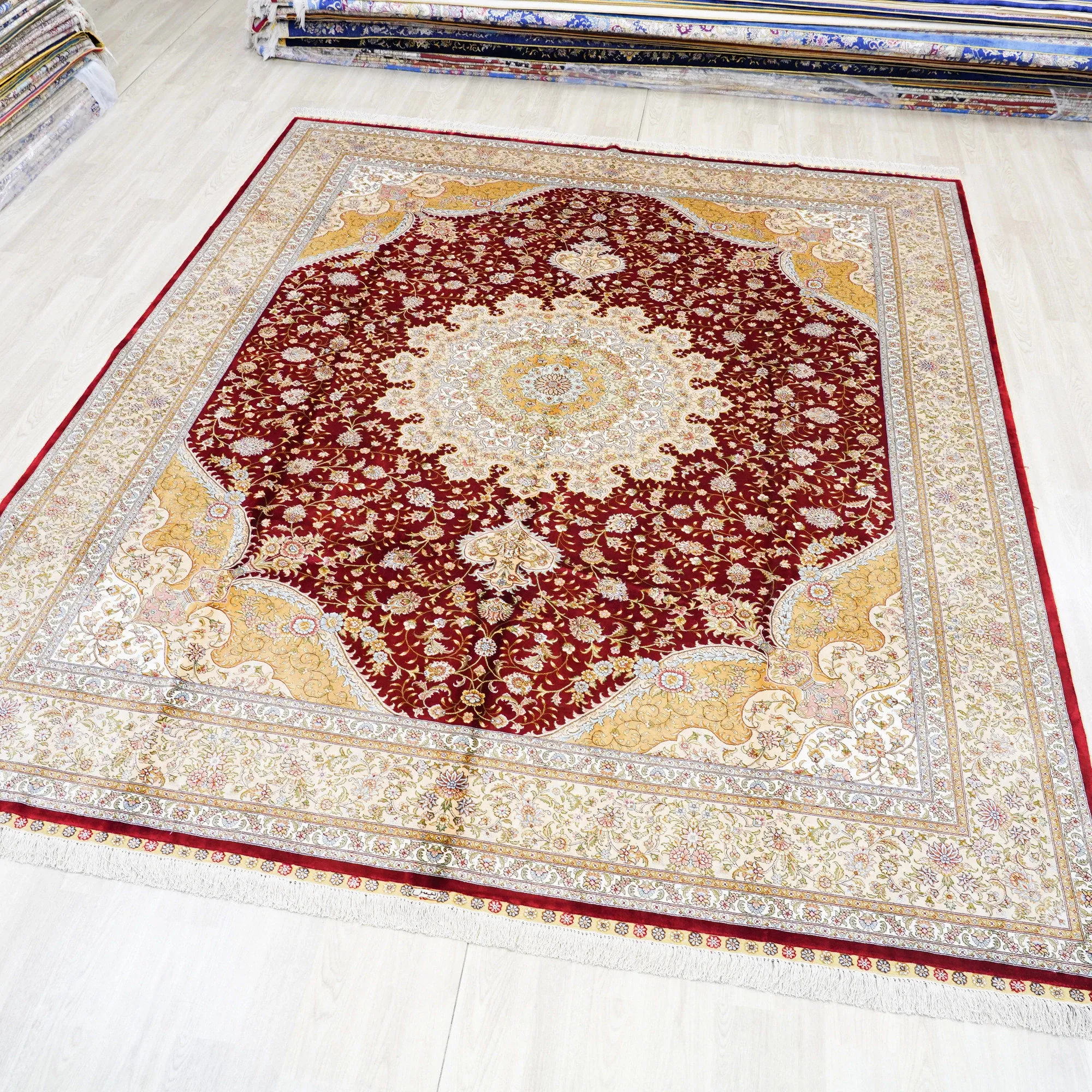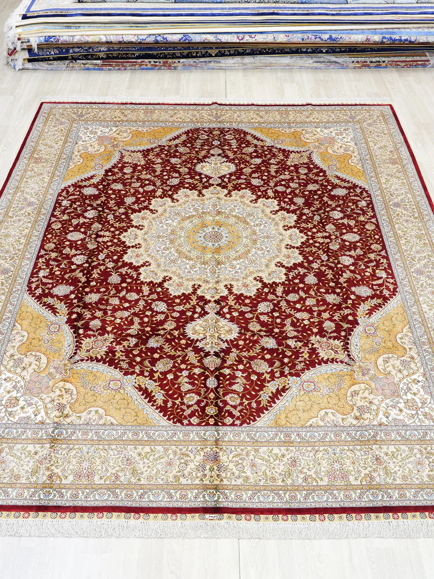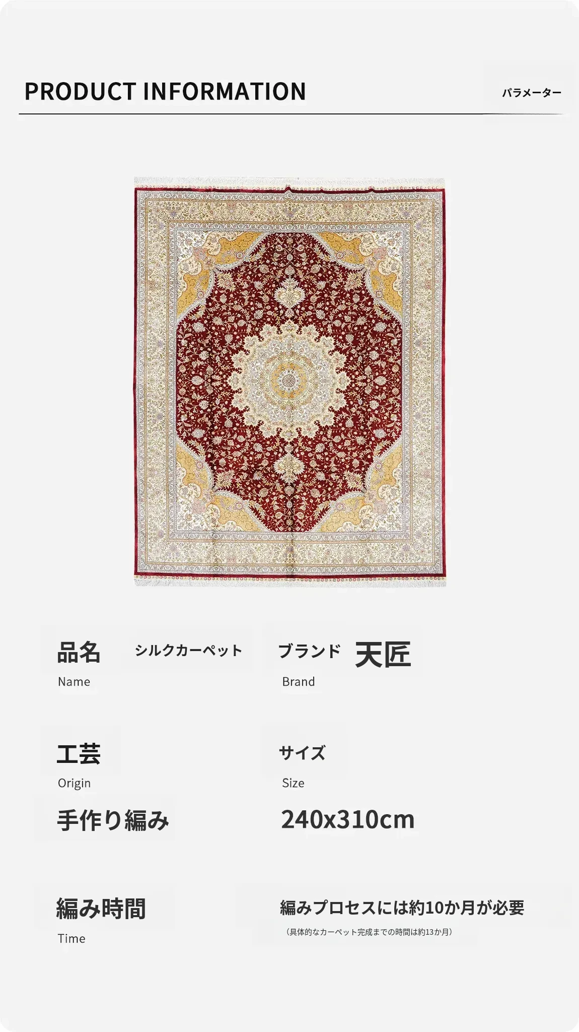 天匠手作の本絹カーペット - 鮮やかな赤色、リビングや寝室にぴったりのペルシャ絨毯。接着剤不使用で安心、240x310cmの広々サイズでお部屋を華やかに演出!