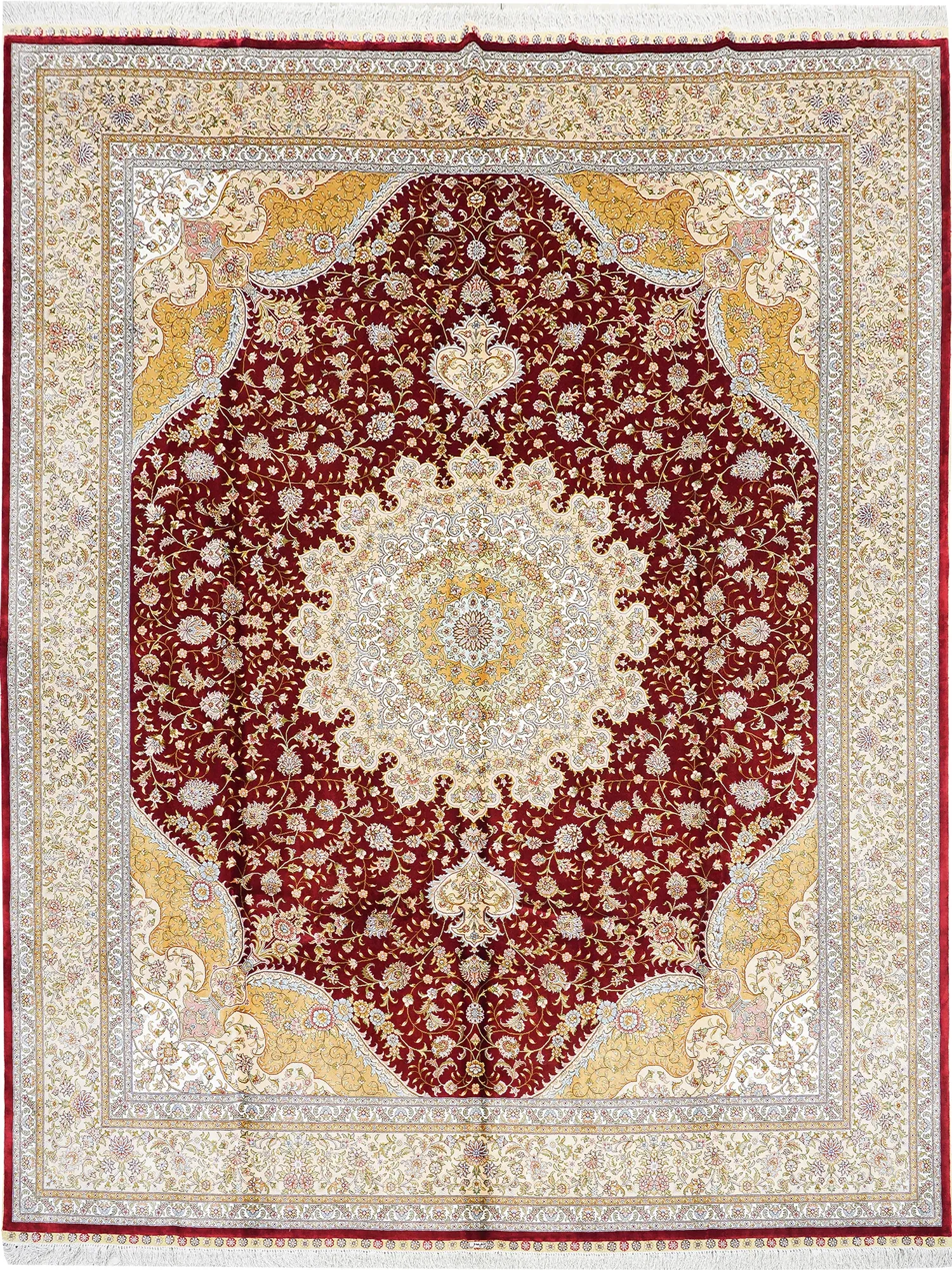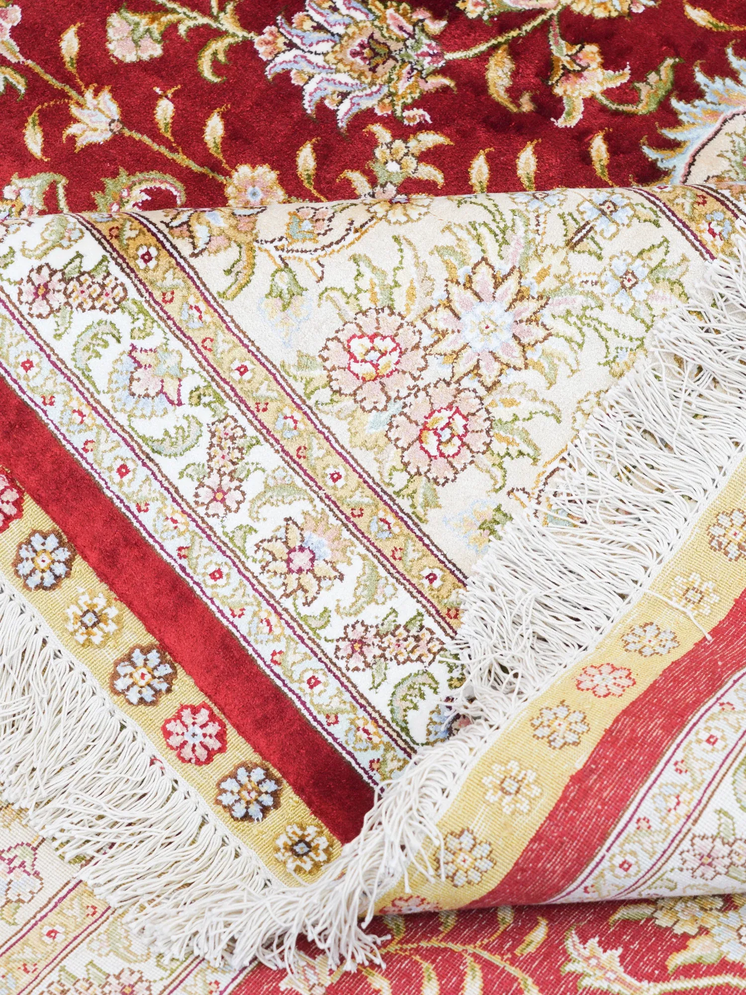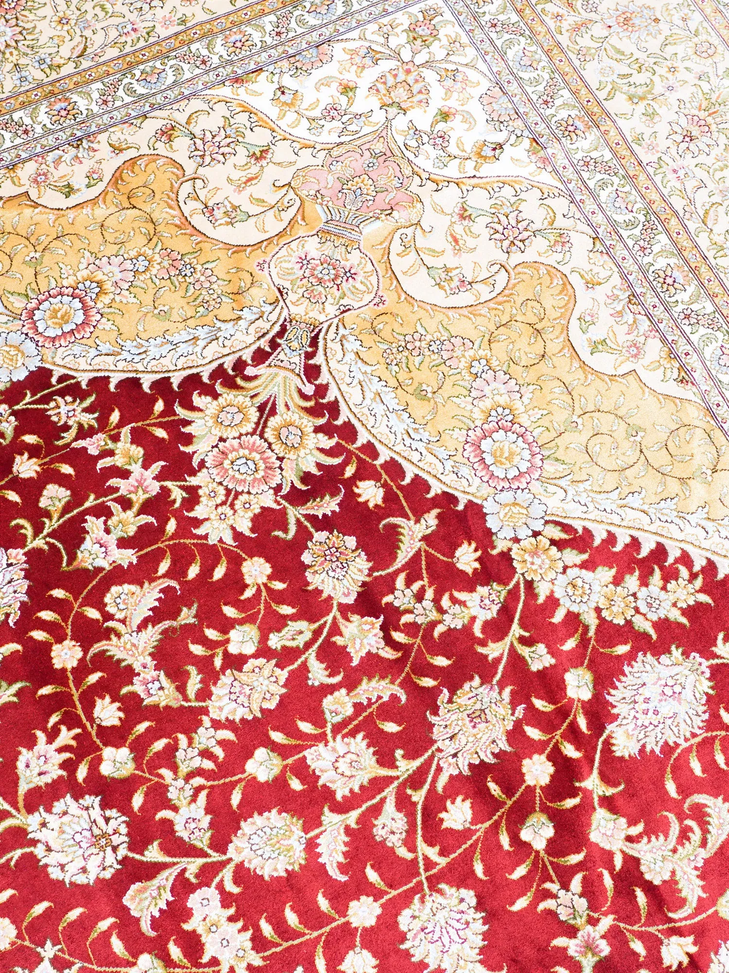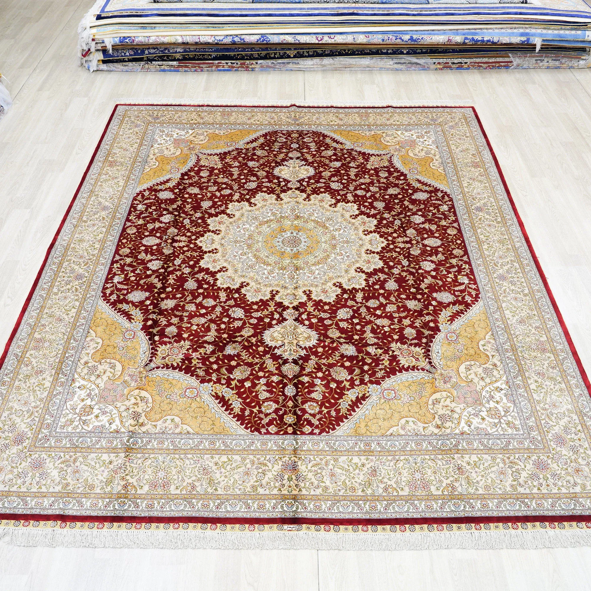天匠手作の本絹カーペット - 鮮やかな赤色、リビングや寝室にぴったりのペルシャ絨毯。接着剤不使用で安心、240x310cmの広々サイズでお部屋を華やかに演出!
