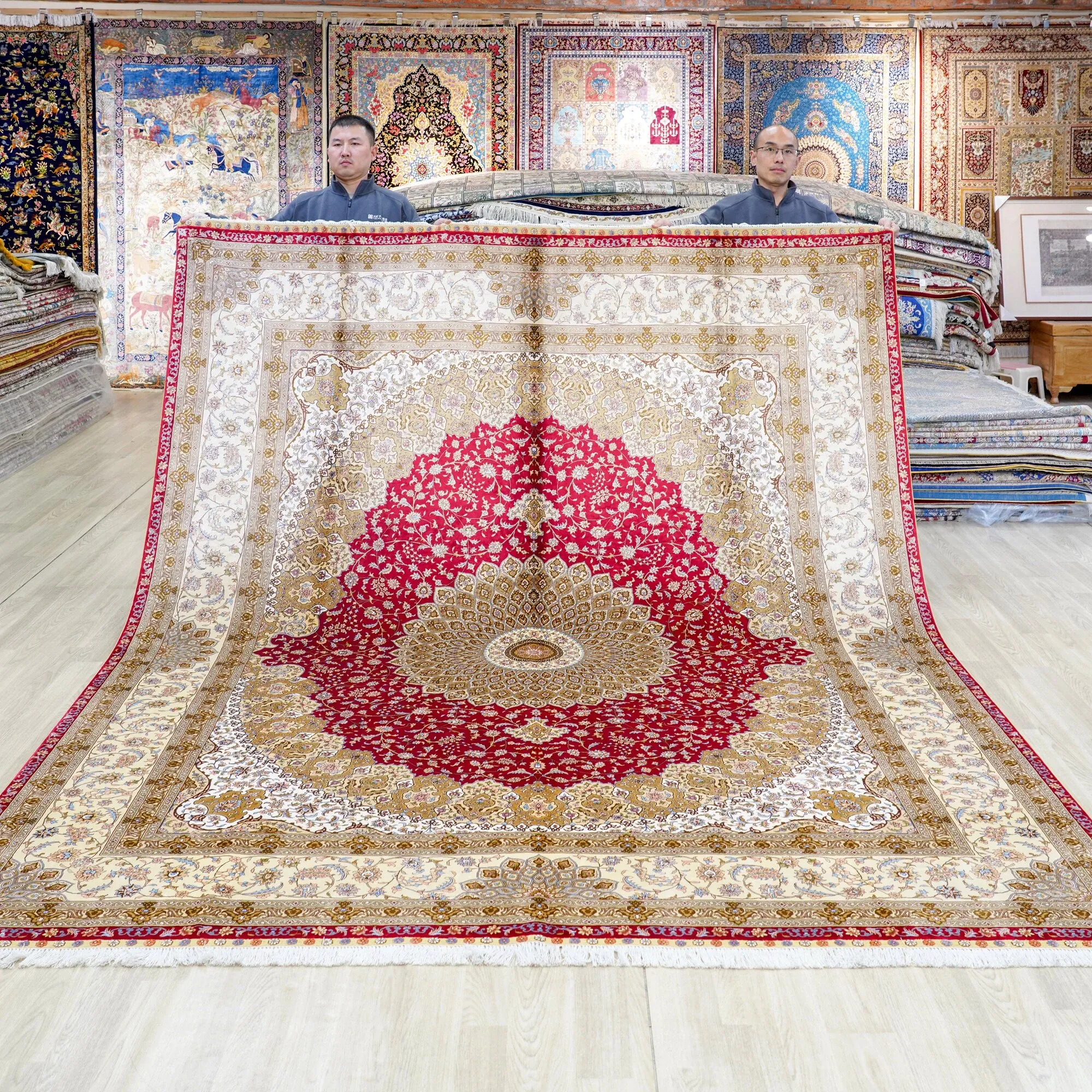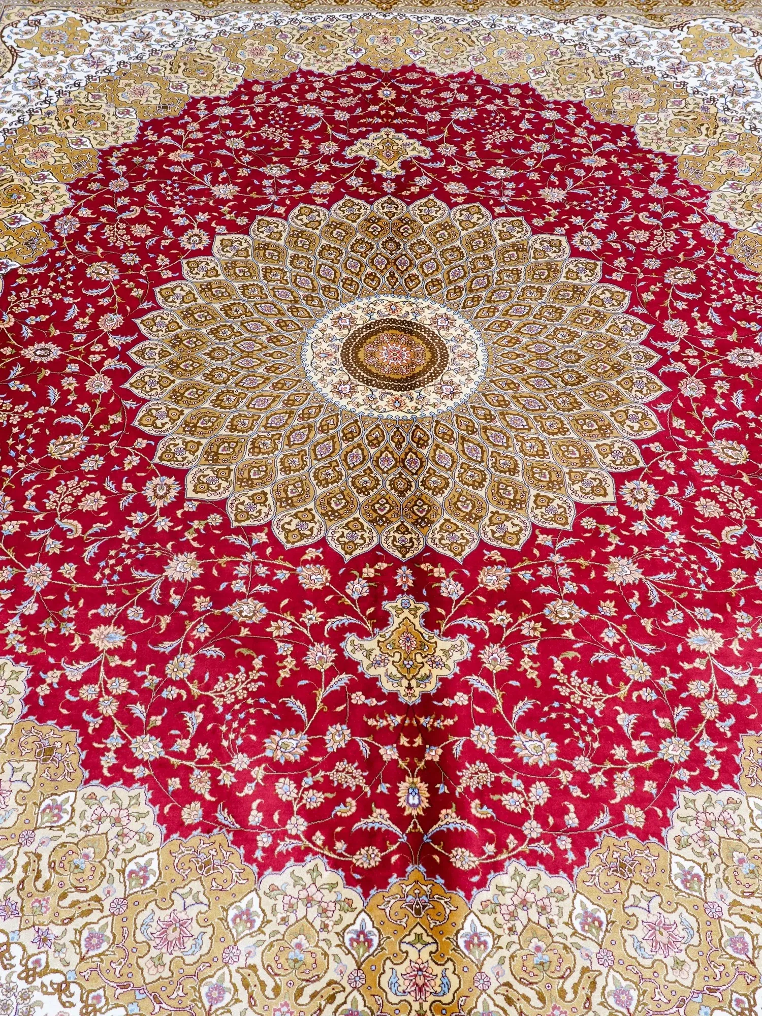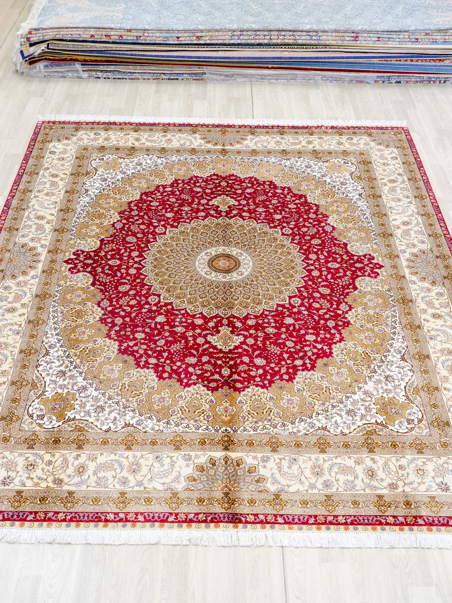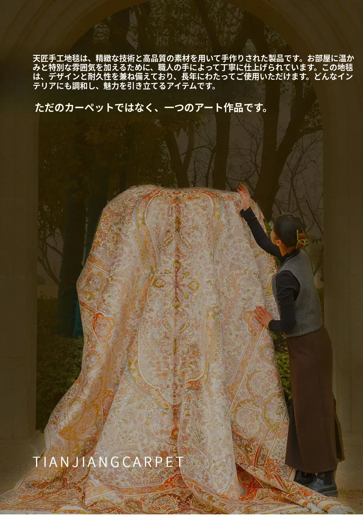 天匠の手作りシルクカーペット - 魅力的な赤色が別荘のリビング、寝室、書斎にぴったり!純手編みで240x310cmの贅沢なサイズ。高級感あふれる空間を演出します。