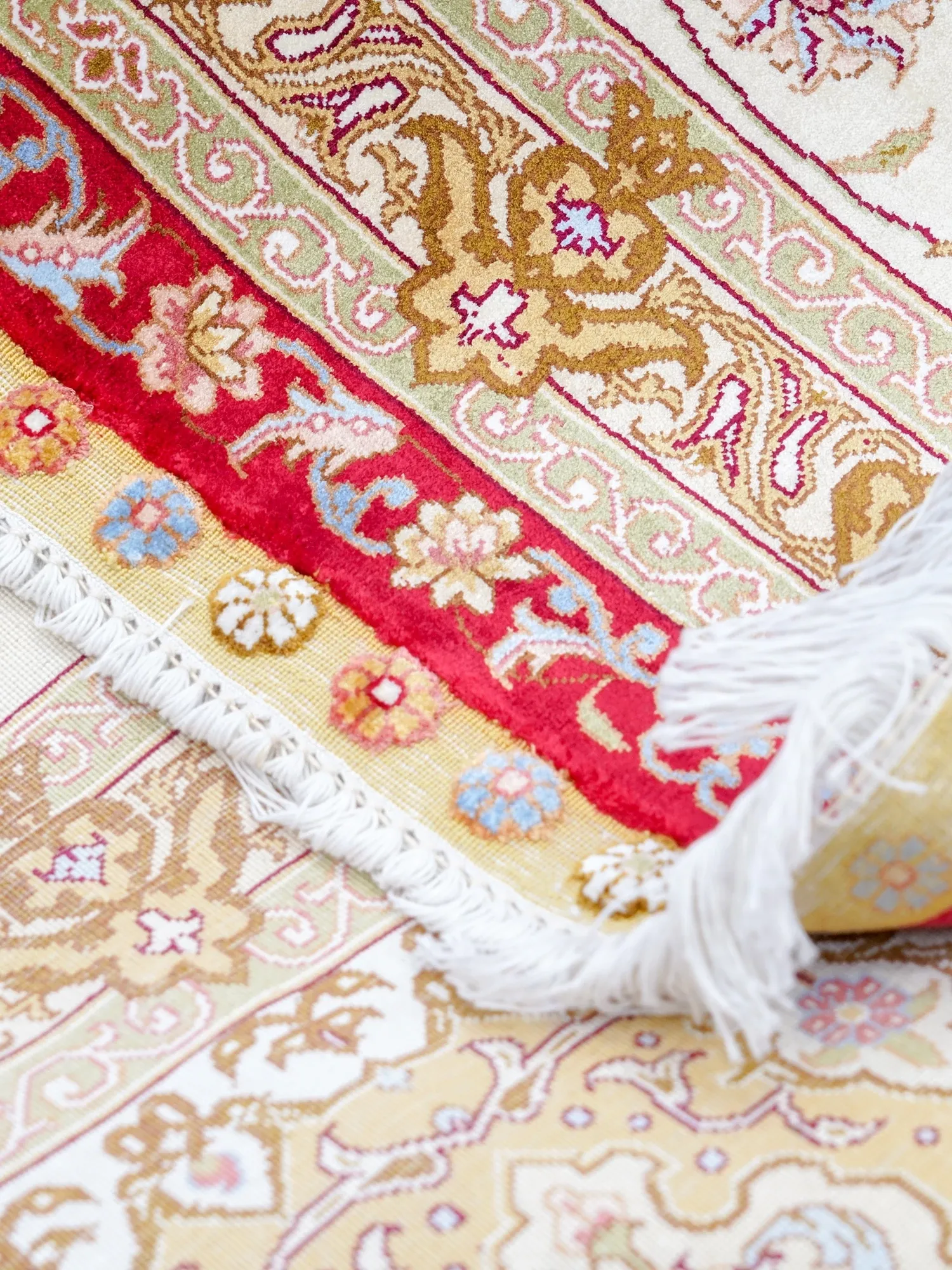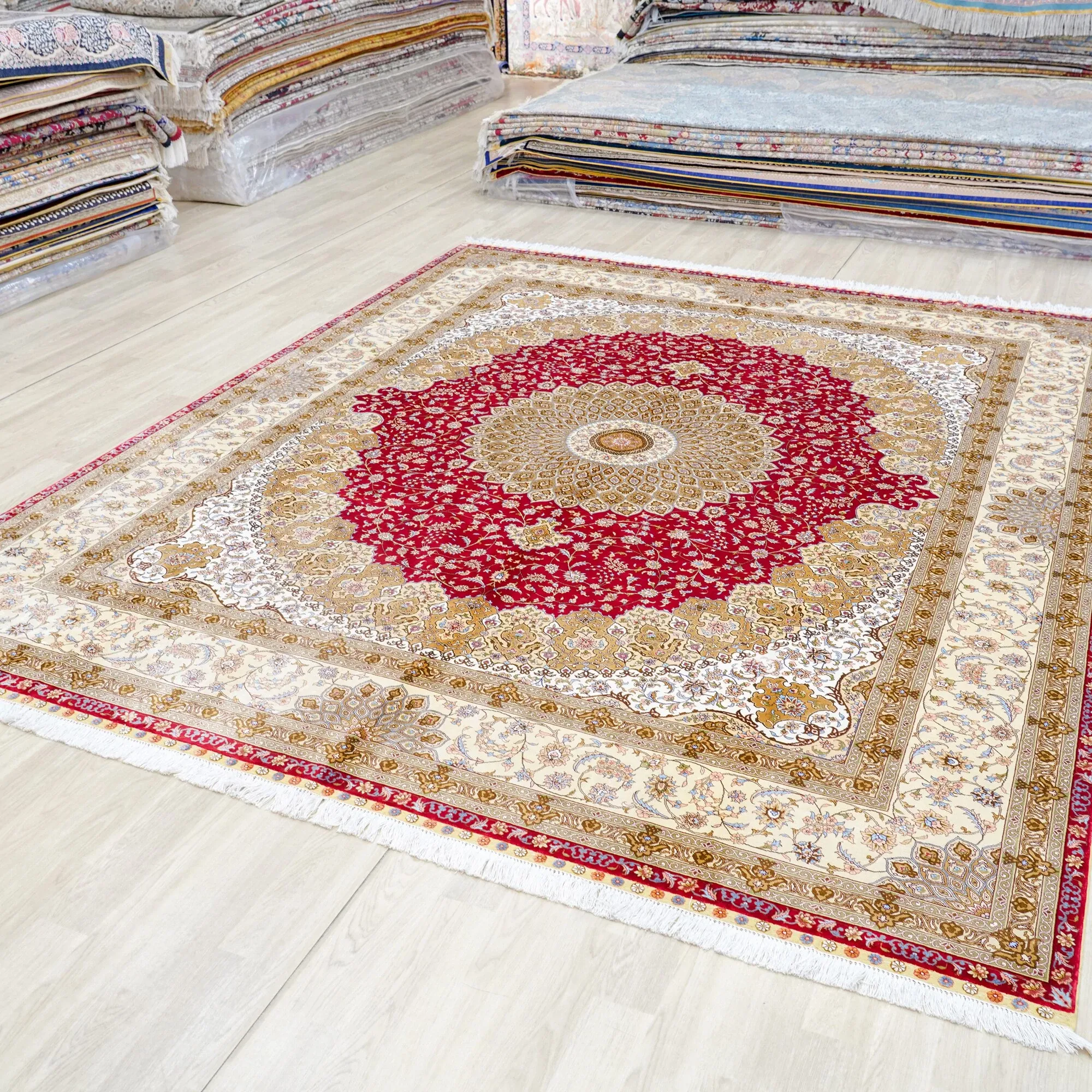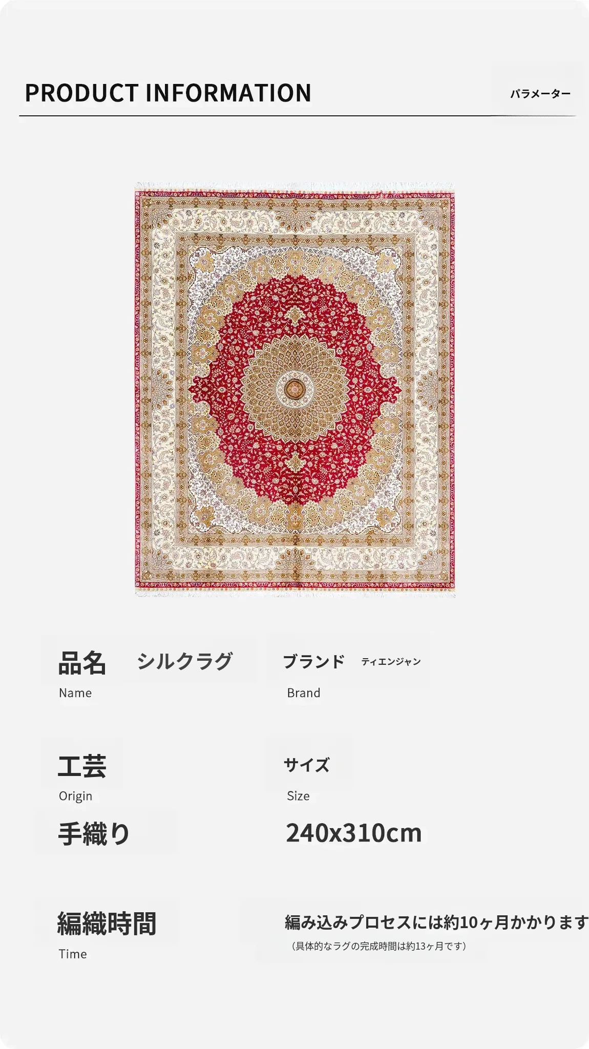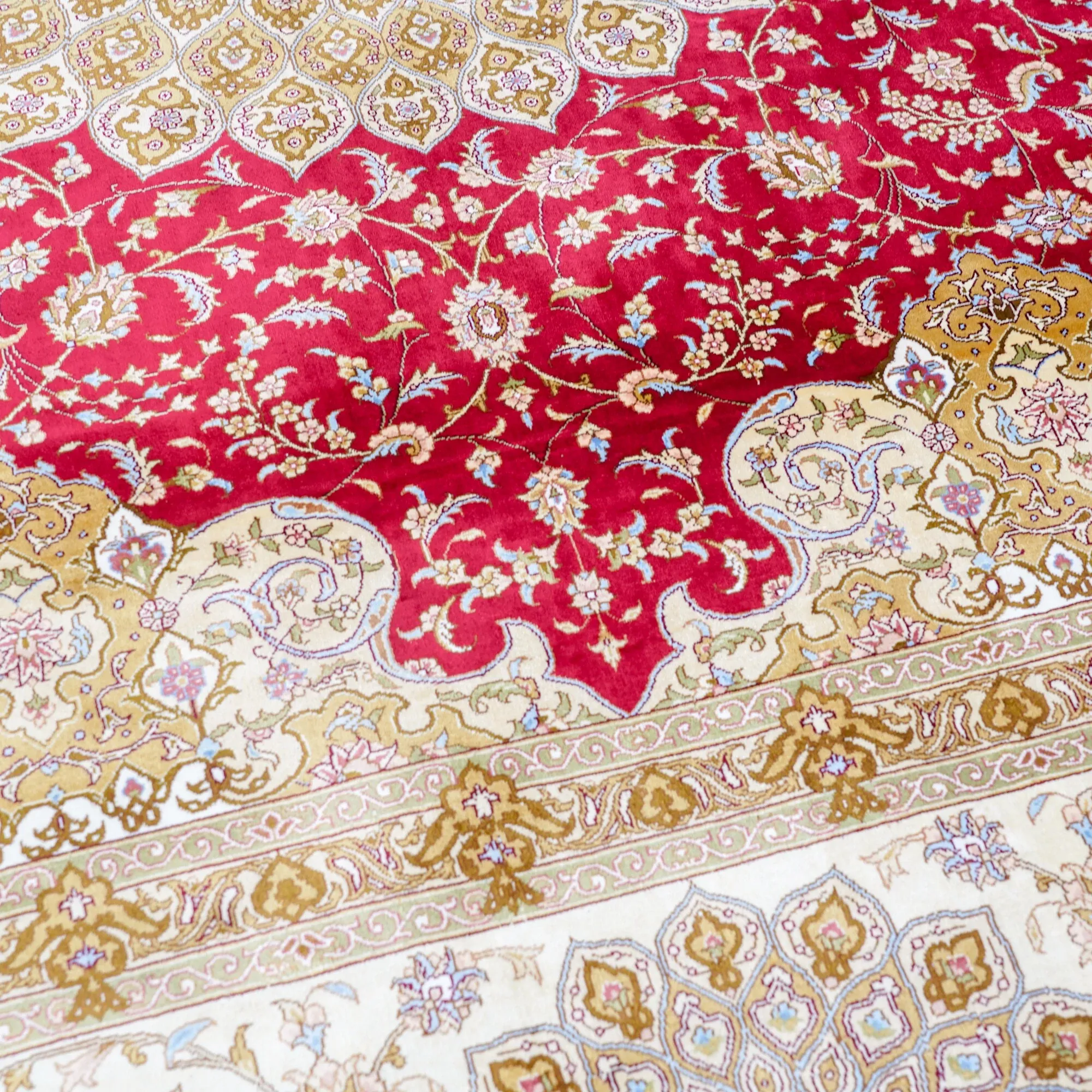 天匠の手作りシルクカーペット - 魅力的な赤色が別荘のリビング、寝室、書斎にぴったり!純手編みで240x310cmの贅沢なサイズ。高級感あふれる空間を演出します。