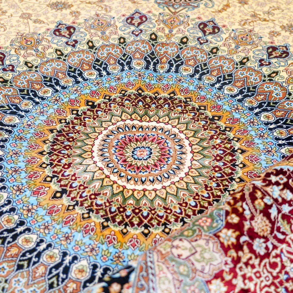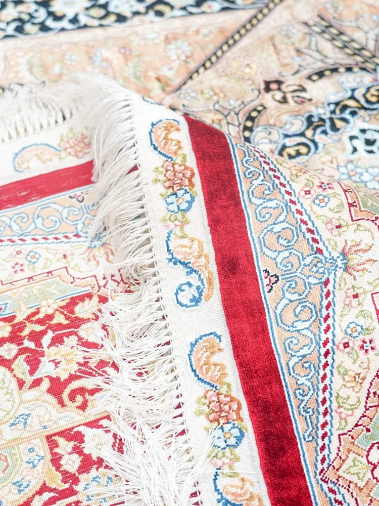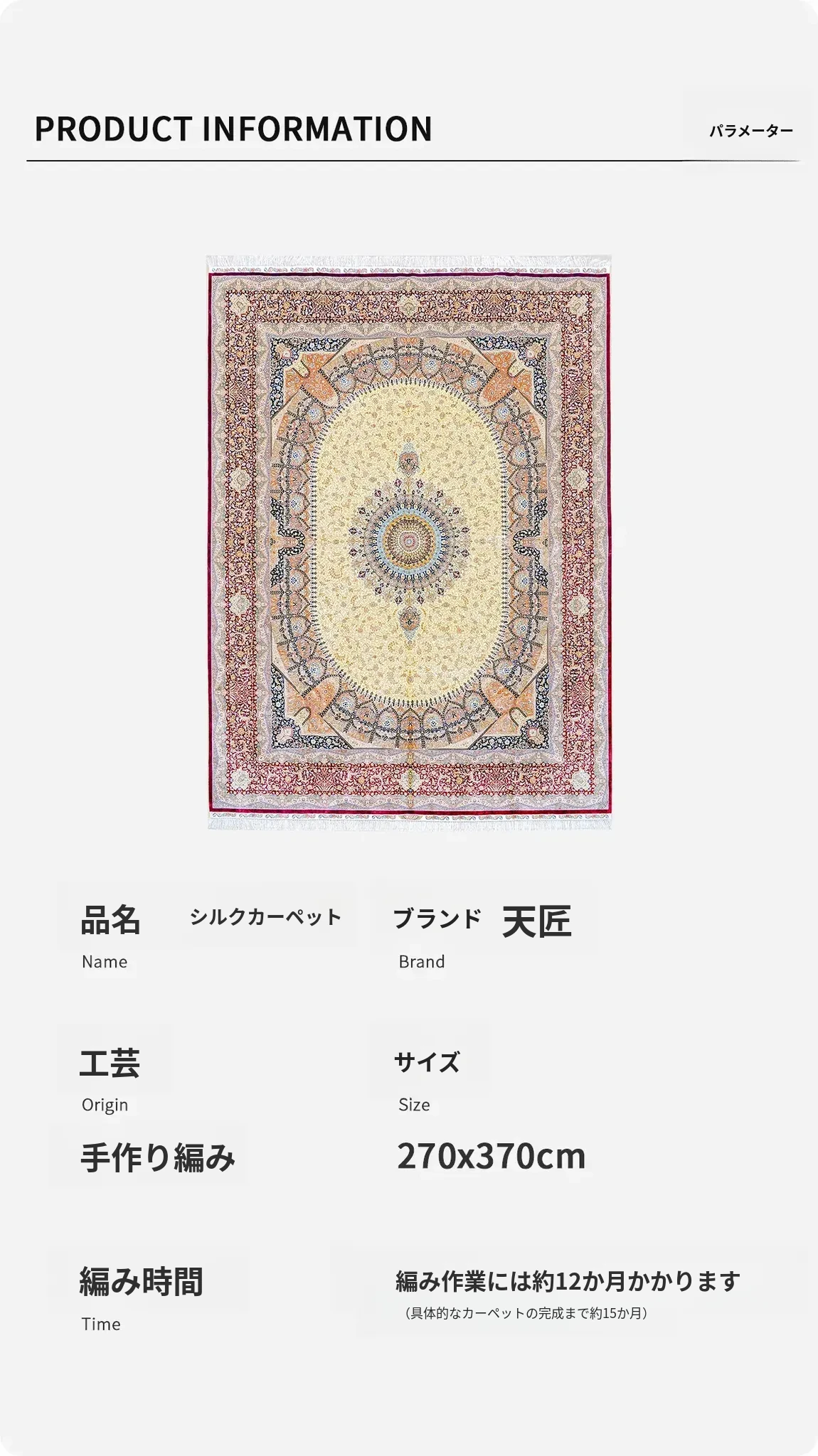 匠心手作!高級真絲ラグ—270x370cmのベッドサイドマット。短毛で滑らかな触感、贅沢な寝室空間を演出します。日本のお部屋にもぴったりのエレガントなデザイン!