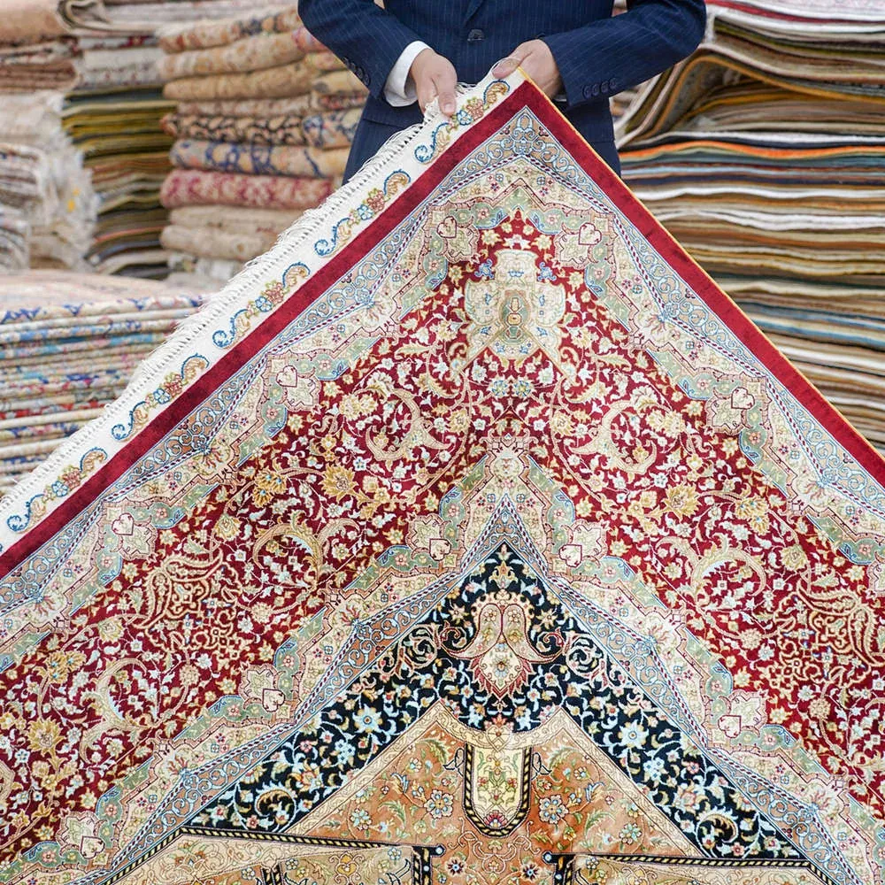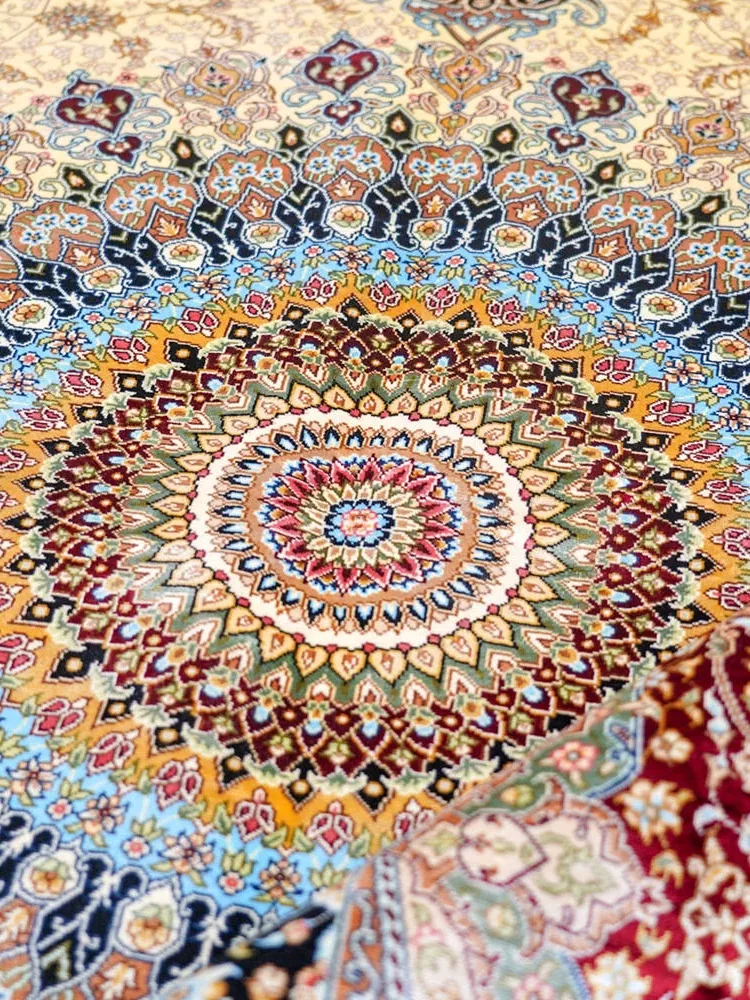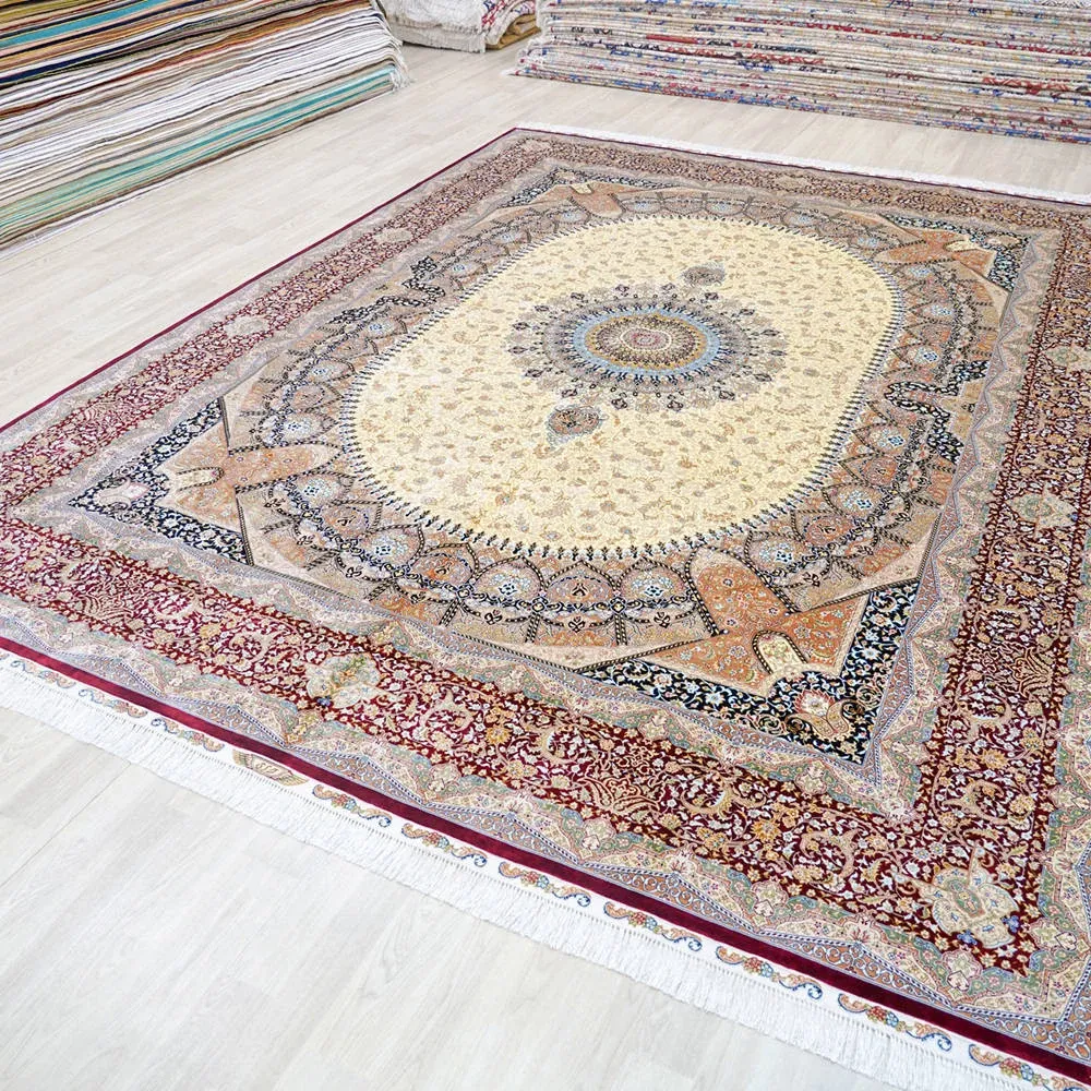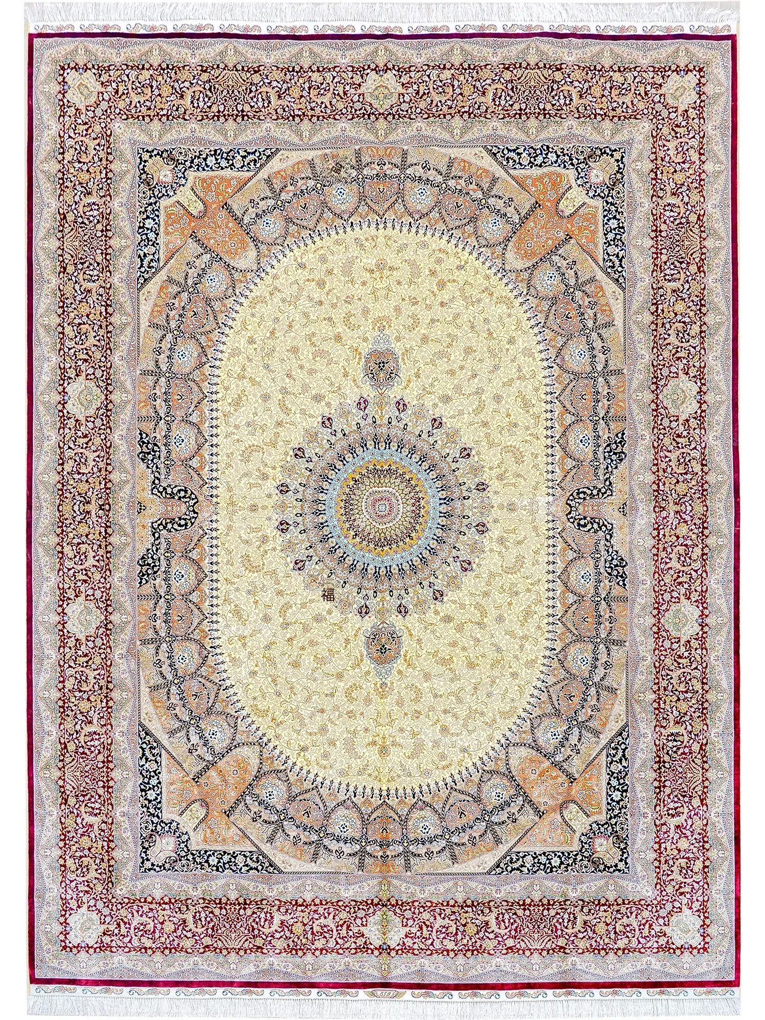 匠心手作!高級真絲ラグ—270x370cmのベッドサイドマット。短毛で滑らかな触感、贅沢な寝室空間を演出します。日本のお部屋にもぴったりのエレガントなデザイン!