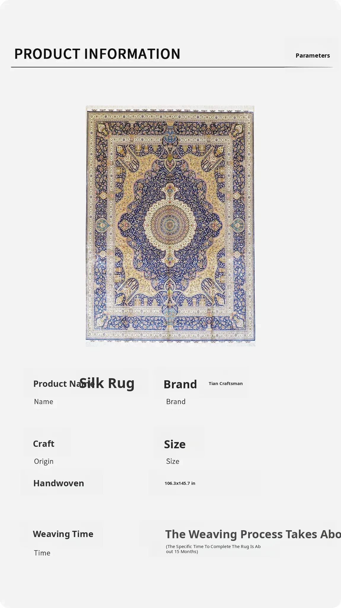 Handcrafted Silk Area Rug for Living Room and Walk-in Closet - American Washable Carpet 270x370cm, Perfect for Spacious Homes
