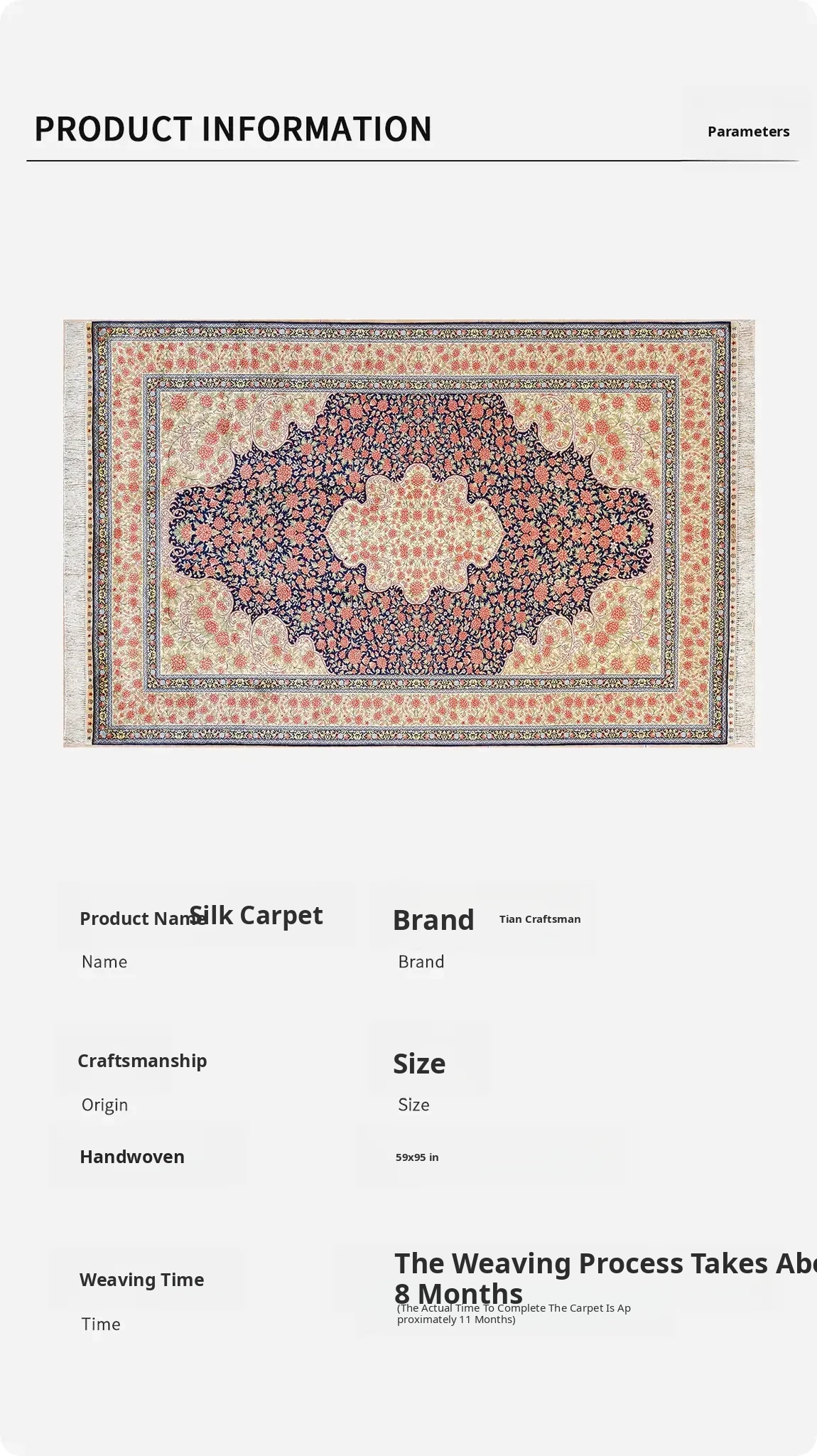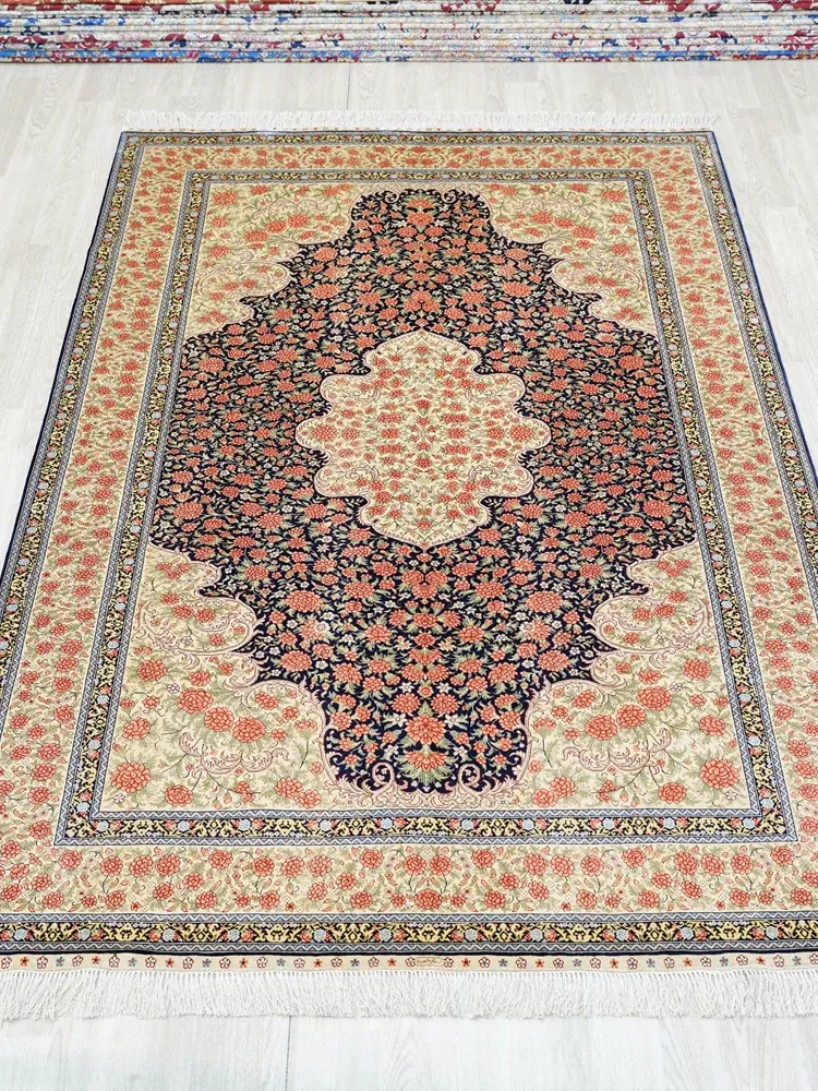 Handcrafted Silk Carpet by Artisan - Exquisite 150x240cm Area Rug for Living Room, Bedroom, Study, or Kids' Room - Perfect for European and American Homes