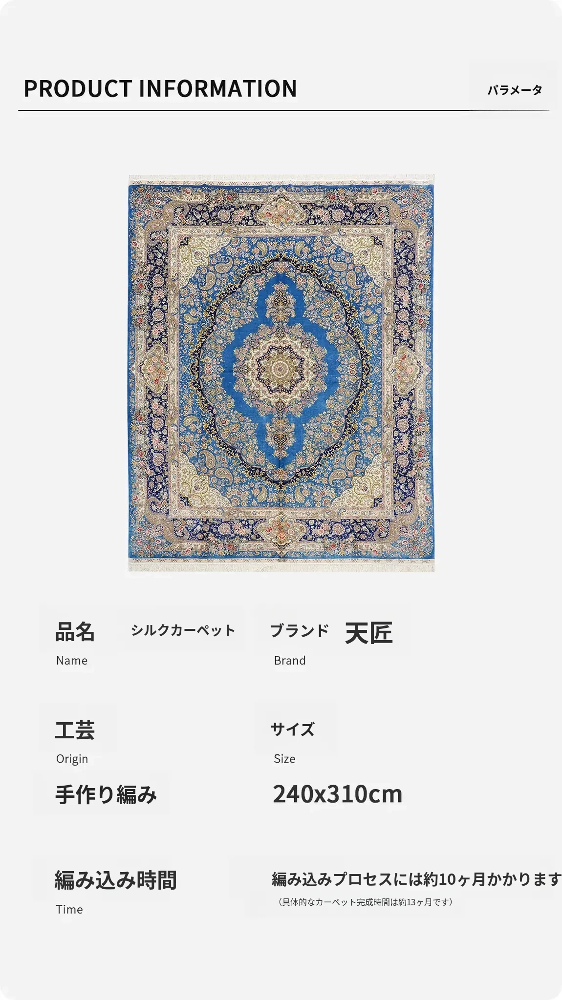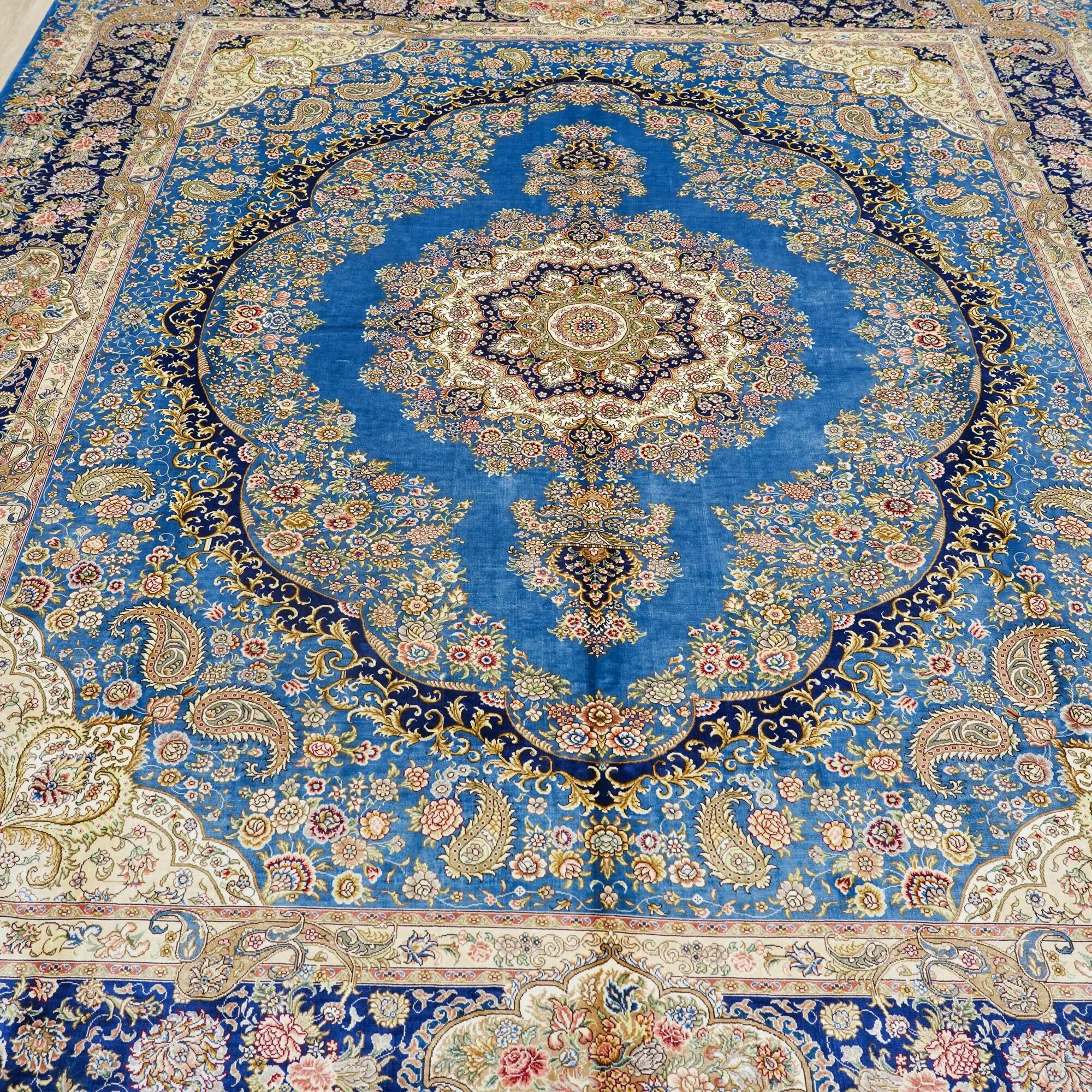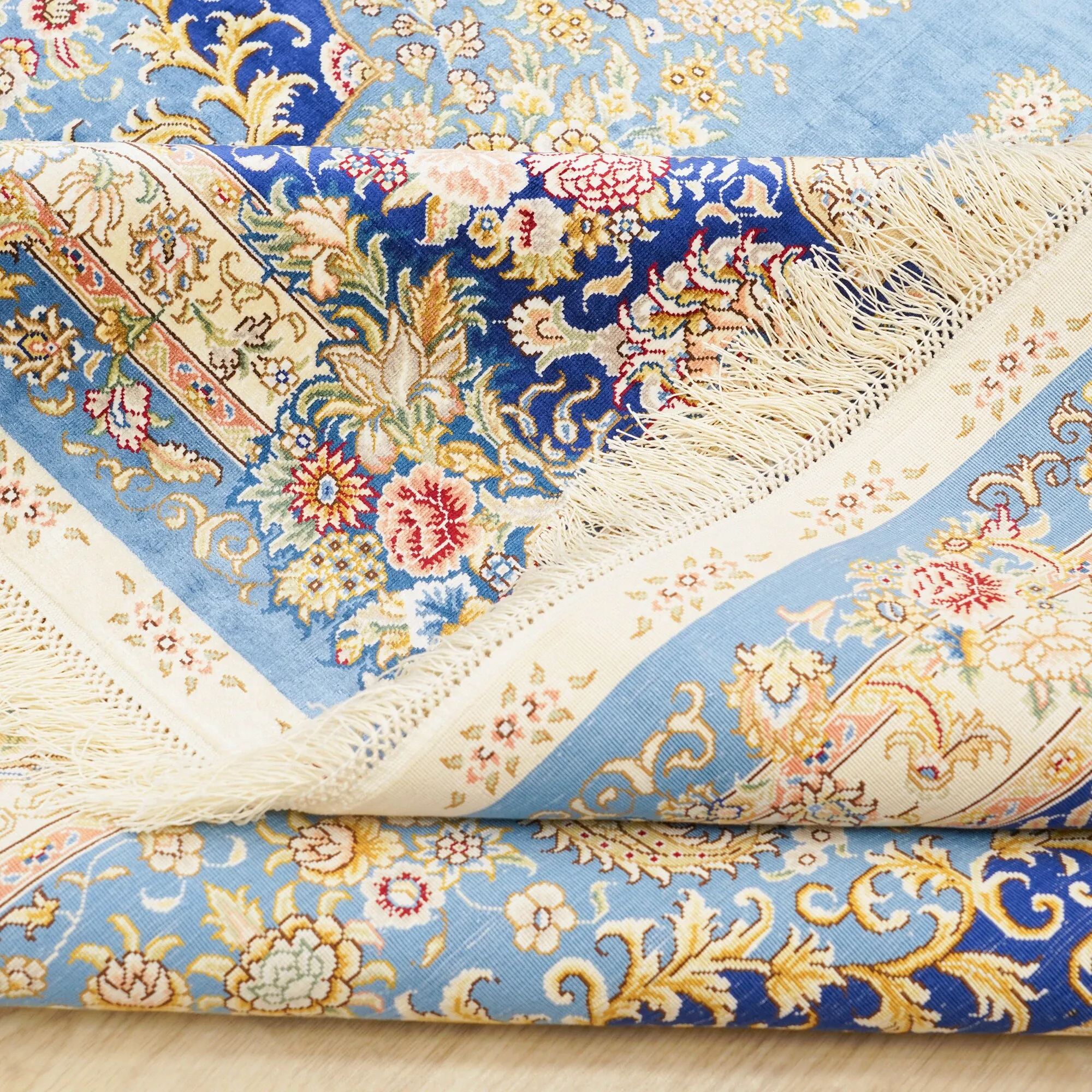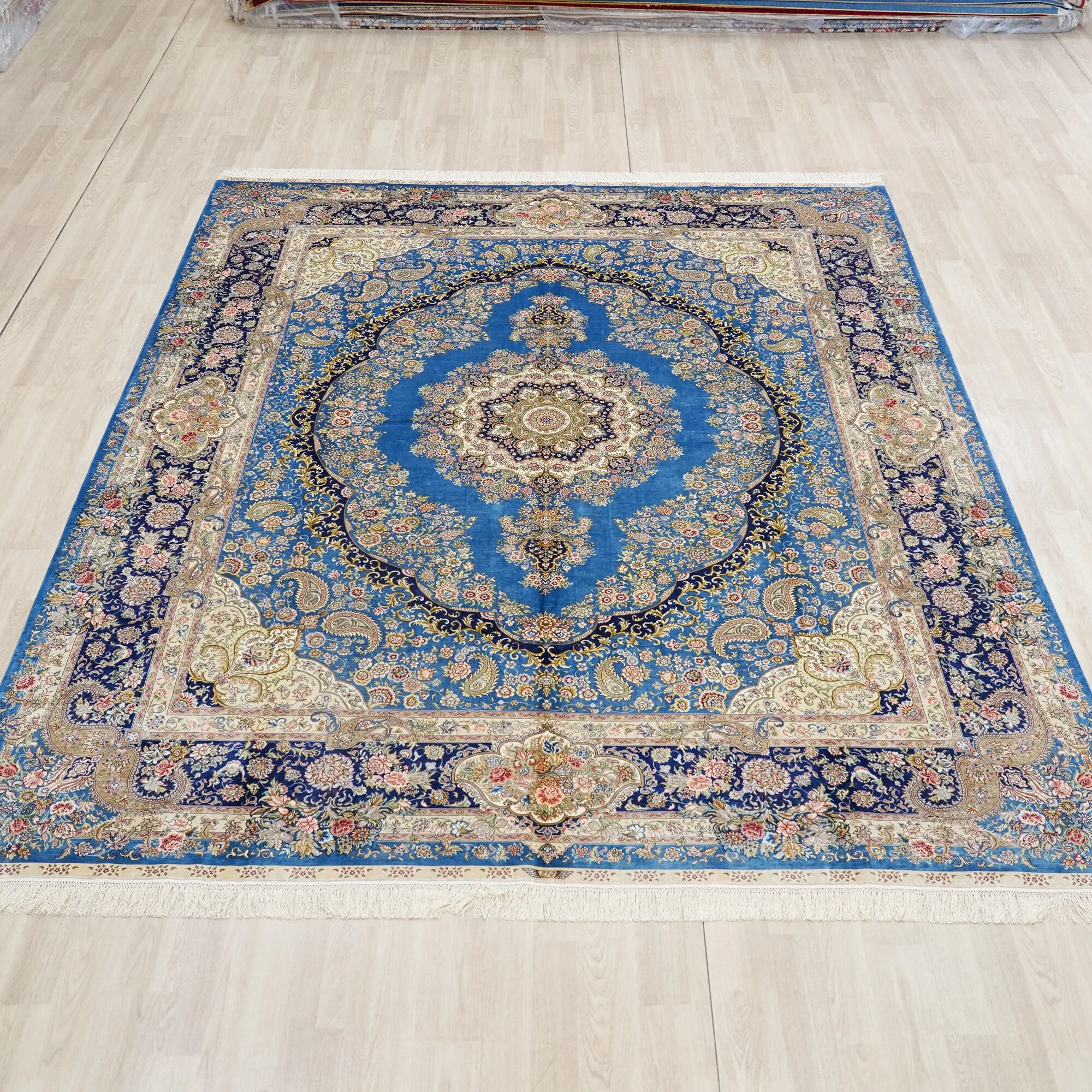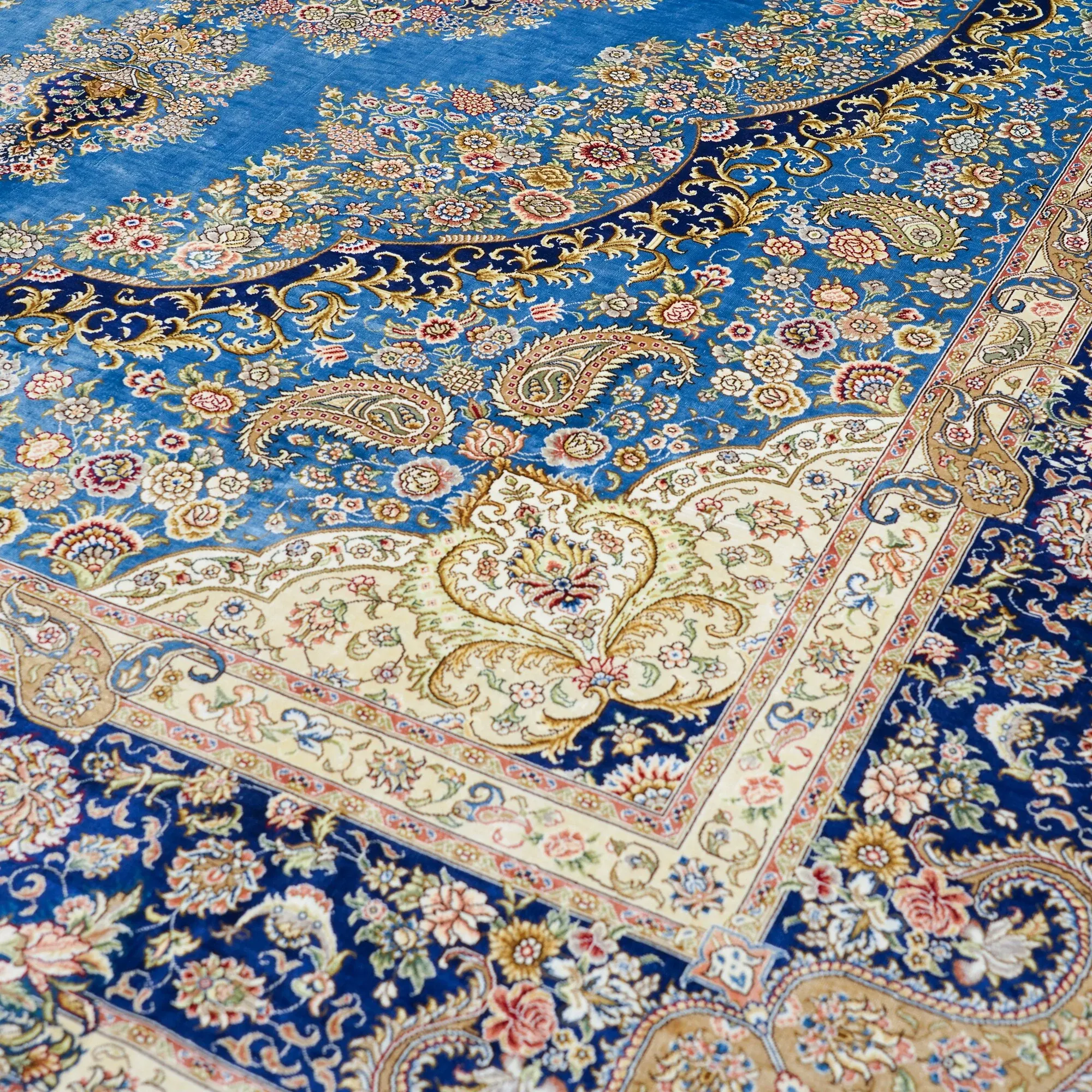 天匠の手作り本絹カーペット - ブルーのクラシックなペルシャ絨毯、240x310cmのサイズで書斎や寝室に最適!高級感あふれるシルク素材で、優雅な空間を演出します。