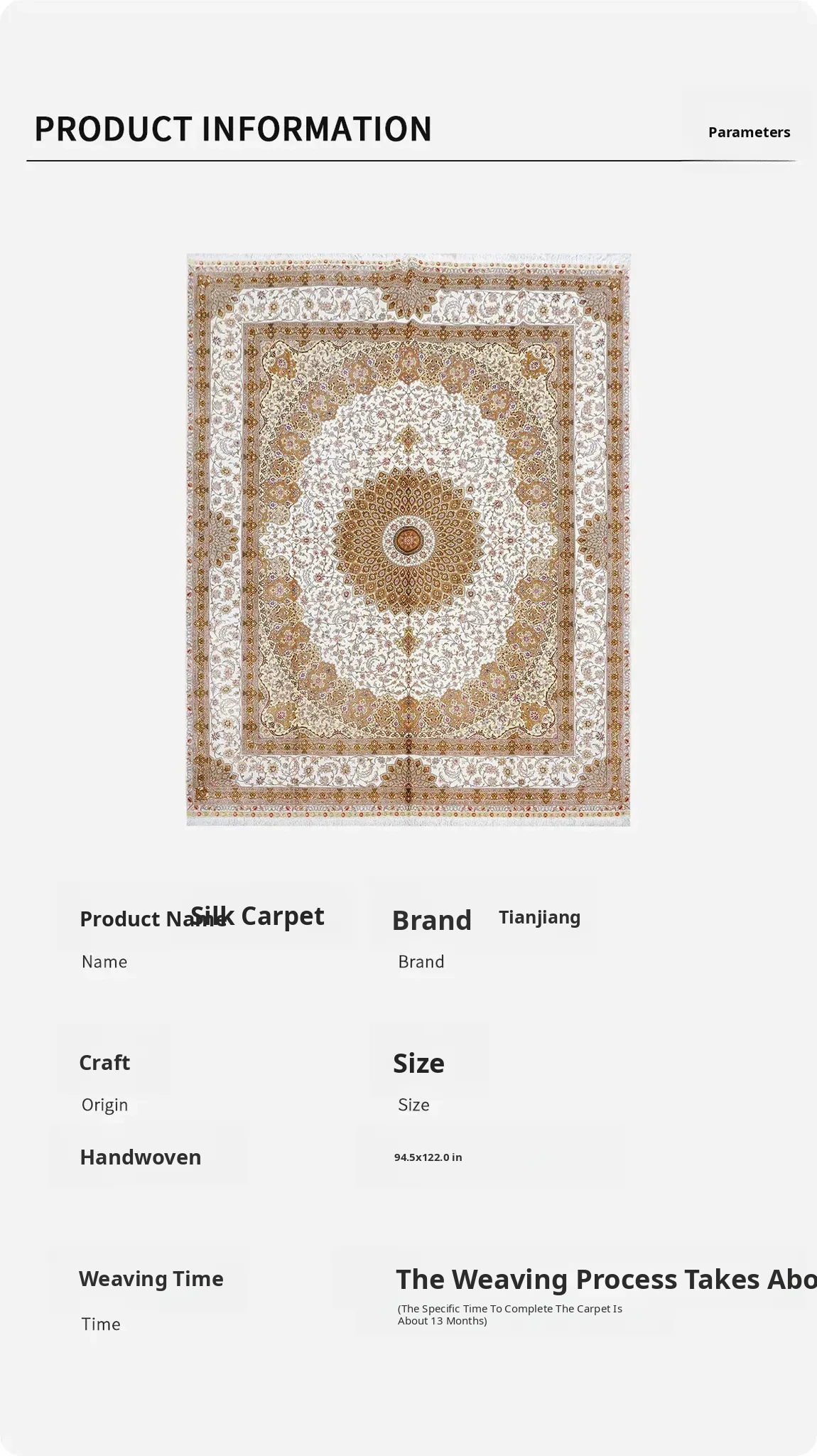 Handcrafted Silk Carpet by Tianjiang - Luxurious Modern Area Rug for Villas and Mansions, Perfect for Living Rooms, 240x310cm