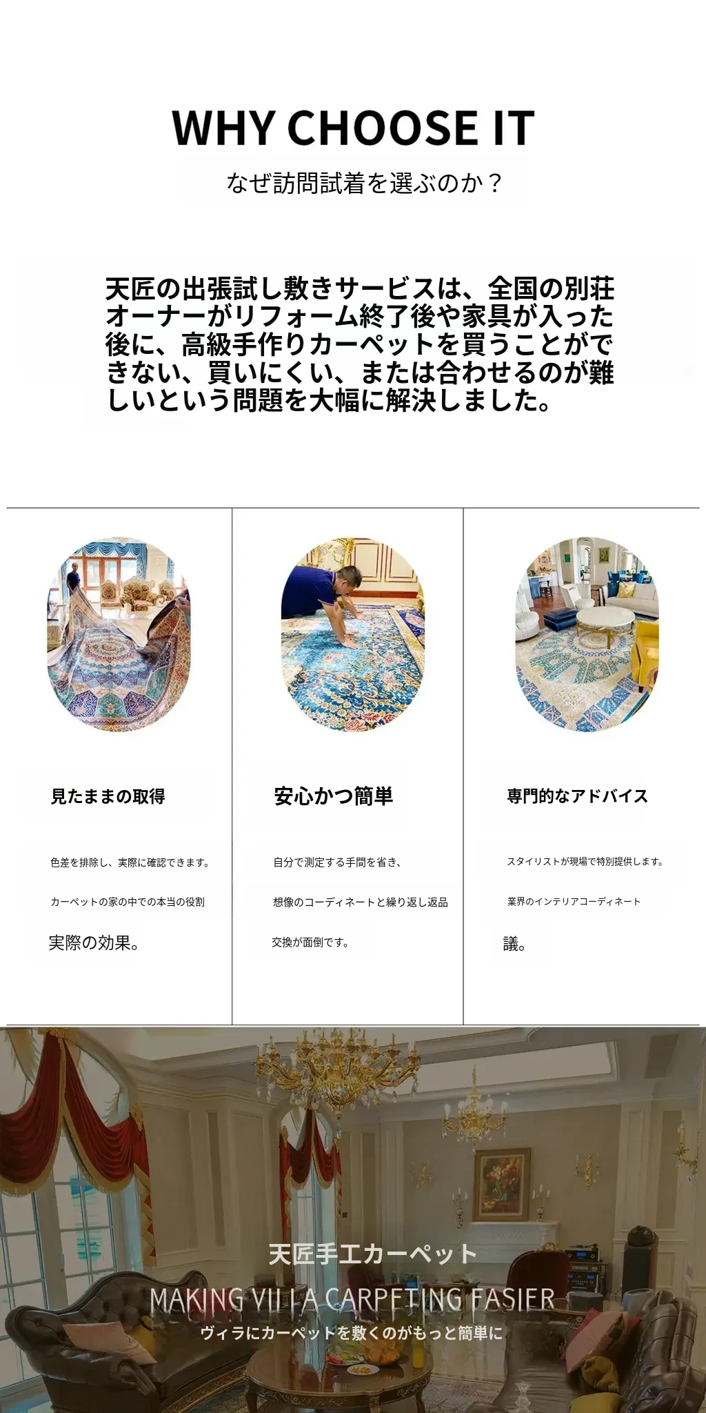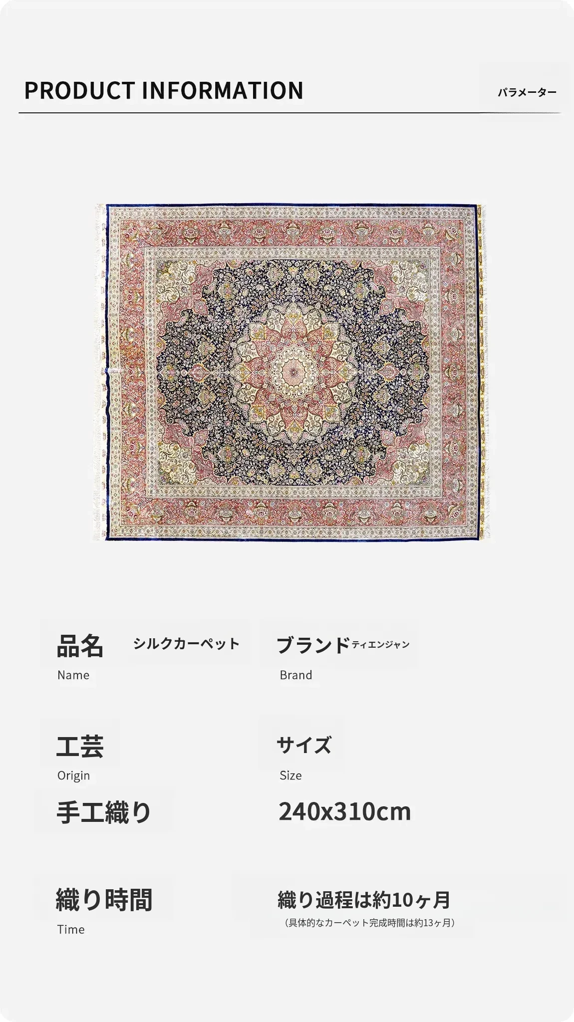 天匠の手作りシルクラグ - 欧米スタイルの豪華な別荘リビングにぴったり!お手入れ簡単で、どんなインテリアにもマッチする244x305cmの多目的ラグ!