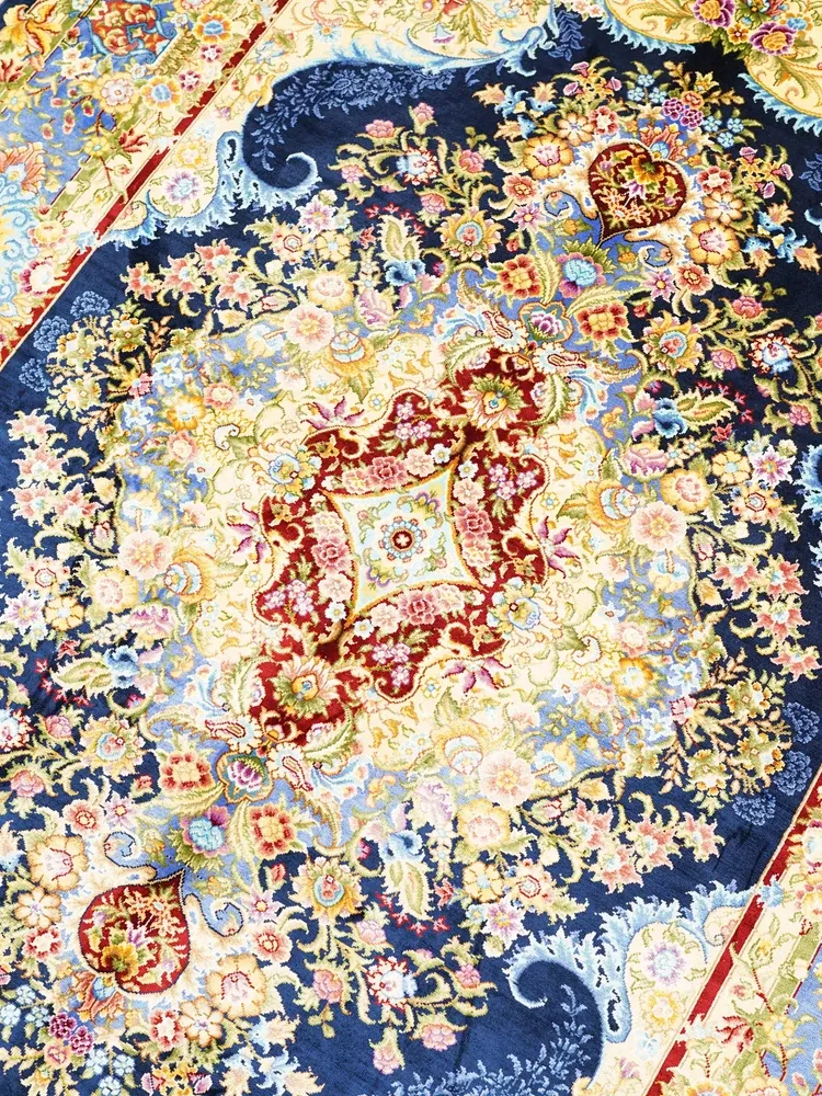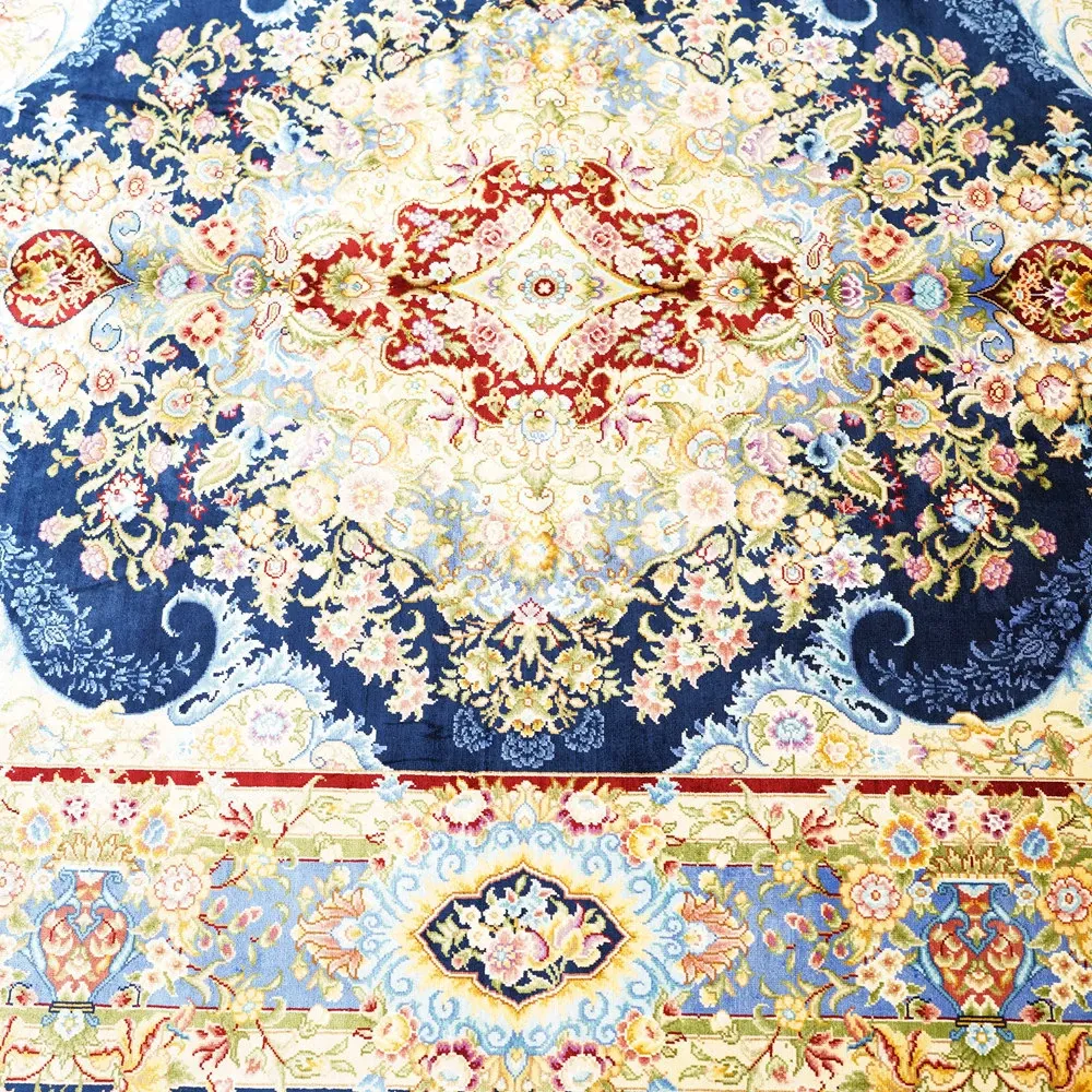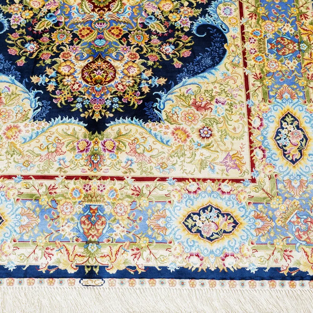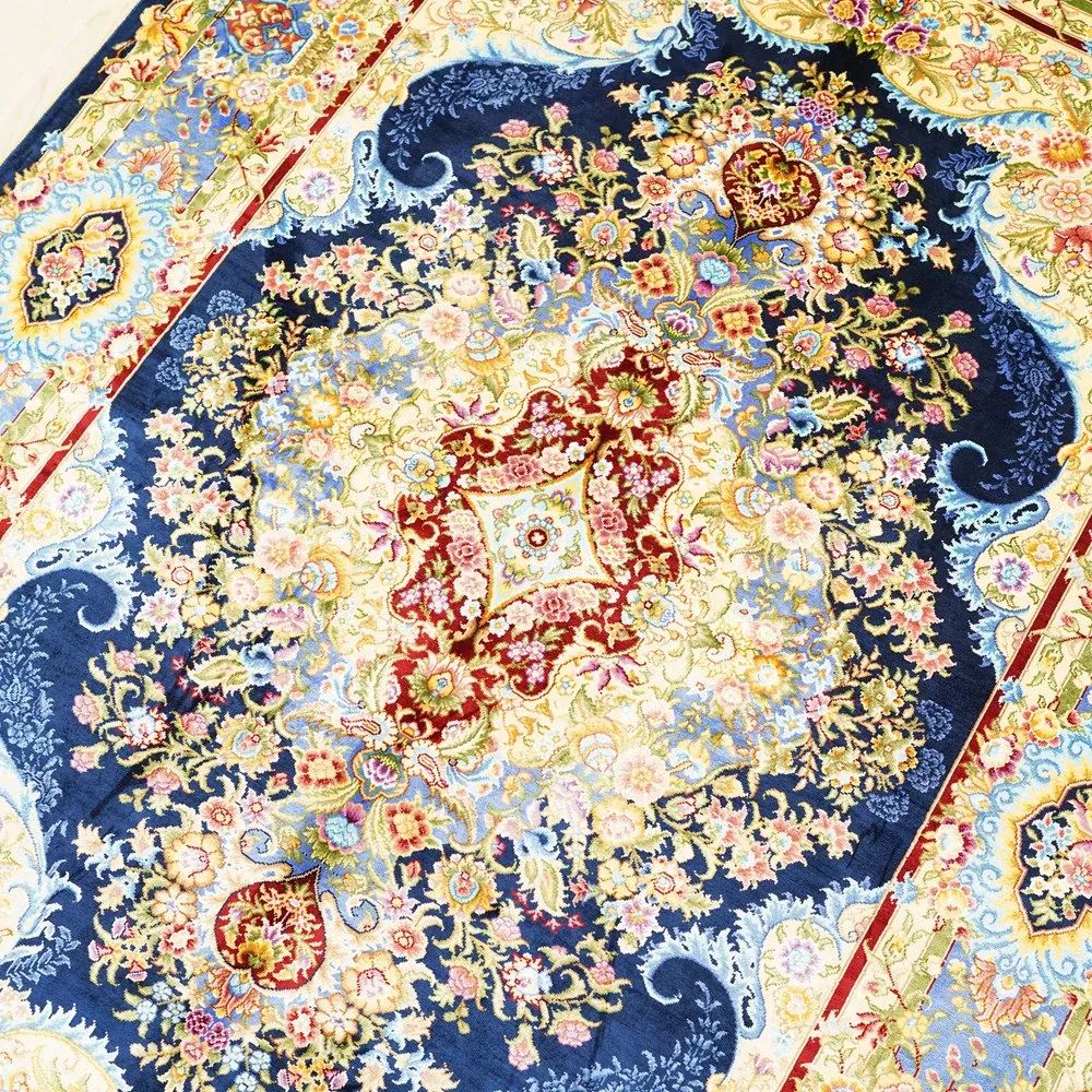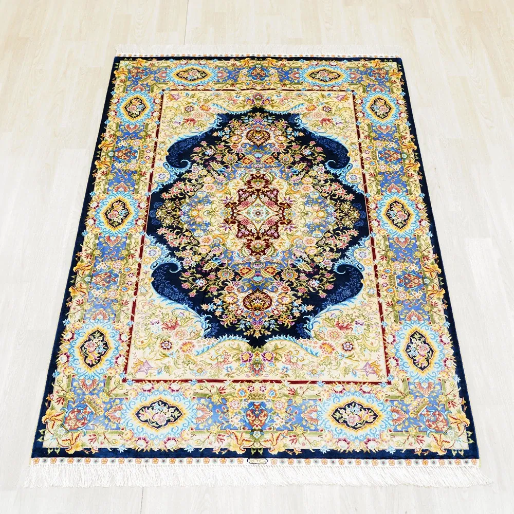 職人の手作りシルクカーペット - ペルシャ絨毯スタイルの欧米風、寝室やベッドサイドに最適な120x180cmのラグ。上品さと快適さを兼ね備えた一品。