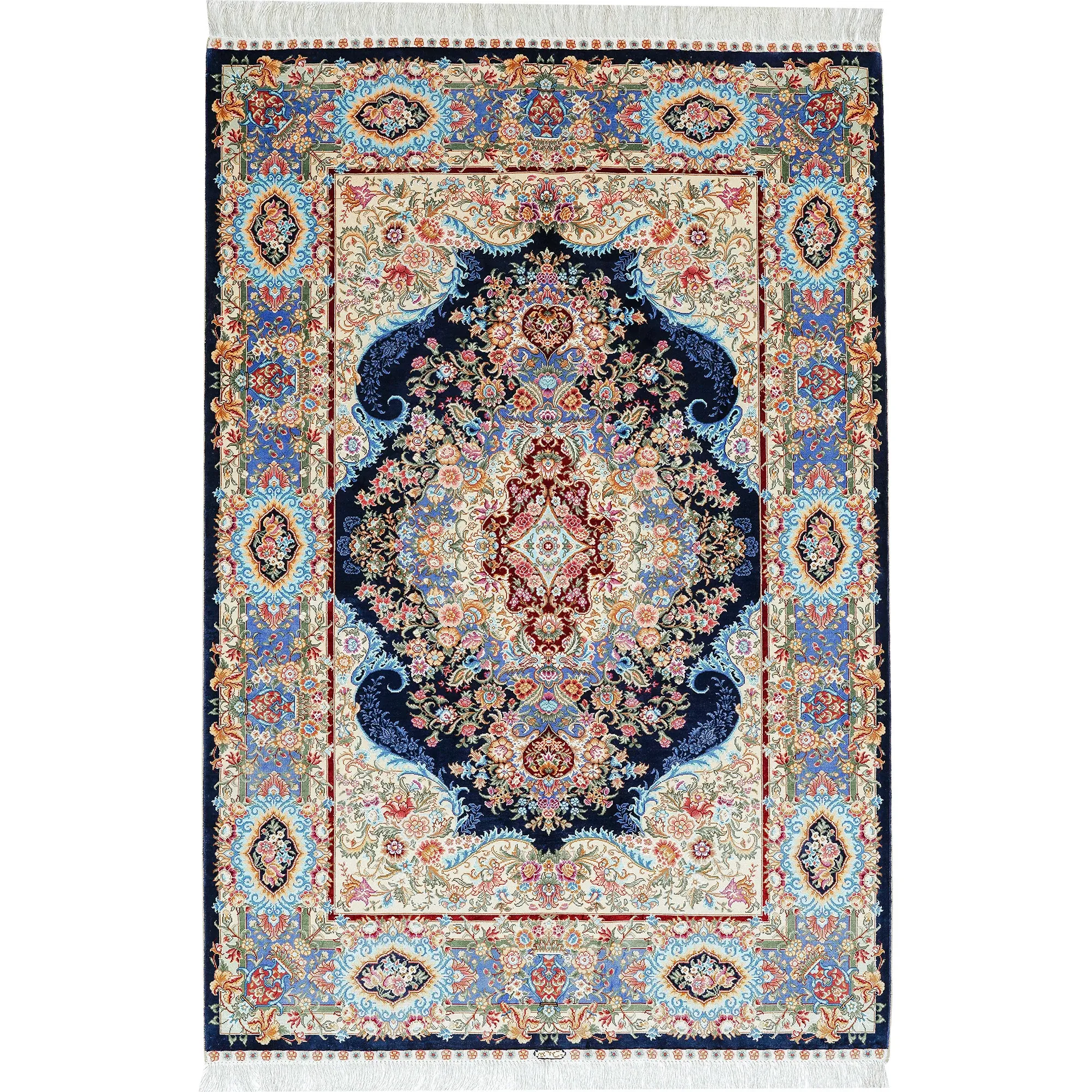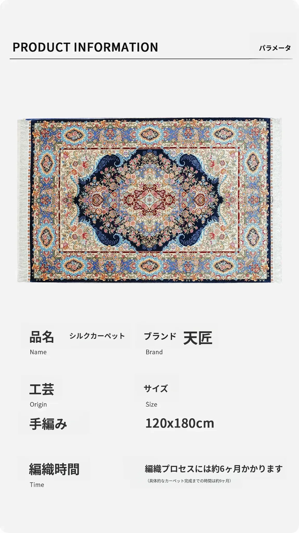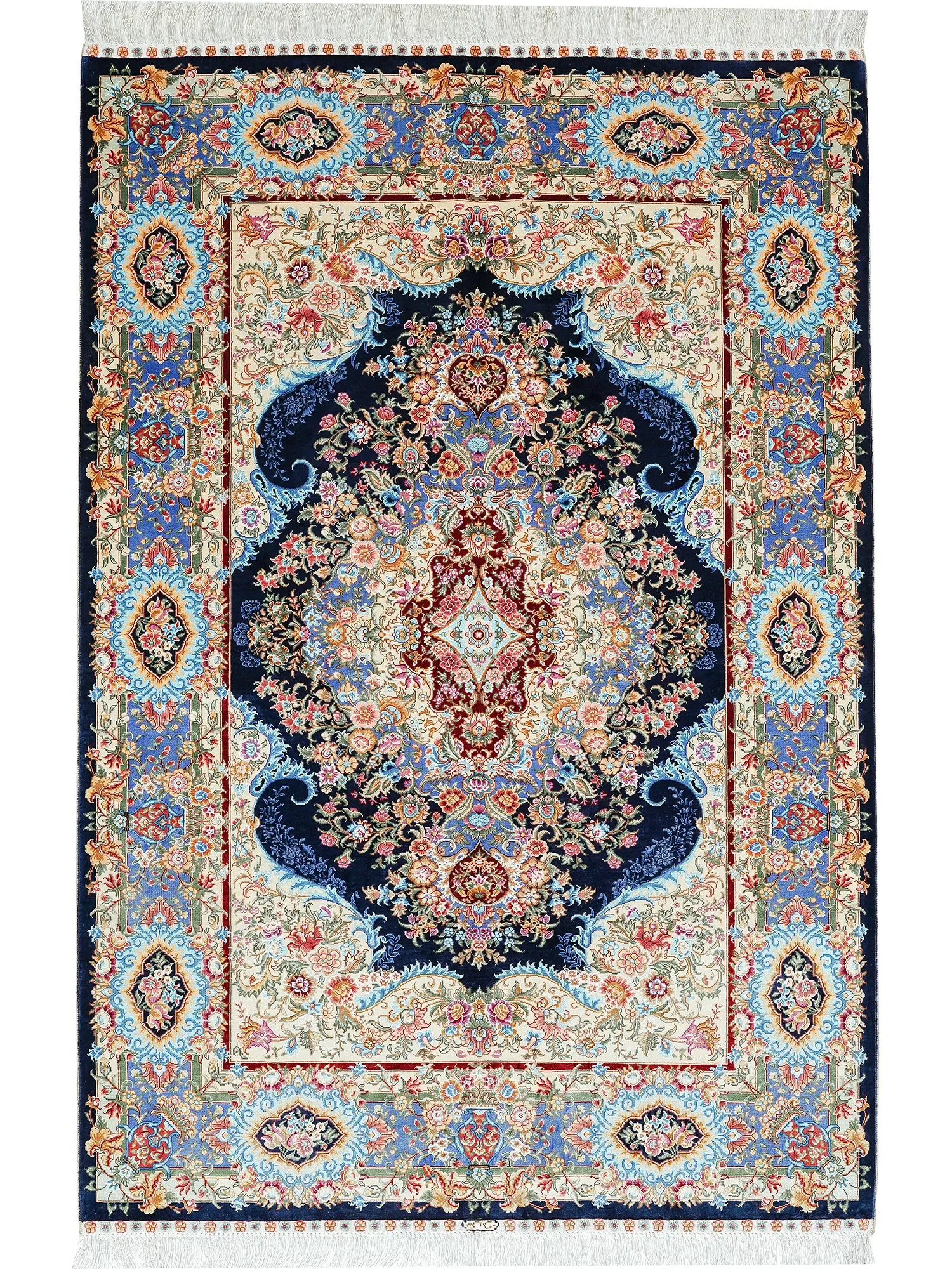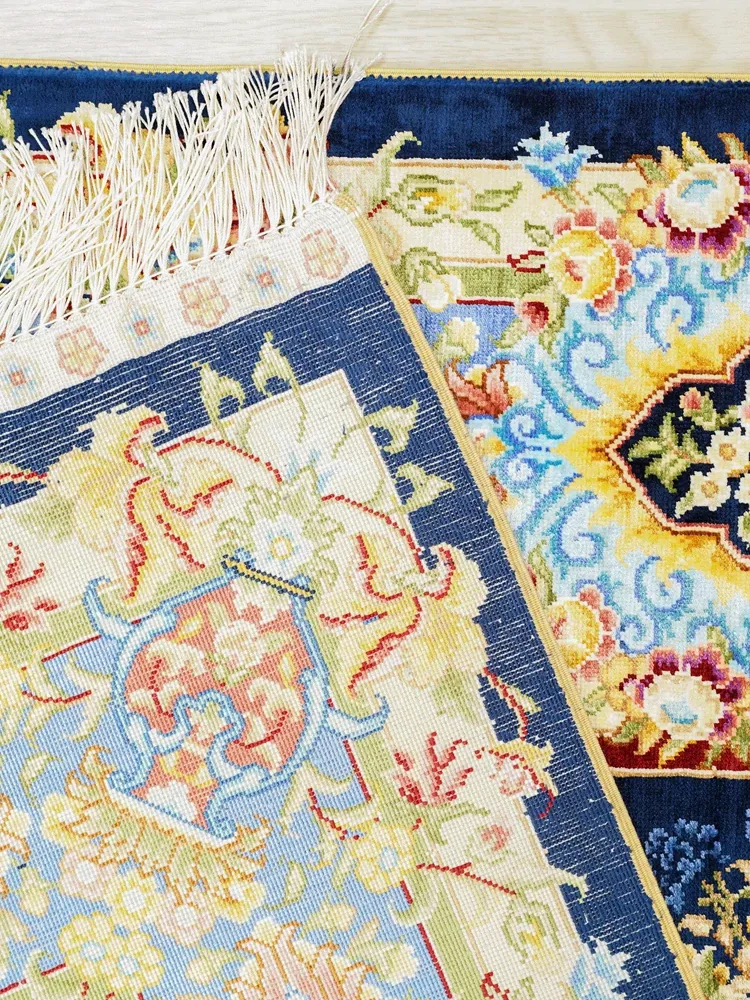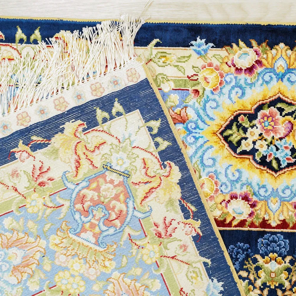 職人の手作りシルクカーペット - ペルシャ絨毯スタイルの欧米風、寝室やベッドサイドに最適な120x180cmのラグ。上品さと快適さを兼ね備えた一品。
