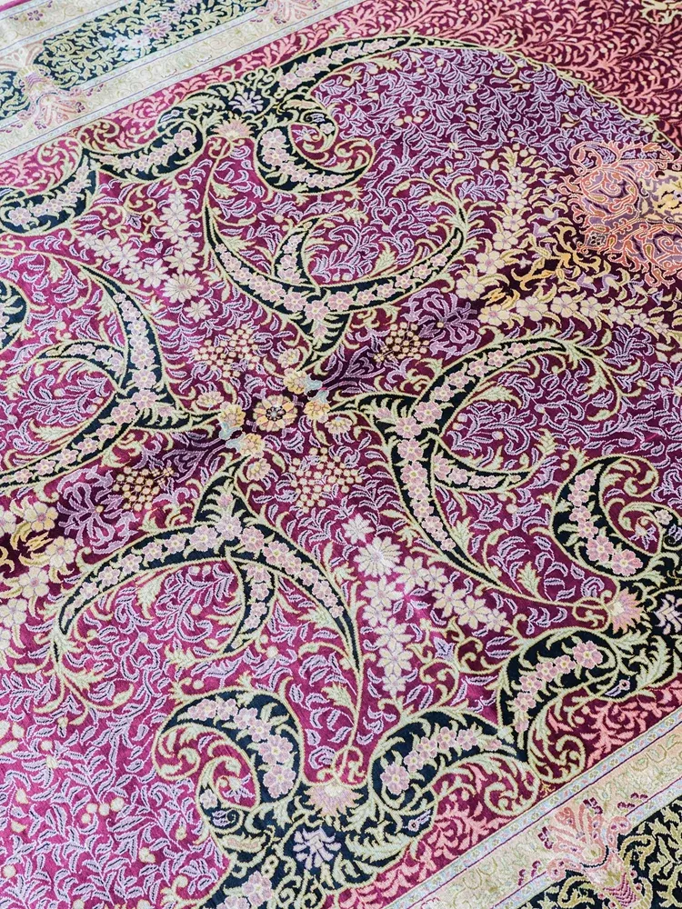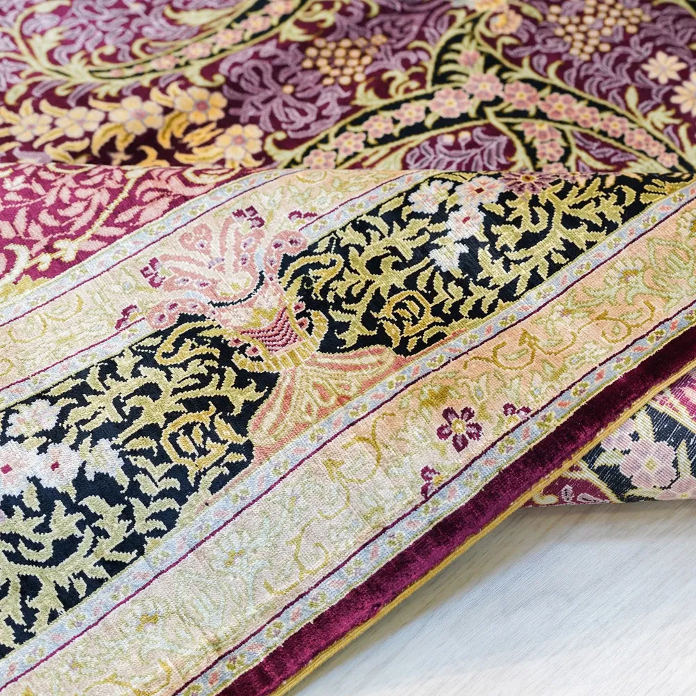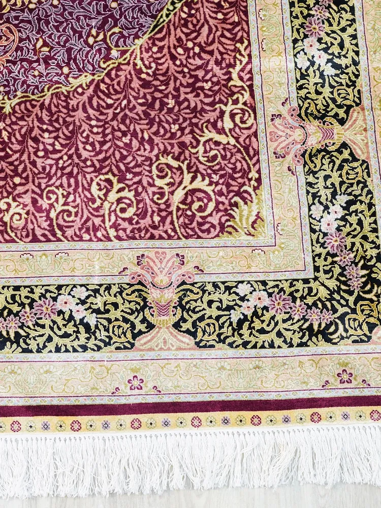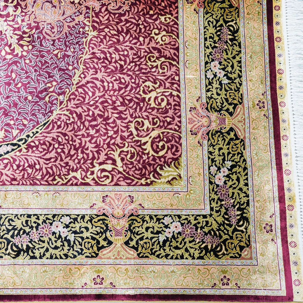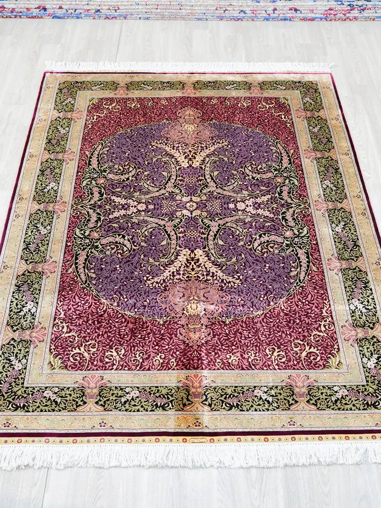 天匠手作・本物シルクのペルシャ絨毯 - 鮮やかな赤系、アメリカン・ヨーロピアンスタイルの寝室や書斎にぴったり!サイズ150x230cmで高級感溢れる空間を演出します。