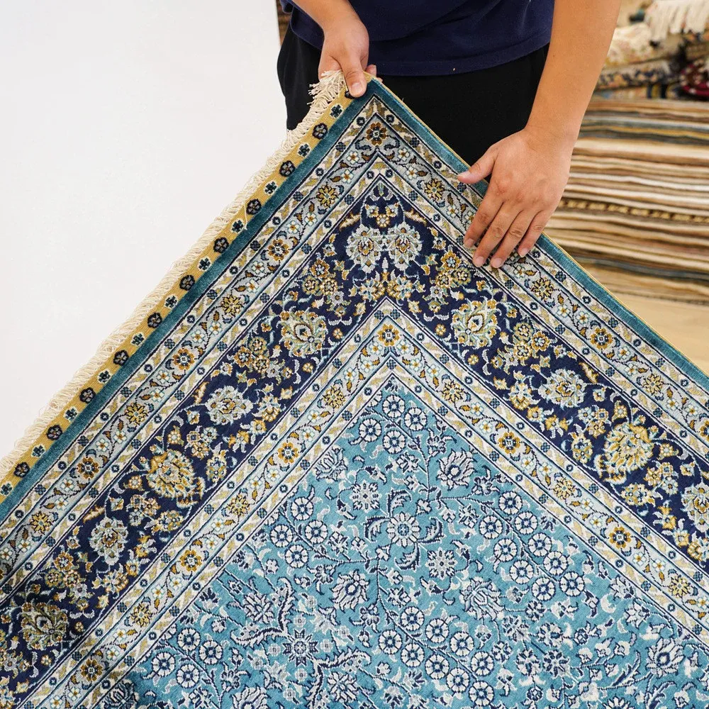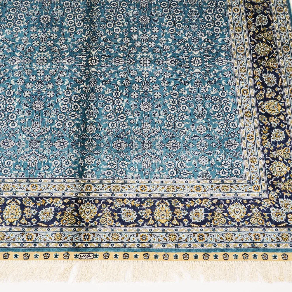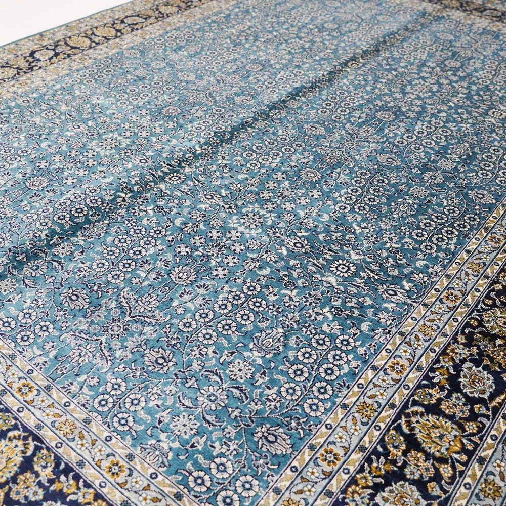 天匠手作の本格シルクカーペット - ペルシャ柄デザイン、南陽の伝統工芸、150x210cmの手作り美しいラグで、あなたの空間を華やかに彩ります。